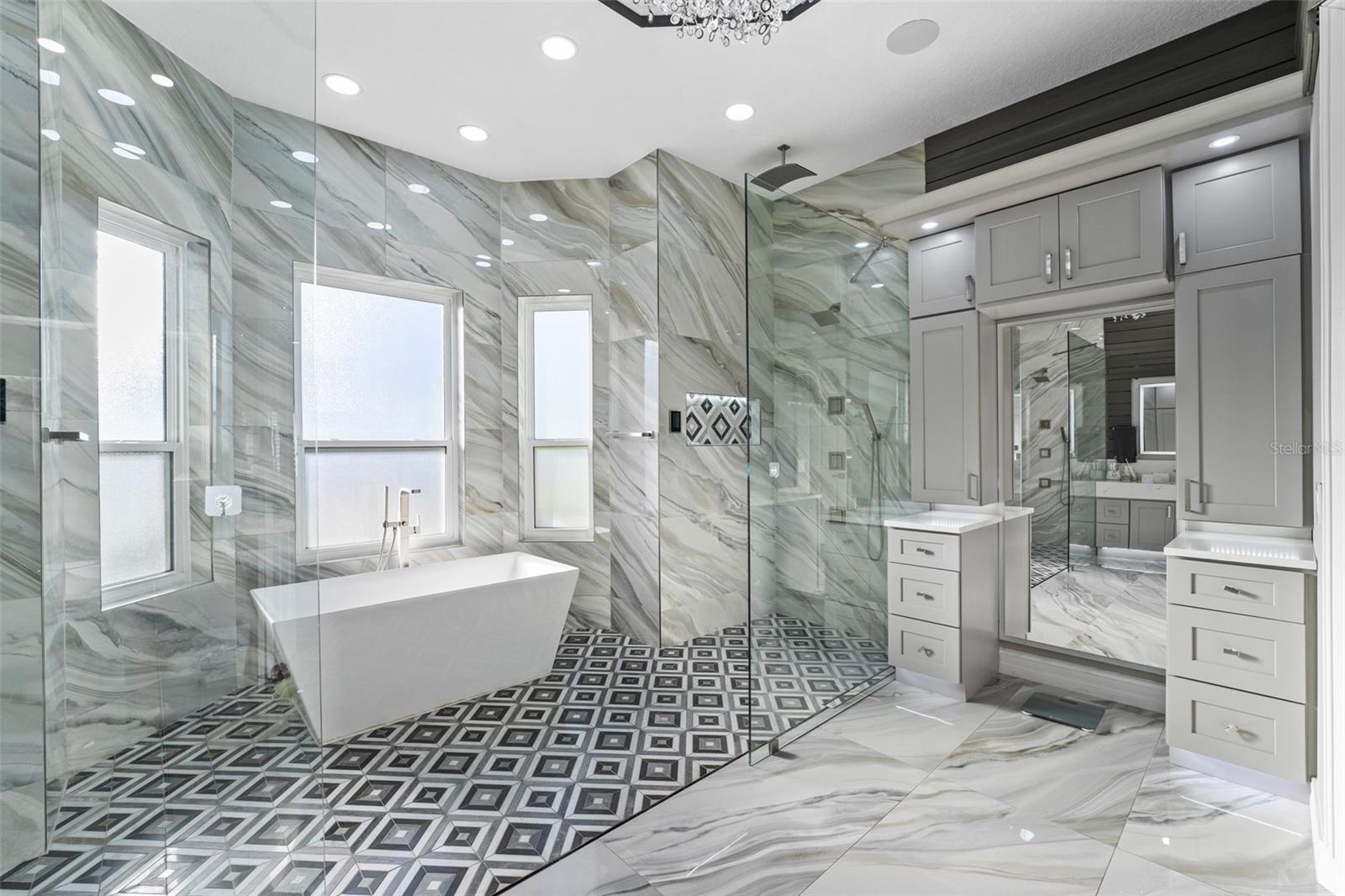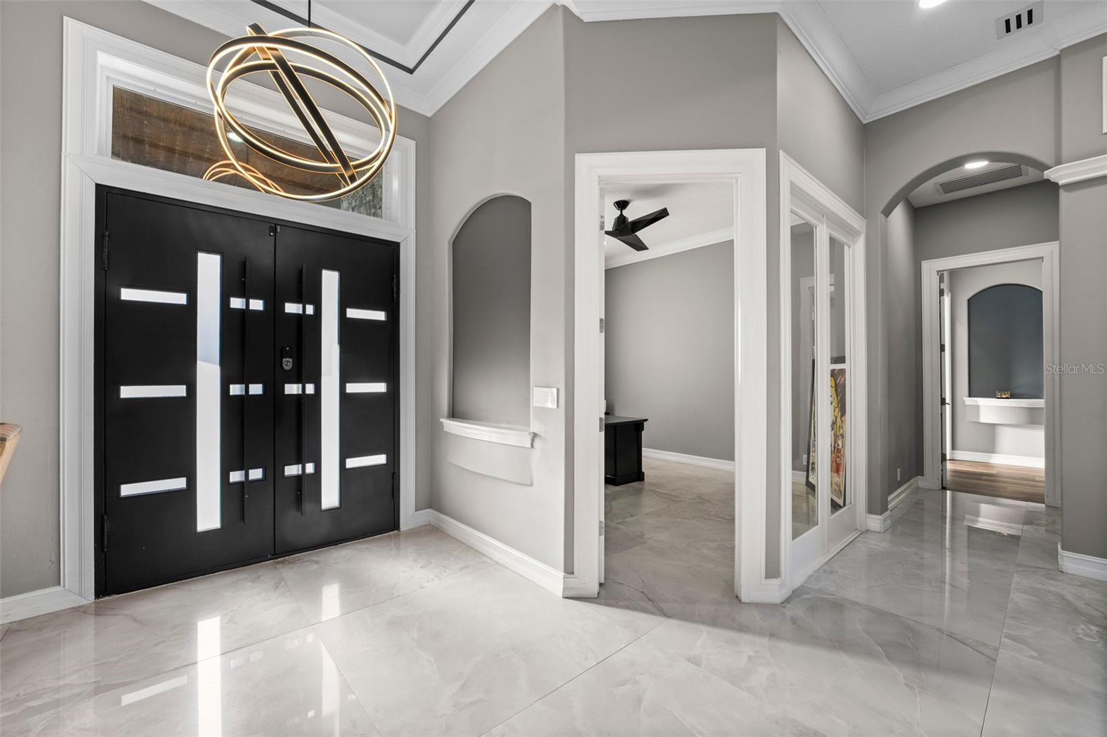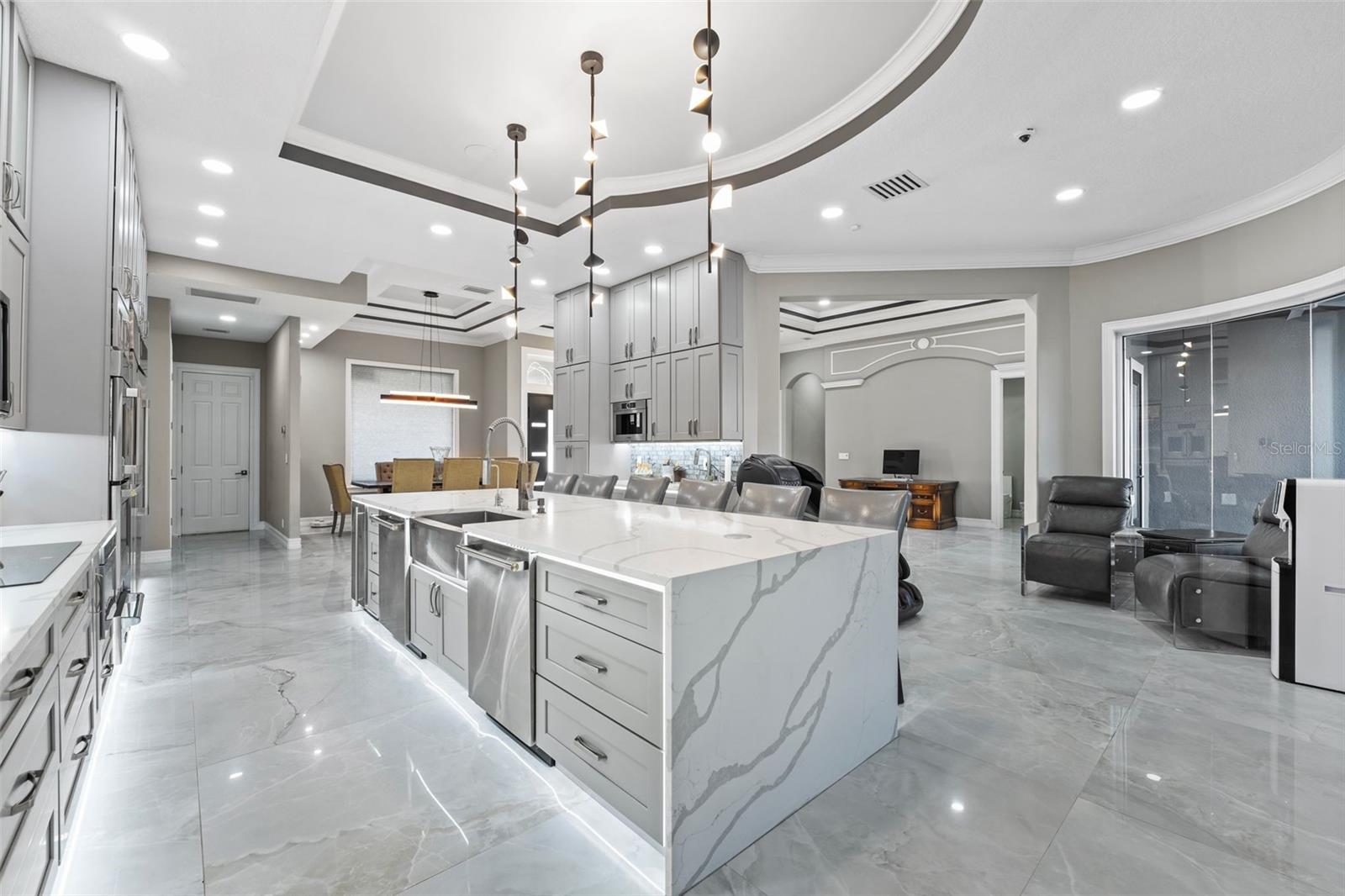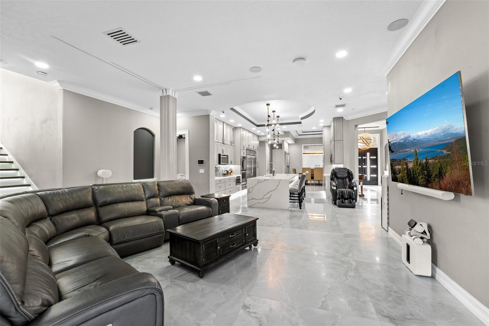 Welcome to this extraordinary, fully remodeled luxury home, offering a perfect blend of modern elegance and cutting-edge technology in a prime Windermere location! This 2021/2022 remodel was taken down to the studs, transforming the home into a state-of-the-art masterpiece that includes a Tesla solar system with 8 backup batteries, making this home fully self-sufficient if needed, providing energy for every appliance, including A/C units to put your mind at ease. The homeowner will be able to indulge in unparalleled comfort with 3 tankless water heaters, including 2 Navien heaters, ensuring endless hot water and will delight in the energy efficiency of spray foam insulation throughout, including the attic and home theater. The Smart Home system - powered by Control 4 - allows seamless control of lights, music, TVs, and the intercom, while ceiling speakers throughout the interior and exterior elevate your entertainment experience. You can stay connected with Mesh WiFi 7, ensuring ultra-fast coverage throughout the entire property. The modern luxuries extend to your choice of primary suites with a Kohler smart shower system, and smart fixtures that you will also find in the downstairs bathrooms. Brand new hurricane proof windows throughout flood this home with natural light and outside you will find an entertainer’s dream backyard boasting a extremely large Pebble Tech pool with a custom waterfall, water slide, and multi-color LED lighting! The iAquaLink smart pool system paired with dual pool heaters and variable speed pumps, ensures year-round enjoyment that you can operate from your phone. Gather with family or entertain friends with ease in the brand-new outdoor kitchen complete with bar seating or bring the party inside to your top-of-the-line kitchen, fully upgraded in 2023 to include all new appliances, a double waterfall island, bar seating for 8 and ample storage as the timeless cabinetry extends to the ceiling. The home also features a new state of the art 12 person theater with a custom made 180” wide format screen for a true theater experience complete with sound proof panels and a 4K HDR laser projector with 16 speaker system, A 6-car garage with epoxy floors and lifted ceiling, climate-controlled strip A/C unit, and a garage lift for additional parking complete the package. The home also features 4 new A/C units with advanced air filtration and UV light to reduce allergens. If you haven’t already fallen in love with this home you will when you discover over 25 different types of fruits and vegetables thriving in the yard that line a custom race track. Residents of Lake Clarice Plantation will appreciate the proximity to local shopping, restaurants, theme parks, Winter Garden Village, Horizon West Braddock Park and more. Make a quick trip into surrounding comminutes via the 429 or Florida Turnpike. This home truly offers a living experience like no other, combining luxury, sustainability, and smart technology in one perfect package!