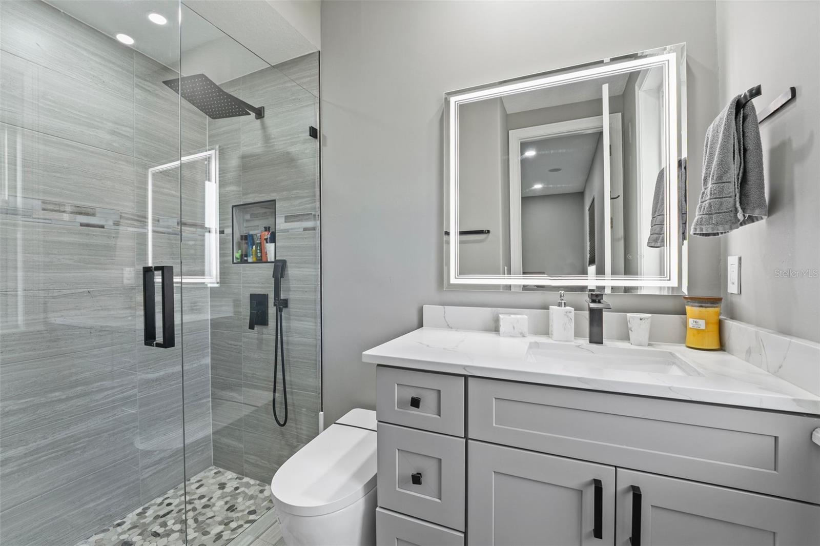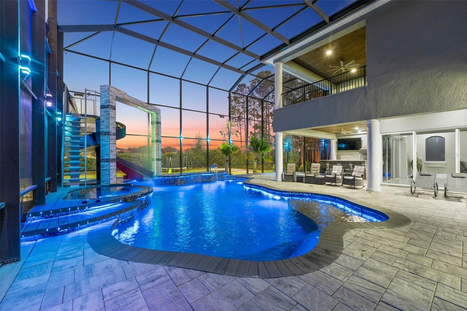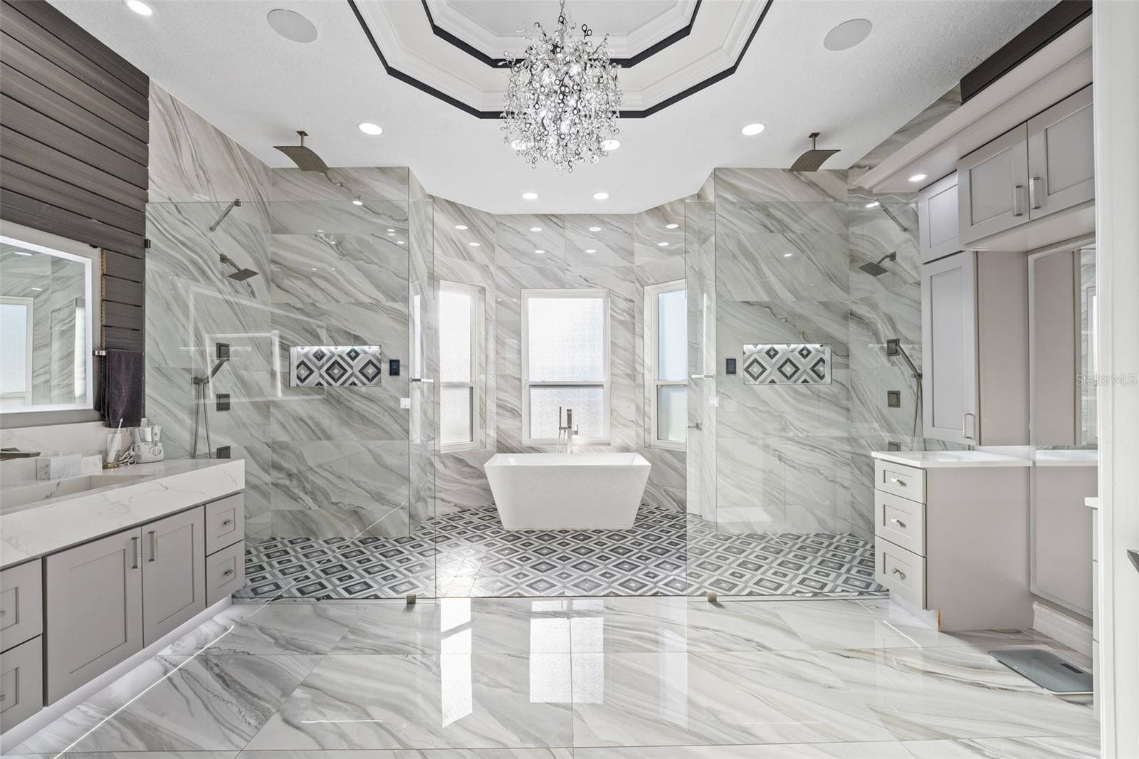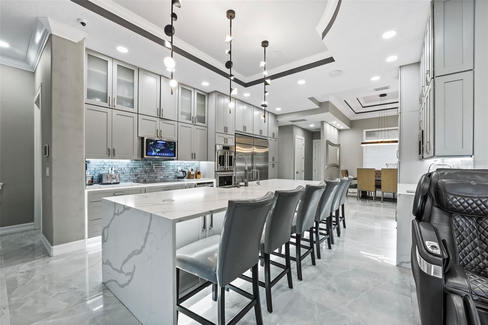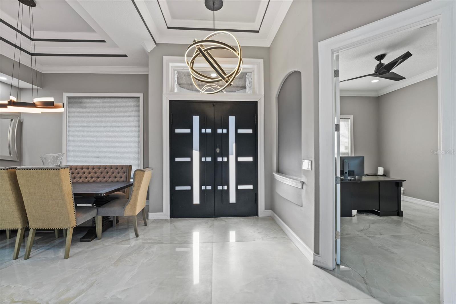 Welcome to this extraordinary, fully remodeled luxury home, offering a perfect blend of modern elegance and cutting-edge technology in a prime Windermere location! This 2021/2022 remodel was taken down to the studs, transforming the home into a state-of-the-art masterpiece that includes a Tesla solar system with 8 backup batteries, making this home fully self-sufficient if needed, providing energy for every appliance, including A/C units to put your mind at ease. The homeowner will be able to indulge in unparalleled comfort with 3 tankless water heaters, including 2 Navien heaters, ensuring endless hot water and will delight in the energy efficiency of spray foam insulation throughout, including the attic and home theater. The Smart Home system - powered by Control 4 - allows seamless control of lights, music, TVs, and the intercom, while ceiling speakers throughout the interior and exterior elevate your entertainment experience. You can stay connected with Mesh WiFi 7, ensuring ultra-fast coverage throughout the entire property. The modern luxuries extend to your choice of primary suites with a Kohler smart shower system, and smart fixtures that you will also find in the downstairs bathrooms. Brand new hurricane proof windows throughout flood this home with natural light and outside you will find an entertainer’s dream backyard boasting a extremely large Pebble Tech pool with a custom waterfall, water slide, and multi-color LED lighting! The iAquaLink smart pool system paired with dual pool heaters and variable speed pumps, ensures year-round enjoyment that you can operate from your phone. Gather with family or entertain friends with ease in the brand-new outdoor kitchen complete with bar seating or bring the party inside to your top-of-the-line kitchen, fully upgraded in 2023 to include all new appliances, a double waterfall island, bar seating for 8 and ample storage as the timeless cabinetry extends to the ceiling. The home also features a new state of the art 12 person theater with a custom made 180” wide format screen for a true theater experience complete with sound proof panels and a 4K HDR laser projector with 16 speaker system, A 6-car garage with epoxy floors and lifted ceiling, climate-controlled strip A/C unit, and a garage lift for additional parking complete the package. The home also features 4 new A/C units with advanced air filtration and UV light to reduce allergens. If you haven’t already fallen in love with this home you will when you discover over 25 different types of fruits and vegetables thriving in the yard that line a custom race track. Residents of Lake Clarice Plantation will appreciate the proximity to local shopping, restaurants, theme parks, Winter Garden Village, Horizon West Braddock Park and more. Make a quick trip into surrounding comminutes via the 429 or Florida Turnpike. This home truly offers a living experience like no other, combining luxury, sustainability, and smart technology in one perfect package!