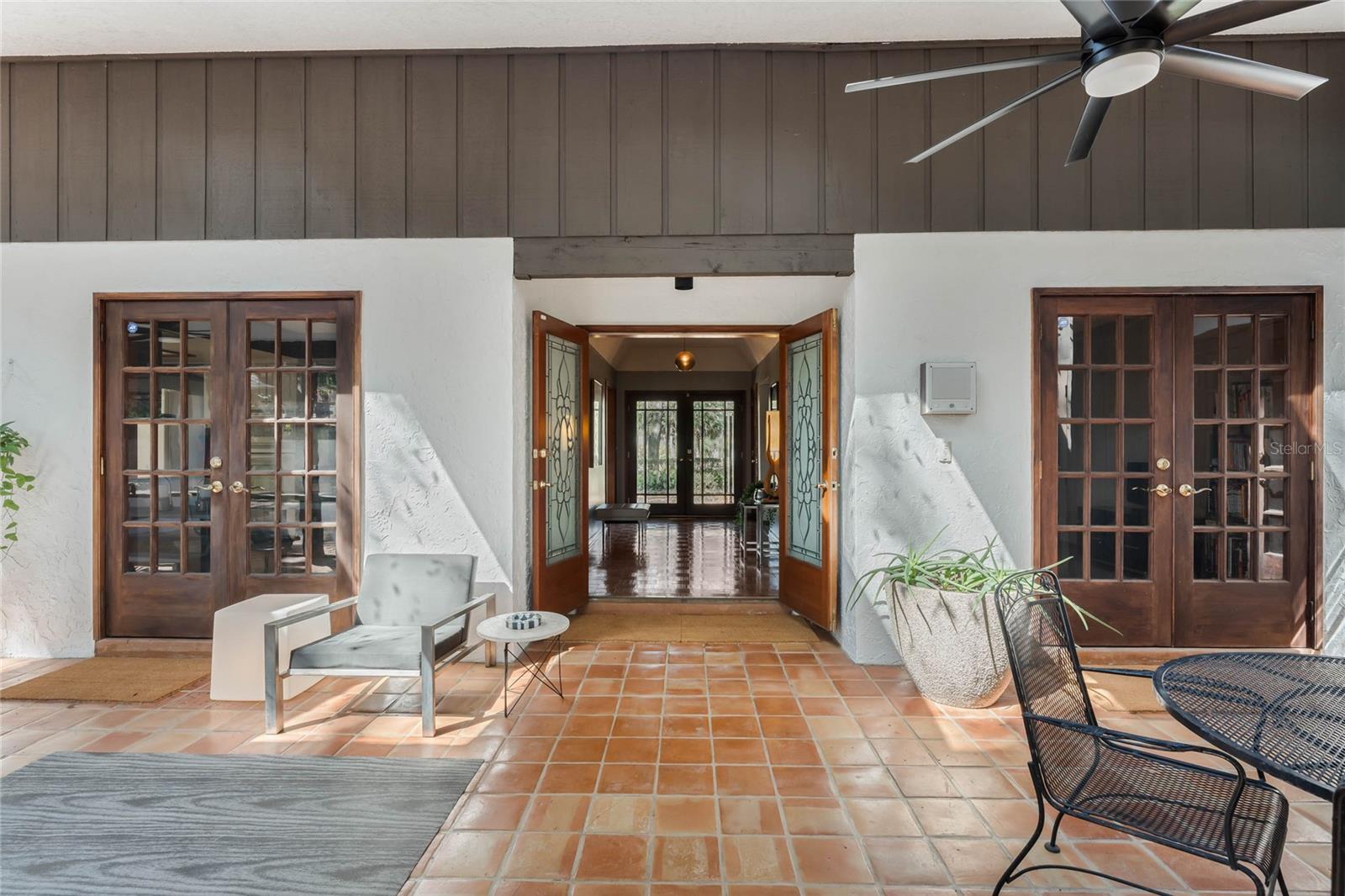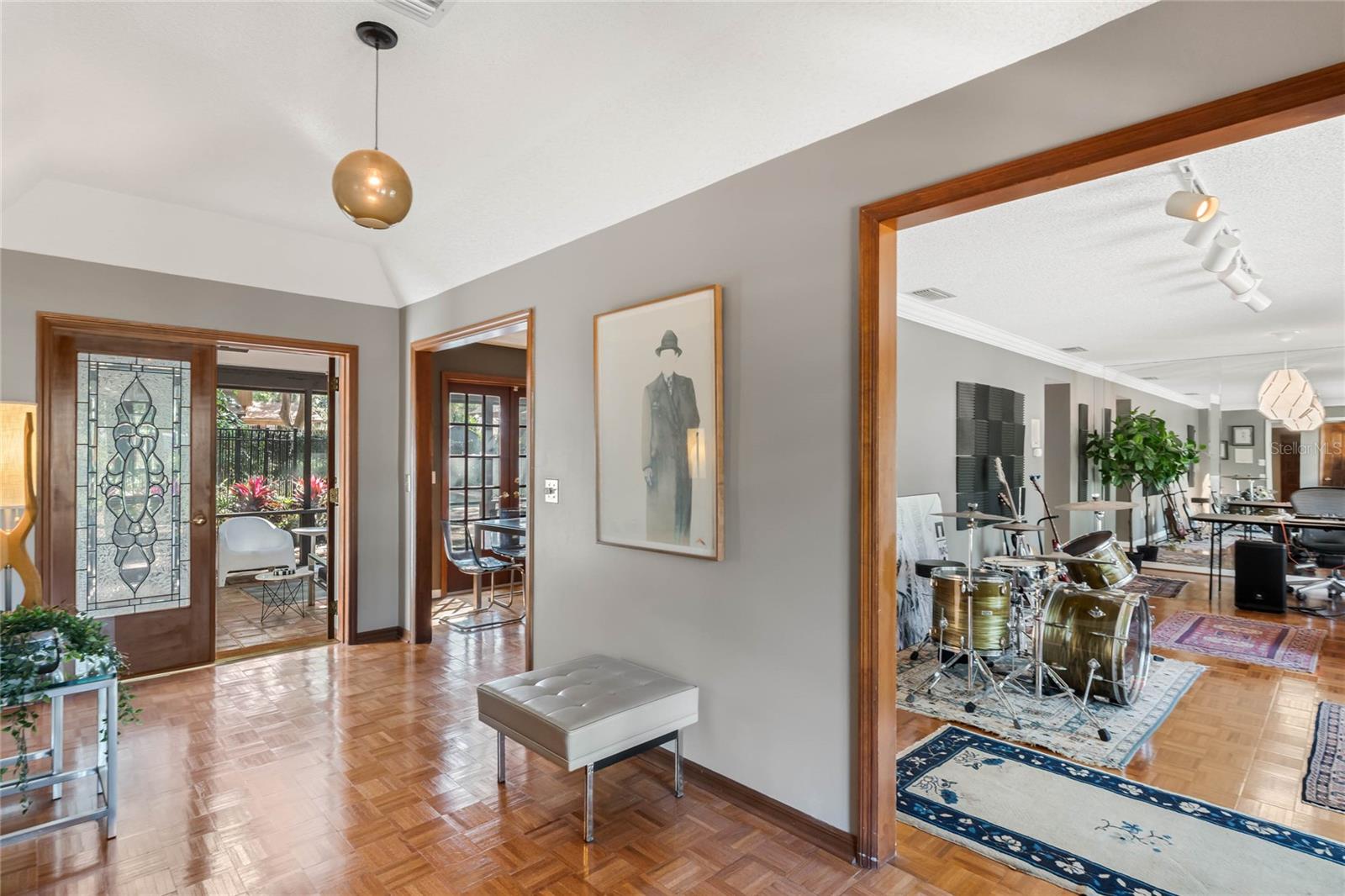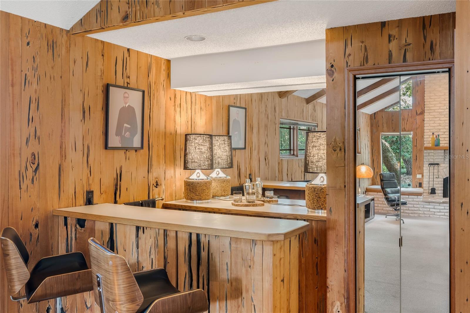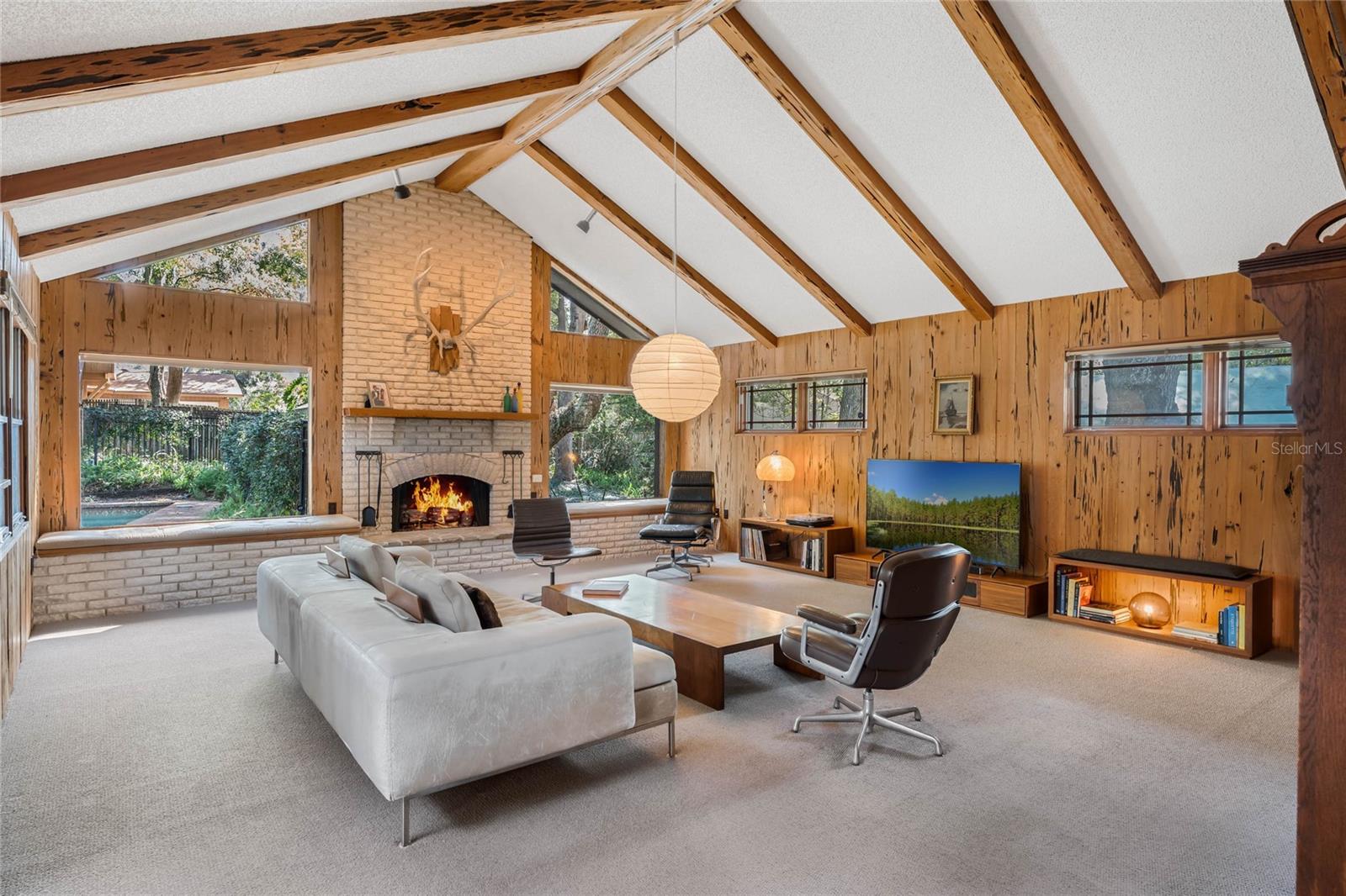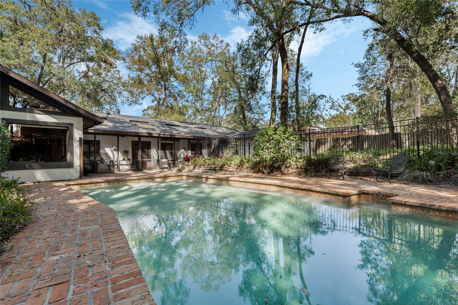 Welcome to Windermere Downs. Nestled in one of the most sought after neighborhoods in Windermere, this 70’s modern gem sits on a half acre lot. The U shaped layout of the house wraps around a generous screened lanai under a permanent roof with four skylights. The lanai is accessible from the foyer, primary bedroom, guest room, dining room, and family room and it opens up to the swimming pool and luxurious back yard. The foyer separate the living areas of the house from the bedrooms. The right side opens to the kitchen with its casual dining space, a large room that could be used as formal dining and/or living room, and an extra spacious family room paneled with the quite rare Pecky Cypress wood. The opposite side of the home is devoted to bedrooms and remains very quiet and separated from the rest of the house. The property is just a few homes from the private neighborhood beach lot that features a park, sandy beach, covered dock, and boat ramp. The park is regularly used for annual community gatherings and beach days to enjoy the great Florida sunshine. The boat ramp provides access to the renowned Butler Chain of Lakes. The Butler Chain of Lakes is a system of 13 interconnected lakes known for its excellent water quality, wildlife, and recreational opportunities, including boating, fishing, and water sports. The home features a fenced and covered boat parking spot. The canopy of mature oaks offers shade, privacy, and the charm of a true southern residence. Embrace the tranquillity of this established community as soon as you drive in the neighborhood. Tennis courts, playgrounds and beach lot blend perfectly between homes and the staggering landscape. Charm meets convenience in this delightful area which, being close and well connected to the major expressways, offers the ideal blend of style, community, suburban living, and urban accessibility. New roof and gutters January 2025. AHS Home Warranty included. Walking distance to Yellow Dog Eats and close Windermere Farmer’s Market & Food Truck Night.