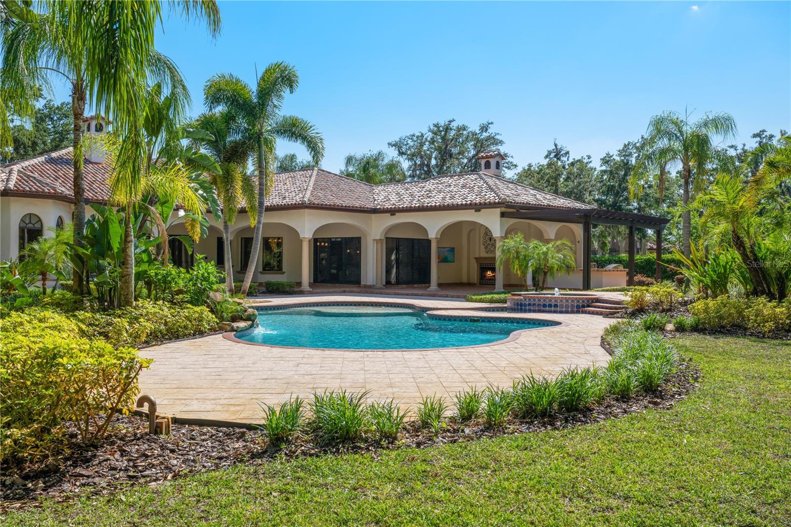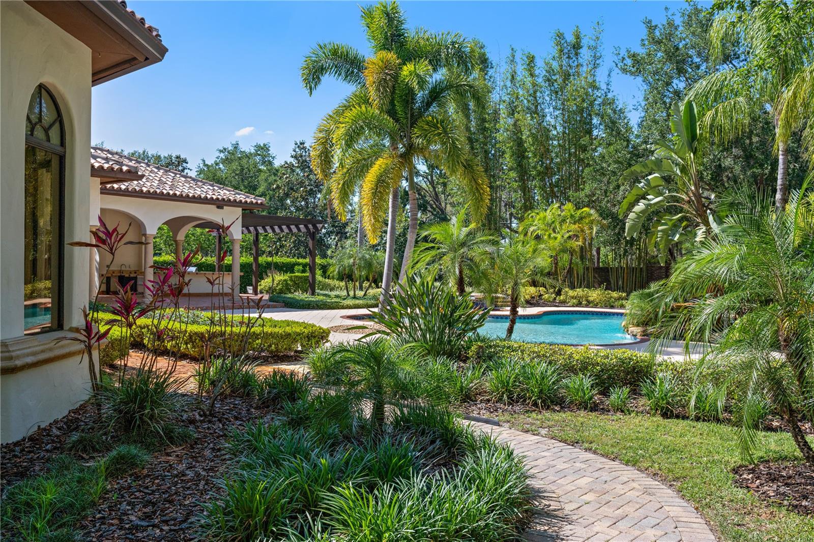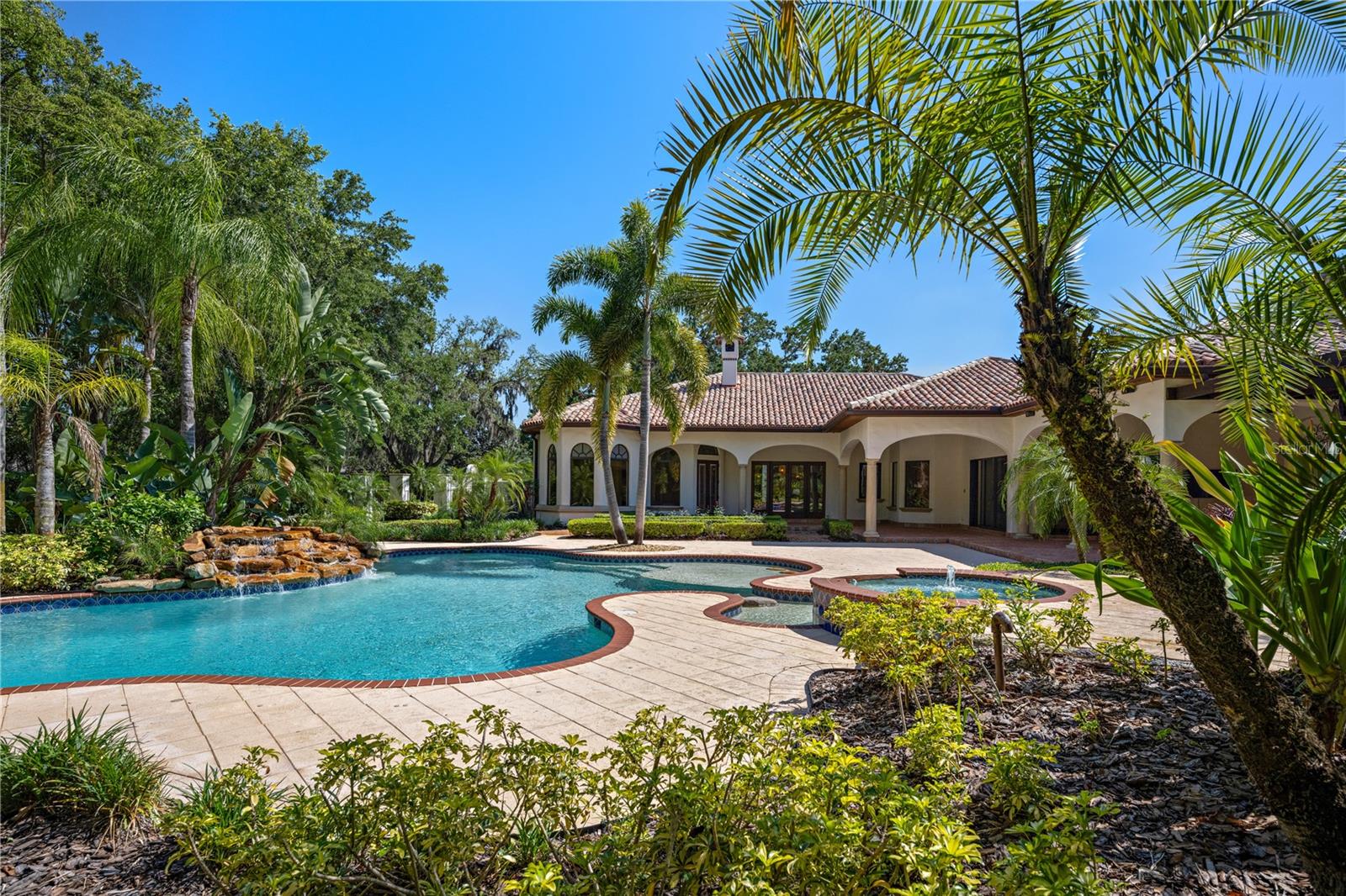Stunning Mark Nasrallah designed residence, located in the prestigious gated enclave of Chaine Du Lac. Set on an expansive 1.29 Acre lot, this stunning home boasts 4,712 square feet of impeccably designed living space and an impressive 8,590 square feet under roof. Step inside and you are immediately greeted with high ceilings, rich architectural details, and lots of windows that flood the home with natural light and offer seamless views of the gorgeous outdoor living spaces. Sophisticated finishes such as custom millwork, imported stone, and designer lighting elevate every room with a sense of understated opulence. The gourmet kitchen is a culinary masterpiece, complete with top-of-the-line appliances, custom cabinetry, a large center island, a hidden walk-in pantry and an adjoining breakfast nook. The expansive living and dining areas flow effortlessly to the outdoors, creating a perfect harmony of indoor-outdoor living. The primary suite is a private retreat, featuring an elegant sitting area, a large walk-in closet, and a spa-inspired bath with an oversized soaking tub, a luxurious walk-in shower overlooking a private courtyard with a fountain, and exquisite designer finishes that elevate the experience of relaxation. Step outside to your private backyard retreat, where tropical landscaping surrounds a resort-style pool and spa, offering complete seclusion and serenity. The expansive covered patio features a fully equipped summer kitchen, multiple seating areas, making it the perfect space for entertaining. Additional amenities include a sprawling four-car garage that provides ample room for the car enthusiast in the family, three more generously sized bedrooms with en-suite bathrooms, a dedicated home office, and a wine cellar. Located in the exclusive community of Chaine Du Lac this home is minutes from top-rated schools, championship golf courses, and the world-class dining and shopping. You are also just minutes away from all of the area atractions. This is more than a home it’s a statement of luxury, design, and unparalleled craftsmanship, don't miss the opportunity to make it yours.