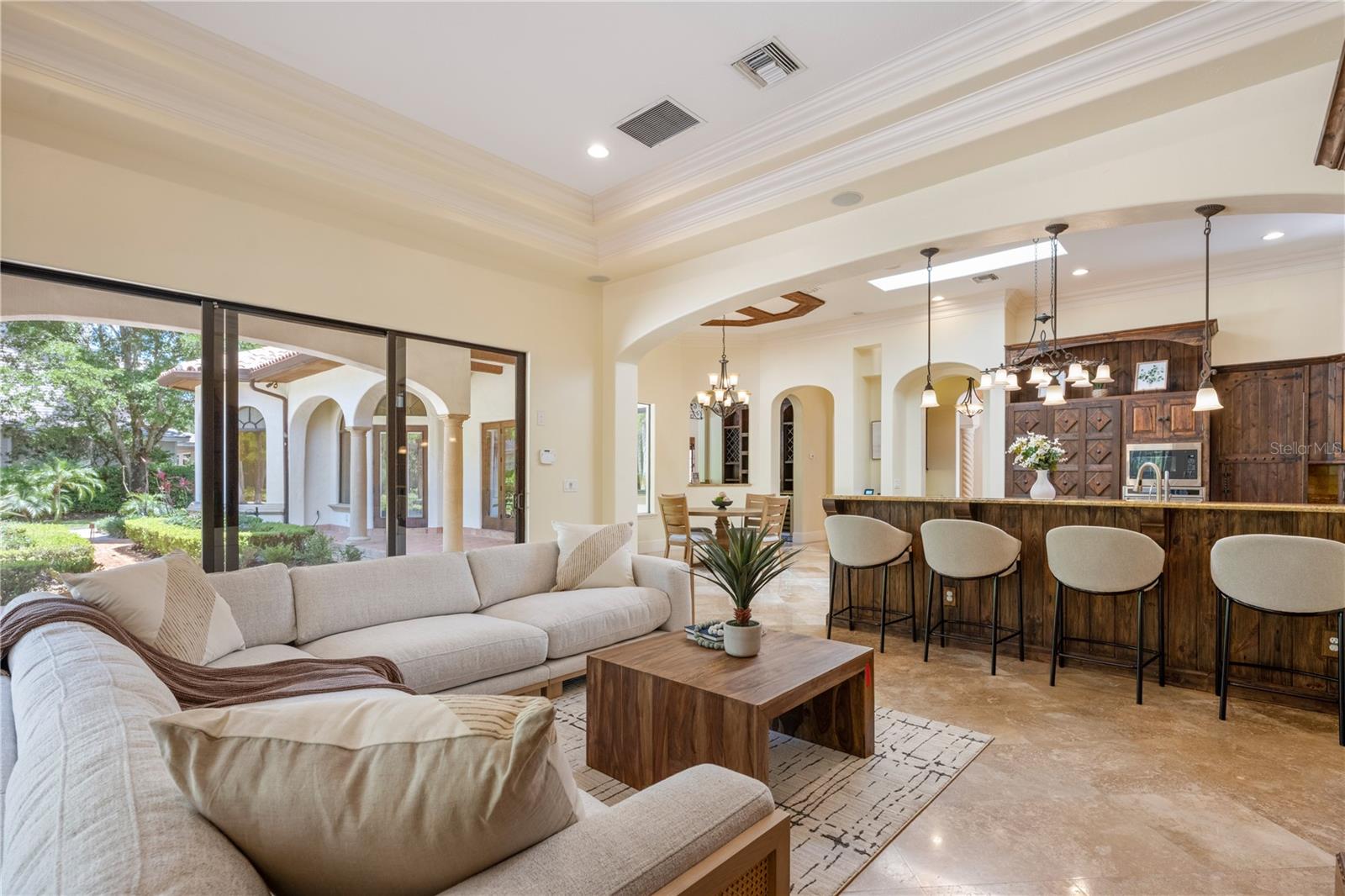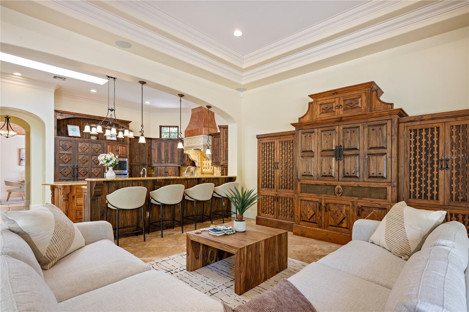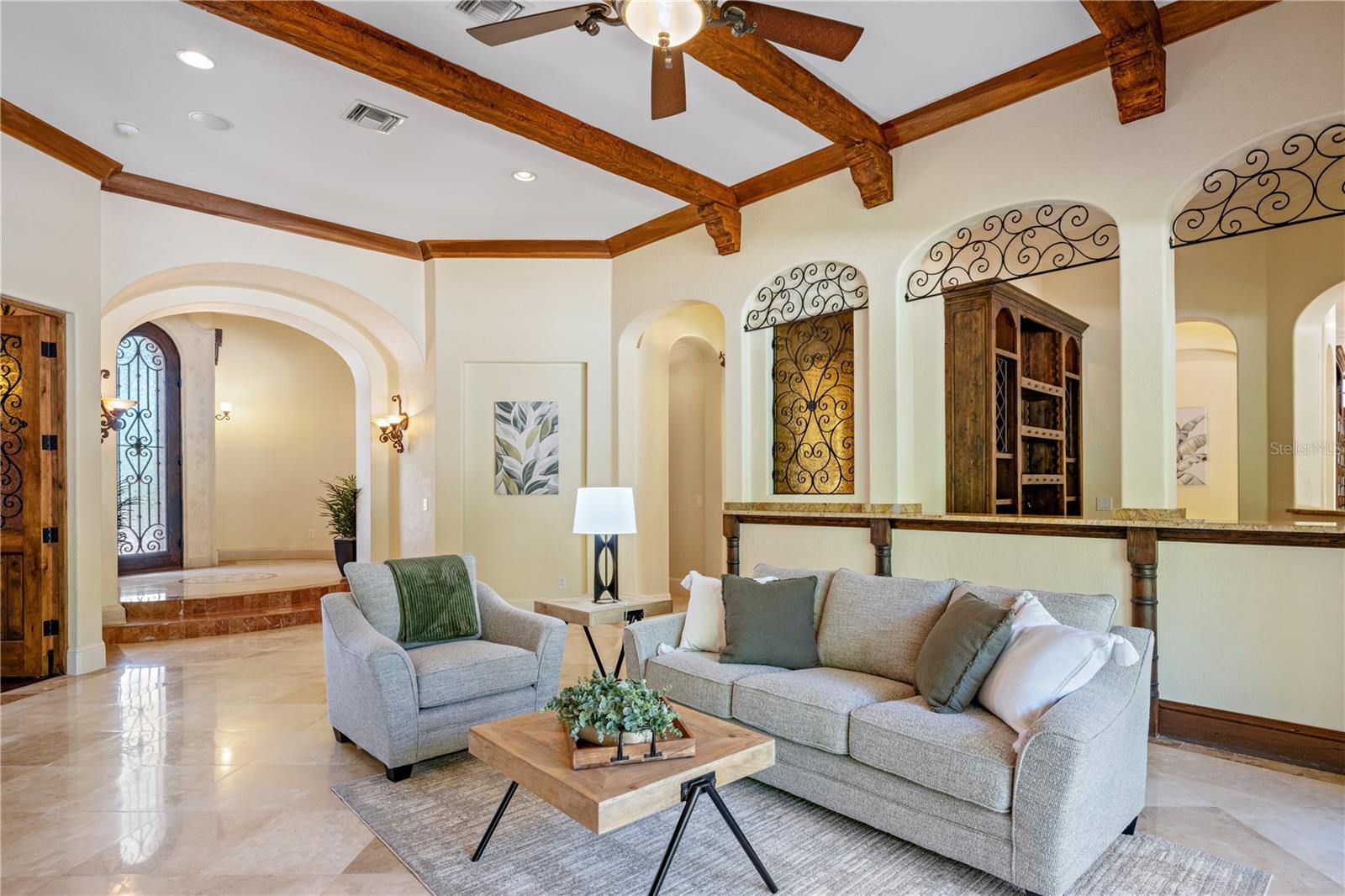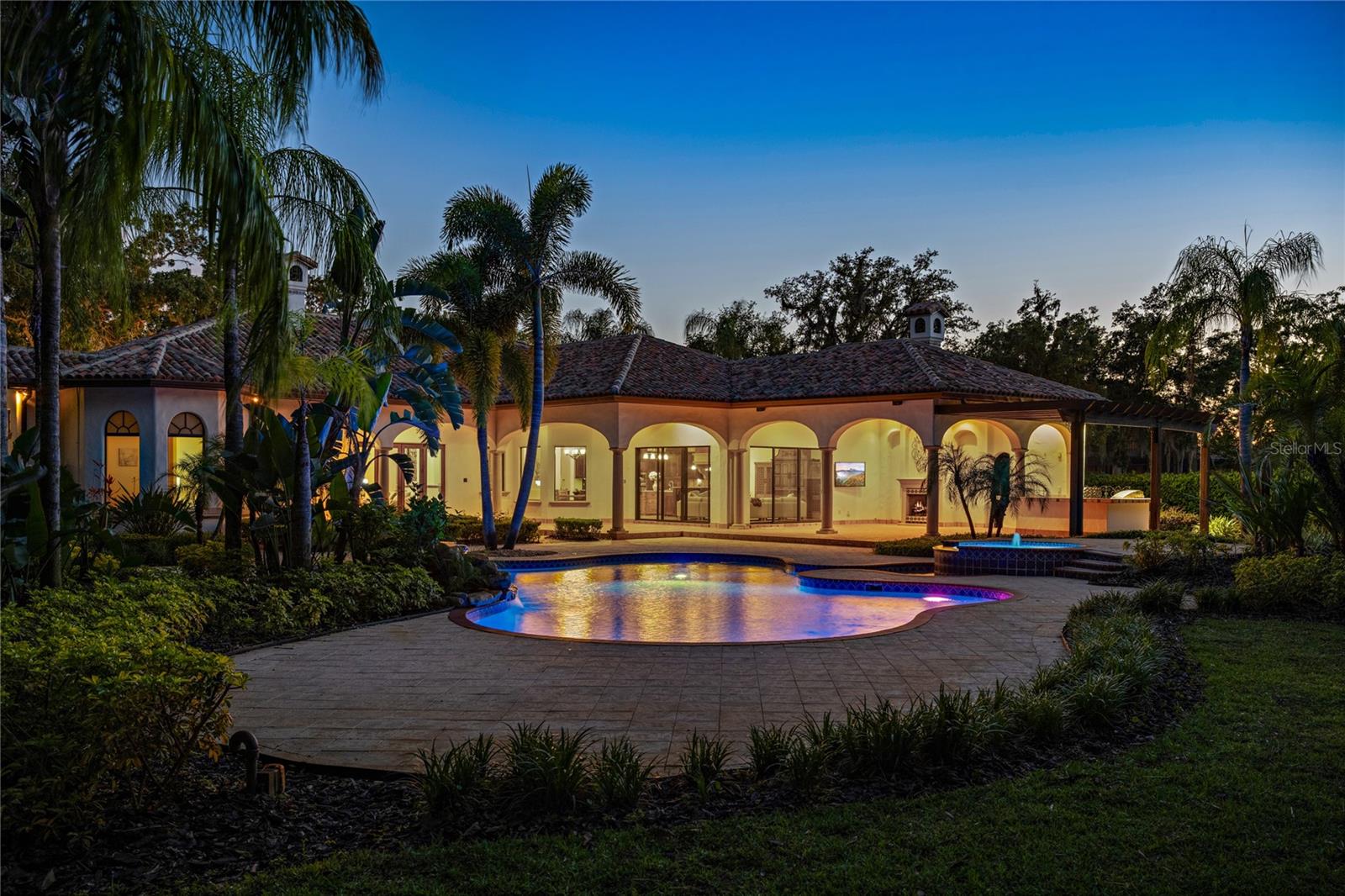 Stunning Mark Nasrallah designed residence, located in the prestigious gated enclave of Chaine Du Lac. Set on an expansive 1.29 Acre lot, this stunning home boasts 4,712 square feet of impeccably designed living space and an impressive 8,590 square feet under roof. Step inside and you are immediately greeted with high ceilings, rich architectural details, and lots of windows that flood the home with natural light and offer seamless views of the gorgeous outdoor living spaces. Sophisticated finishes such as custom millwork, imported stone, and designer lighting elevate every room with a sense of understated opulence. The gourmet kitchen is a culinary masterpiece, complete with top-of-the-line appliances, custom cabinetry, a large center island, a hidden walk-in pantry and an adjoining breakfast nook. The expansive living and dining areas flow effortlessly to the outdoors, creating a perfect harmony of indoor-outdoor living. The primary suite is a private retreat, featuring an elegant sitting area, a large walk-in closet, and a spa-inspired bath with an oversized soaking tub, a luxurious walk-in shower overlooking a private courtyard with a fountain, and exquisite designer finishes that elevate the experience of relaxation. Step outside to your private backyard retreat, where tropical landscaping surrounds a resort-style pool and spa, offering complete seclusion and serenity. The expansive covered patio features a fully equipped summer kitchen, multiple seating areas, making it the perfect space for entertaining. Additional amenities include a sprawling four-car garage that provides ample room for the car enthusiast in the family, three more generously sized bedrooms with en-suite bathrooms, a dedicated home office, and a wine cellar. Located in the exclusive community of Chaine Du Lac this home is minutes from top-rated schools, championship golf courses, and the world-class dining and shopping. You are also just minutes away from all of the area atractions. This is more than a home it’s a statement of luxury, design, and unparalleled craftsmanship, don't miss the opportunity to make it yours.