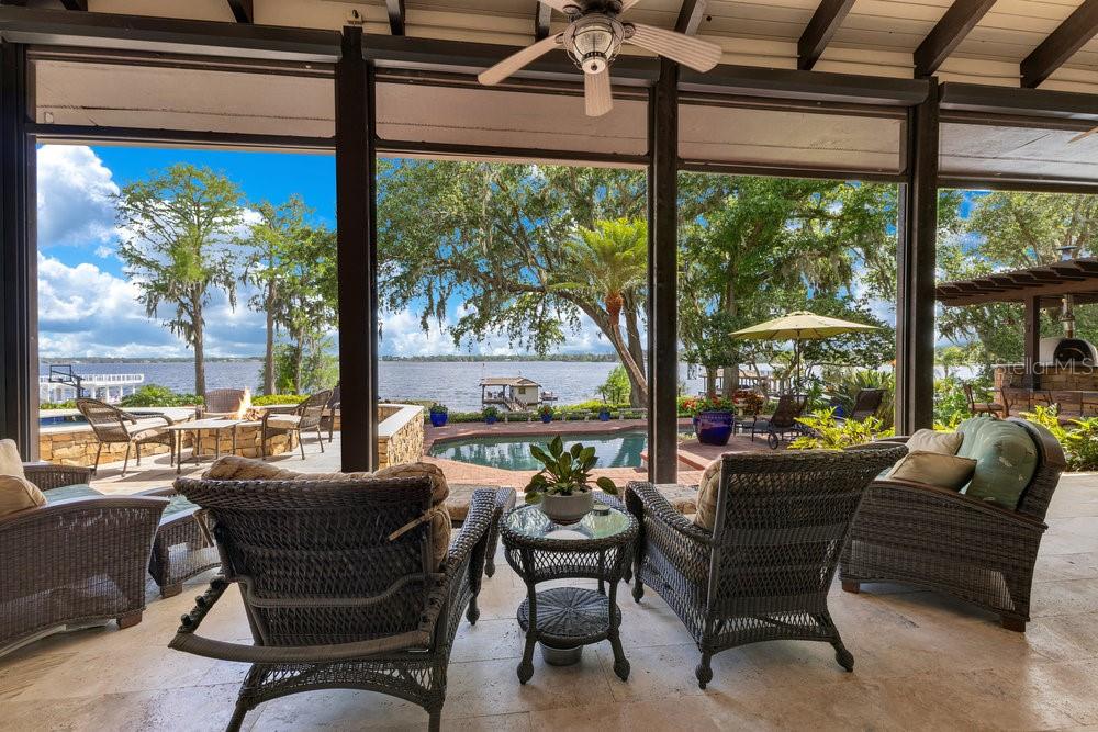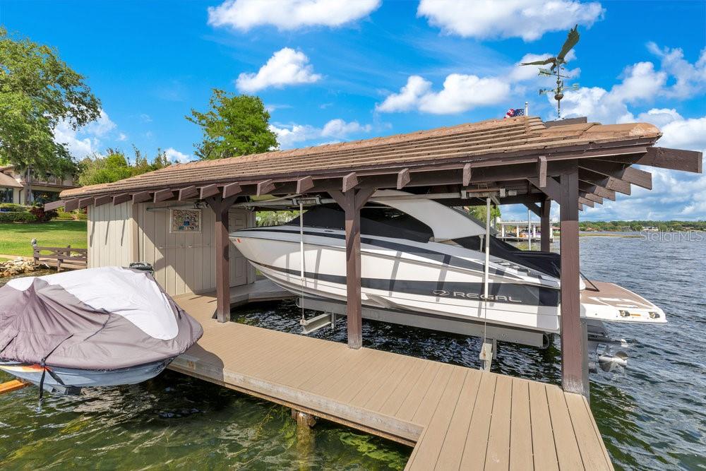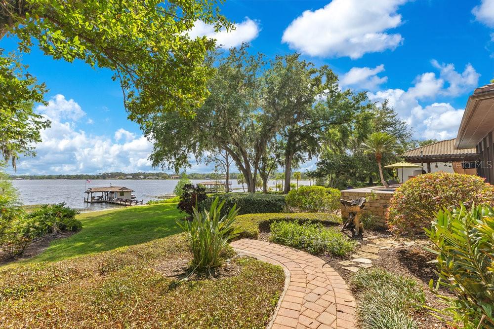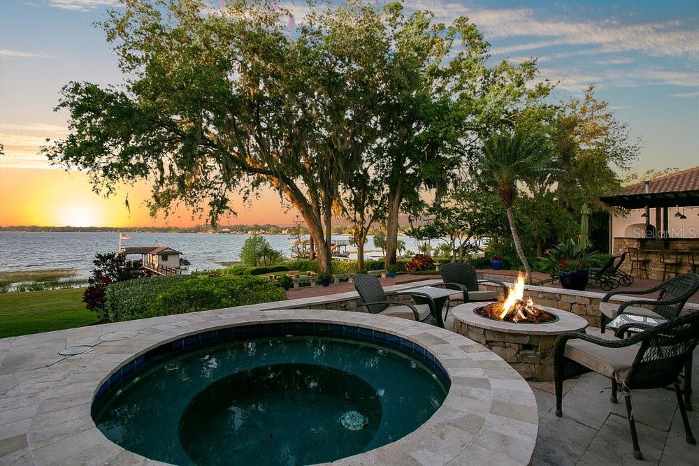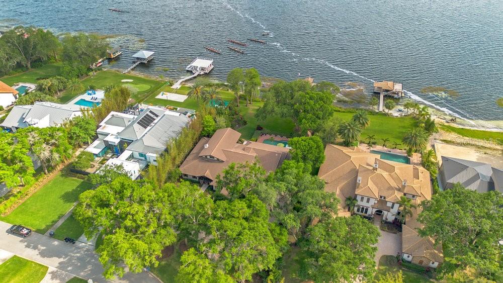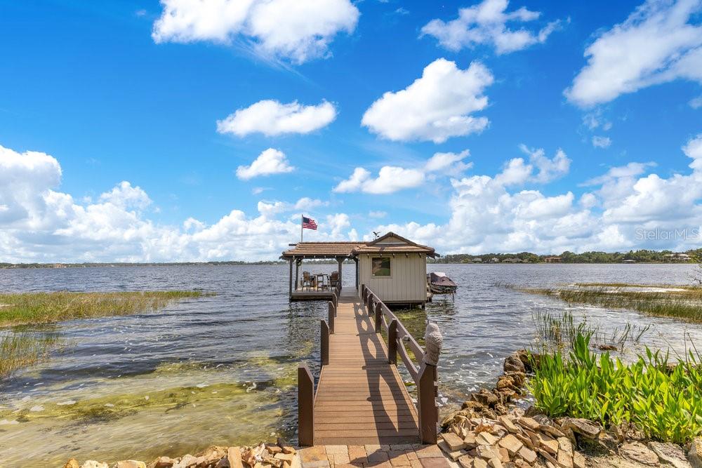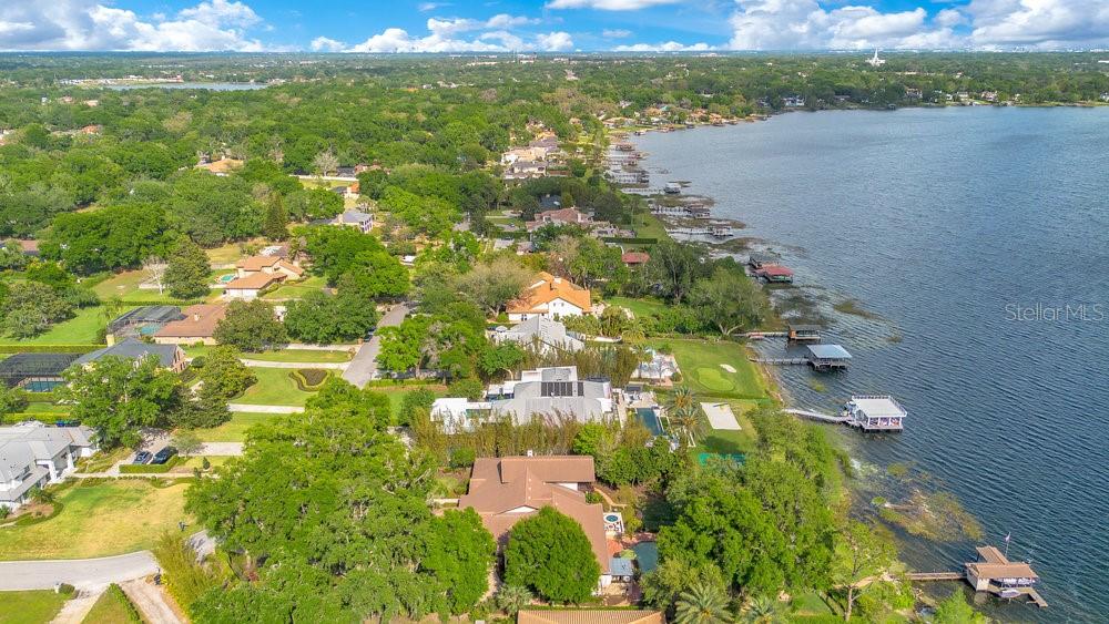 This exceptional lakefront home is located on The Butler Chain of Lakes with 137 feet of pristine shoreline and is situated on almost one dry acre. At first glance you will immediately fall in love with this beautiful custom home boasting amazing panoramic views and nightly Disney fireworks. The circular paved drive flanked with mature oak trees welcome you home to a covered porch and an 8-inch-thick solid cedar entry door with artisan leaded glass. The great room definitely adds to the “wow factor” with its soaring 23’ cathedral ceilings highlighted by a Tennessee river rock fireplace, and the crown jewel formal dining room with large, picturesque windows overlooking the stunning vistas. The majority of the living space, including all the bedrooms, are conveniently located on the main level. Your fully equipped kitchen includes solid wood cabinetry, granite countertops, Sub Zero refrigerator, Thermador gas cooktop with exhaust, Bosch double ovens, wet bar, walk-in pantry, and breakfast area with spectacular views. Primary suite is spacious with its own screened in lanai, spa like bath including a shower, jetted tub, dual vanities, and three walk-in closets. Secondary bedrooms are all generously sized with ample closet space and bathrooms including a steam shower. The backyard space is extraordinary with mature landscaping, flowers, and its own motorized screened in lanai including a summer kitchen fit for any chef with a pizza oven, prep area, grill, refrigerator, TV, pool, heated spa, and gas firepit. The southern position of the backyard gives you the freedom to enjoy all those memorable get-togethers and cool lake breezes without the strong afternoon sun. The custom floor plan accentuates the lake lifestyle with most of the home taking full advantage of the lakeview. The partially enclosed boat dock with a boat lift and side jet-ski lift is a rare gem itself since it is grandfathered in. Other notable upgrades include newer doors & windows and a tile roof. Adding to the home’s appeal, the Lakes neighborhood has its own community boat ramp and tennis courts. You get to live in Windermere on the famed Butler Chain of Lakes without the traffic. Major roads, highways, great schools, shopping, and restaurants are just a five-to-ten-minute drive from the property. This rare well-built custom lakefront home is waiting for you! Be sure to click on the virtual tour links.