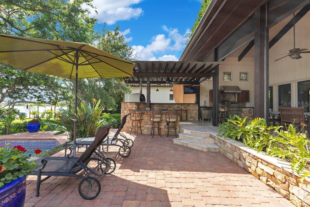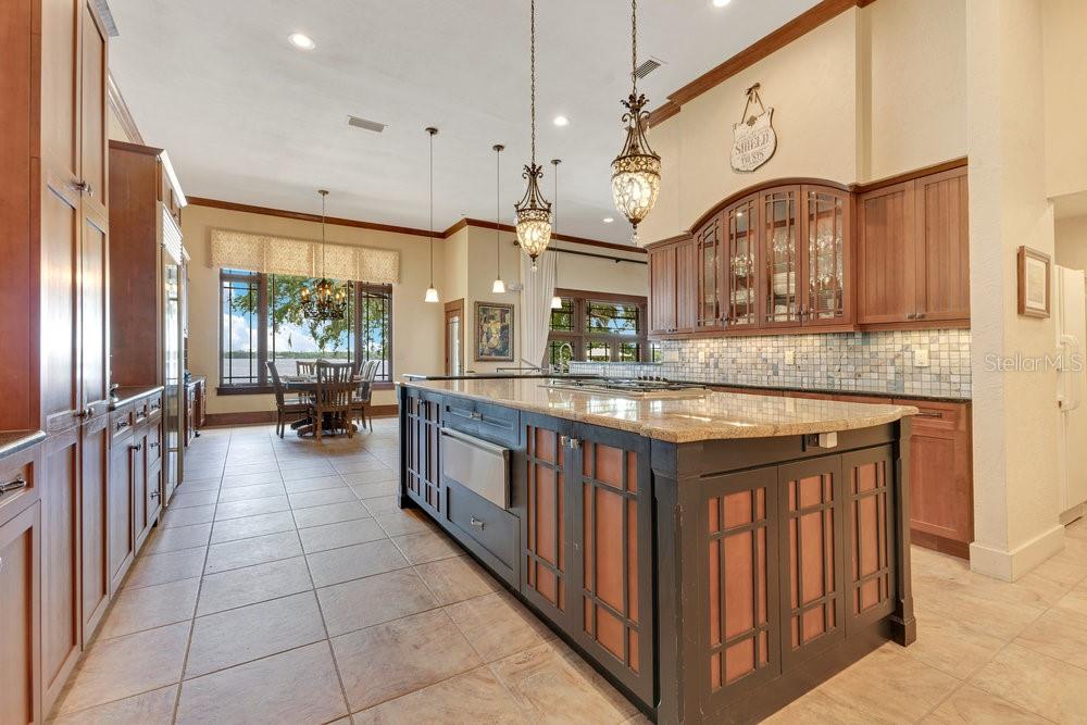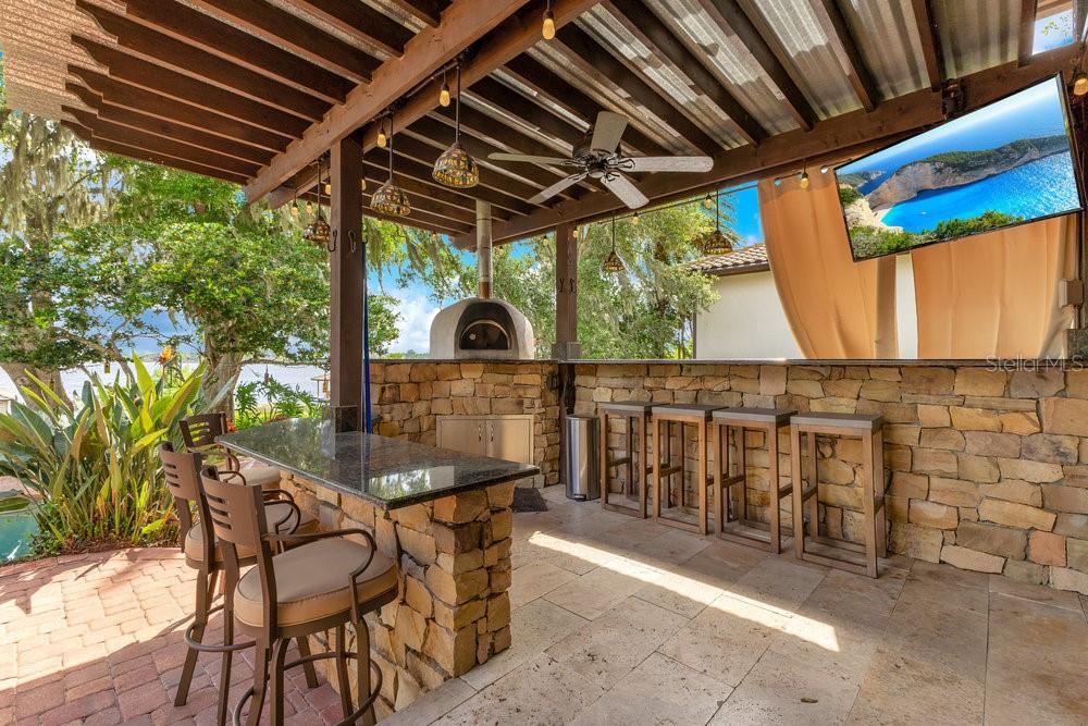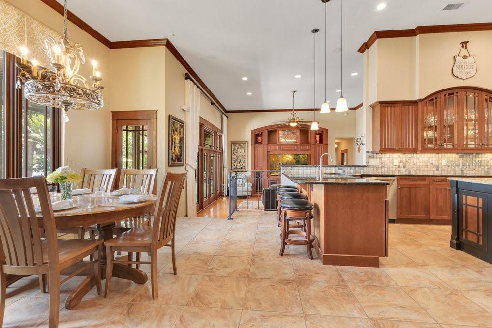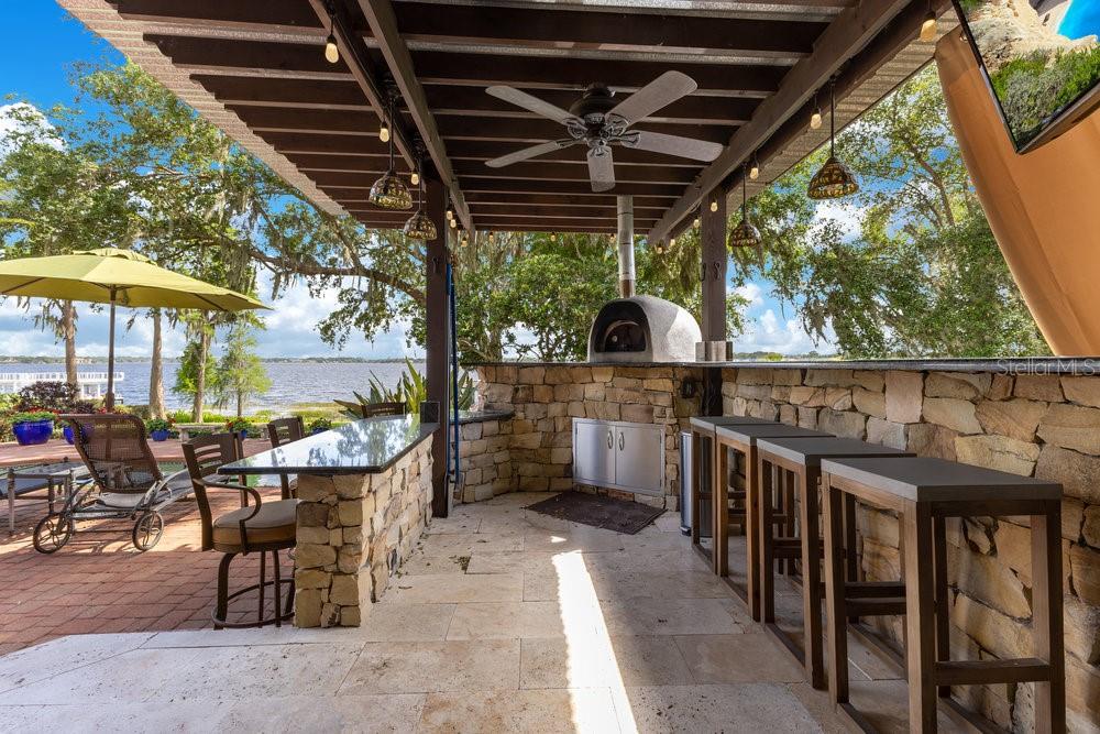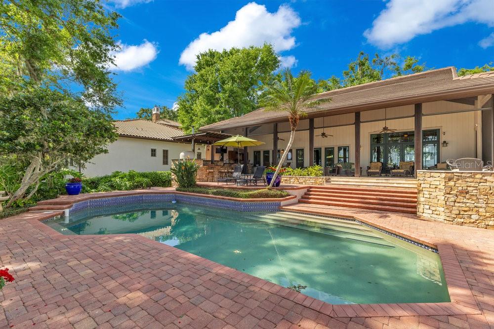 This exceptional lakefront home is located on The Butler Chain of Lakes with 137 feet of pristine shoreline and is situated on almost one dry acre. At first glance you will immediately fall in love with this beautiful custom home boasting amazing panoramic views and nightly Disney fireworks. The circular paved drive flanked with mature oak trees welcome you home to a covered porch and an 8-inch-thick solid cedar entry door with artisan leaded glass. The great room definitely adds to the “wow factor” with its soaring 23’ cathedral ceilings highlighted by a Tennessee river rock fireplace, and the crown jewel formal dining room with large, picturesque windows overlooking the stunning vistas. The majority of the living space, including all the bedrooms, are conveniently located on the main level. Your fully equipped kitchen includes solid wood cabinetry, granite countertops, Sub Zero refrigerator, Thermador gas cooktop with exhaust, Bosch double ovens, wet bar, walk-in pantry, and breakfast area with spectacular views. Primary suite is spacious with its own screened in lanai, spa like bath including a shower, jetted tub, dual vanities, and three walk-in closets. Secondary bedrooms are all generously sized with ample closet space and bathrooms including a steam shower. The backyard space is extraordinary with mature landscaping, flowers, and its own motorized screened in lanai including a summer kitchen fit for any chef with a pizza oven, prep area, grill, refrigerator, TV, pool, heated spa, and gas firepit. The southern position of the backyard gives you the freedom to enjoy all those memorable get-togethers and cool lake breezes without the strong afternoon sun. The custom floor plan accentuates the lake lifestyle with most of the home taking full advantage of the lakeview. The partially enclosed boat dock with a boat lift and side jet-ski lift is a rare gem itself since it is grandfathered in. Other notable upgrades include newer doors & windows and a tile roof. Adding to the home’s appeal, the Lakes neighborhood has its own community boat ramp and tennis courts. You get to live in Windermere on the famed Butler Chain of Lakes without the traffic. Major roads, highways, great schools, shopping, and restaurants are just a five-to-ten-minute drive from the property. This rare well-built custom lakefront home is waiting for you! Be sure to click on the virtual tour links.