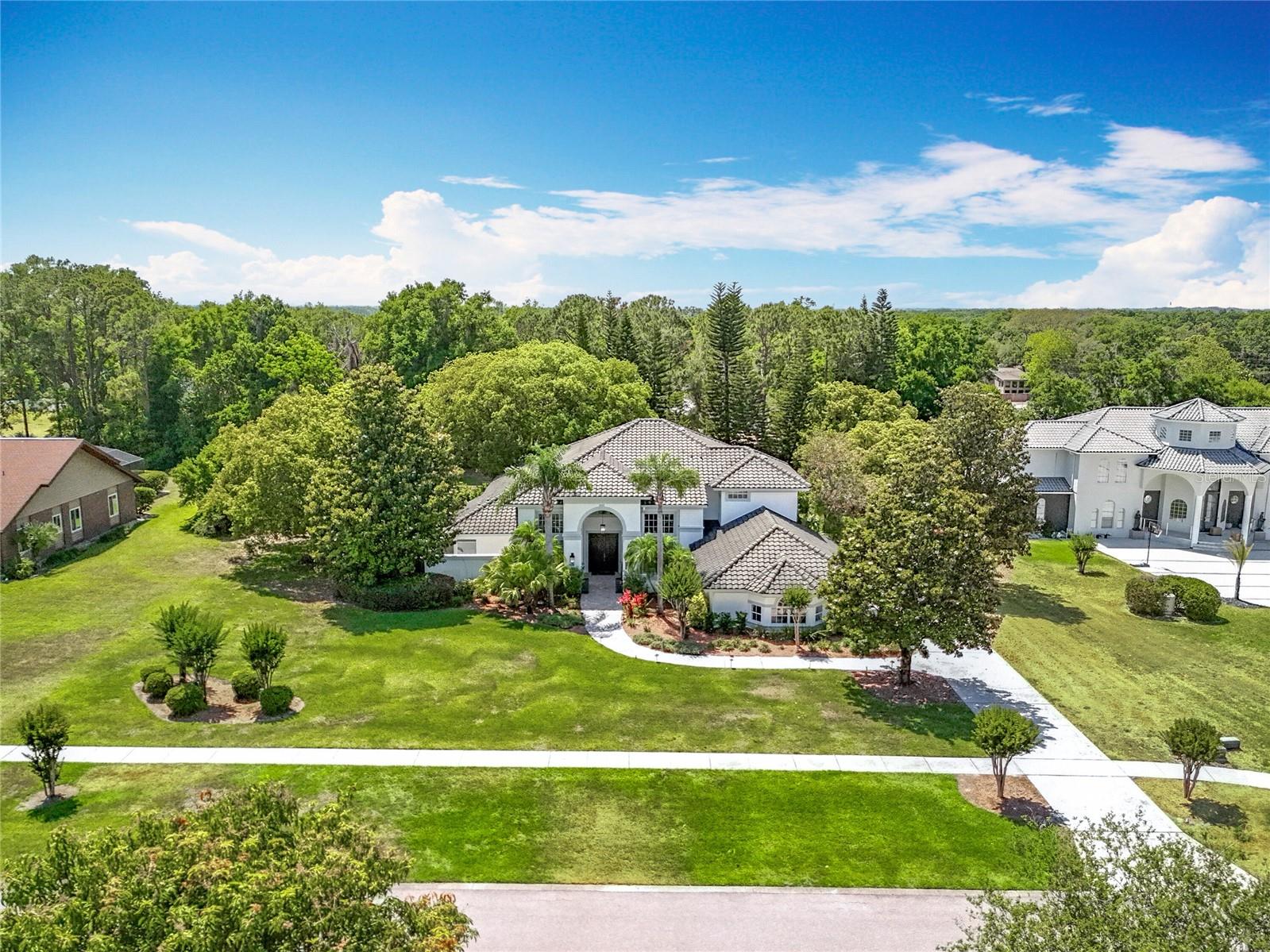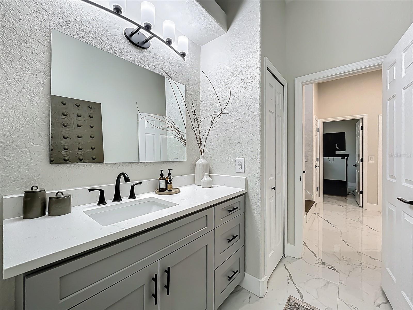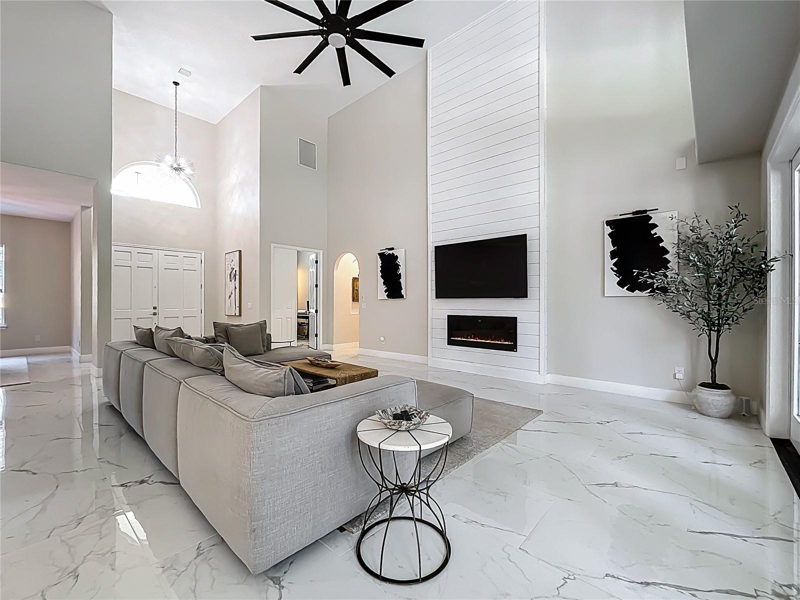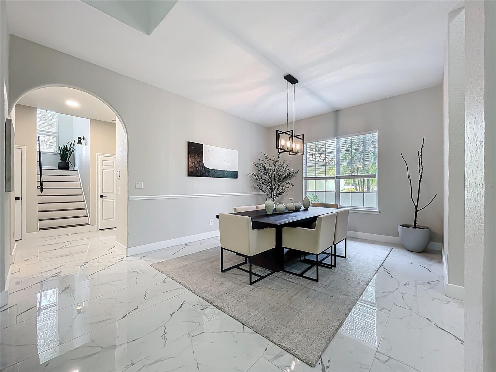 Stunning Renovation on 1 Acre in Lake Down Cove. Located at the end of a quiet cul-de-sac, this beautifully renovated home offers a peaceful, park-like setting on a full acre in sought-after Lake Down Cove. A grand double-door entry welcomes you into a bright, modern interior where 24”x48” marble-style porcelain tile flows throughout. Sunlight fills the two-story great room, anchored by an electric fireplace and overlooked by a loft and Juliet balcony with custom wrought iron railings.The reimagined kitchen features soft-close shaker cabinets, stainless steel appliances, a six-burner cooktop with griddle, double ovens, a pot filler, and a cozy eat-in area overlooking the pool. Work from home in a stunning two-story office with illuminated wall coves and a wall of windows. The primary suite offers pool views, dual walk-in closets, high ceilings with crown molding, and a spa-like bathroom with full-height porcelain tile, a freestanding tub, and frameless glass shower. Upstairs, two additional bedrooms await, one with its own private balcony. The dedicated theater room, complete with stylish sconces, creates the ultimate movie night experience. Outside, enjoy a sparkling pool, outdoor kitchen and bar, expanded paver patio, fire pit, and mature landscaping that ensures privacy. Recent upgrades include a new water heater, 2 new Bosch AC units, a new Culligan water softener system, propane tank, built-in generator, well, irrigation system, and a brand-new septic drainfield. Minutes from top-rated dining, shopping, and attractions, this move-in ready home offers luxury, privacy, and convenience. Schedule your private tour today!