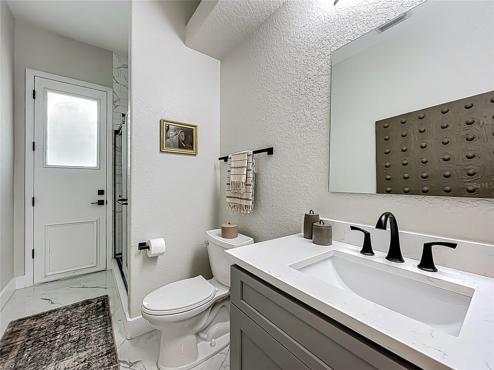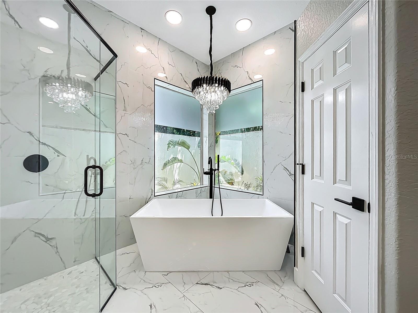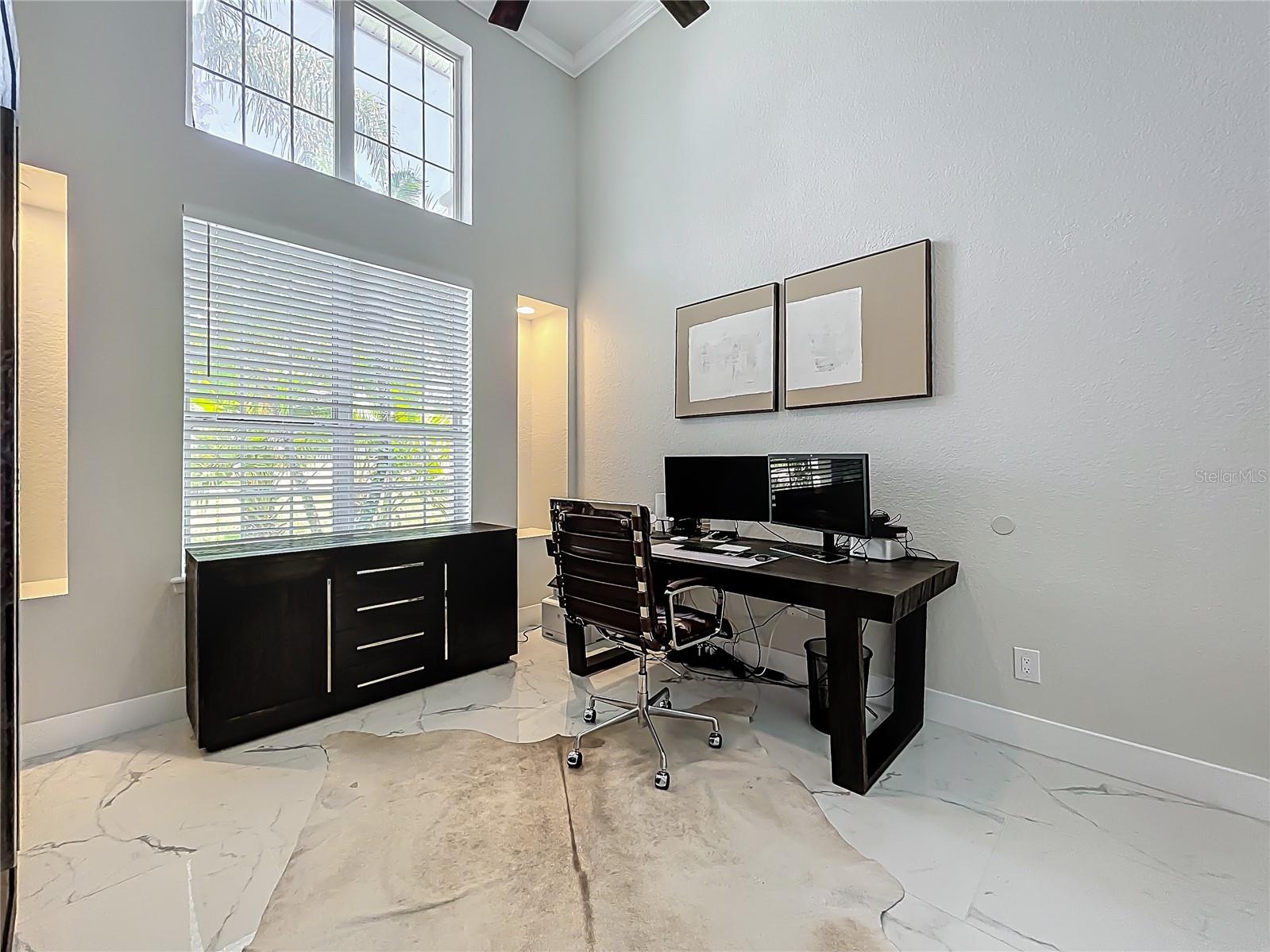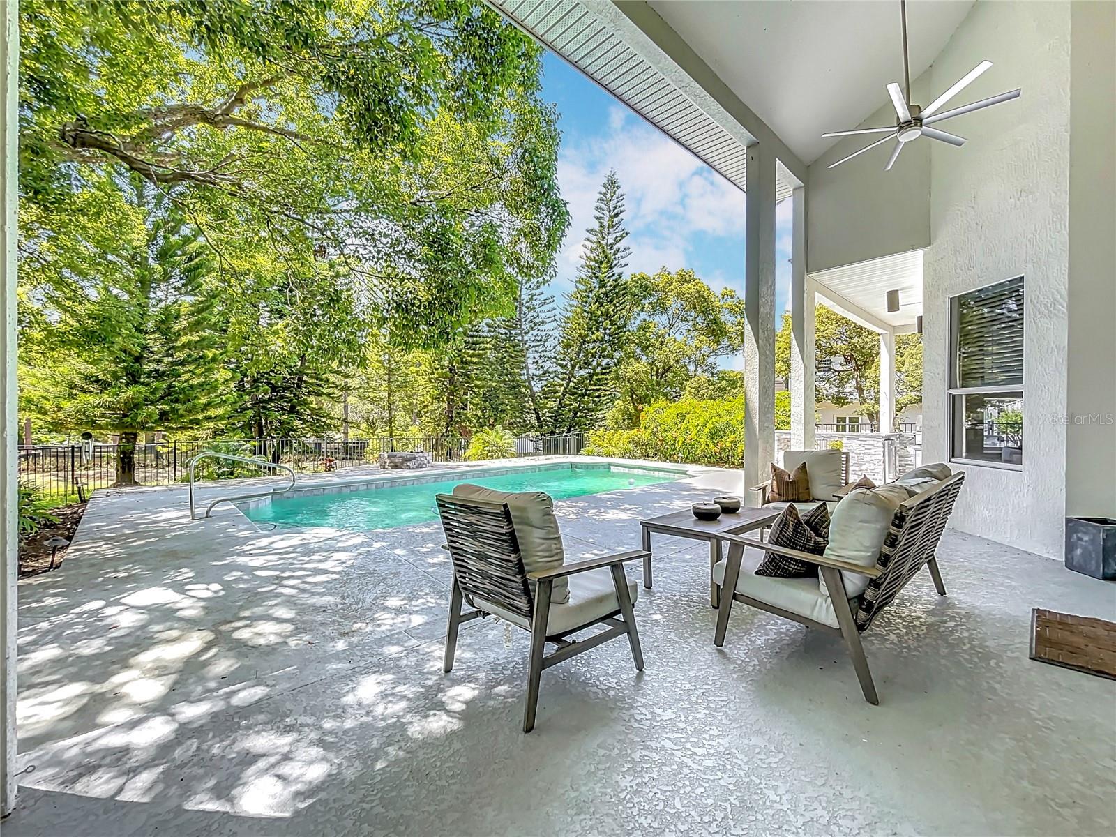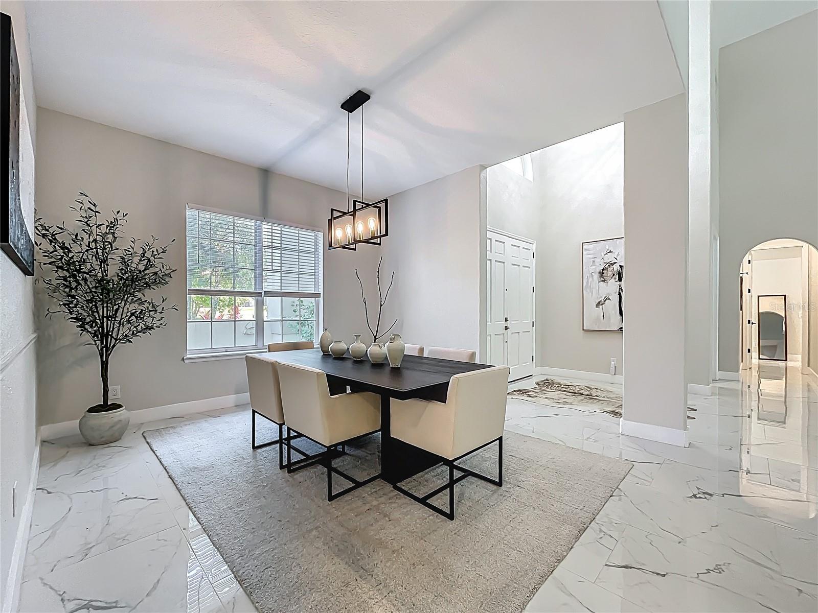 Stunning Renovation on 1 Acre in Lake Down Cove. Located at the end of a quiet cul-de-sac, this beautifully renovated home offers a peaceful, park-like setting on a full acre in sought-after Lake Down Cove. A grand double-door entry welcomes you into a bright, modern interior where 24”x48” marble-style porcelain tile flows throughout. Sunlight fills the two-story great room, anchored by an electric fireplace and overlooked by a loft and Juliet balcony with custom wrought iron railings.The reimagined kitchen features soft-close shaker cabinets, stainless steel appliances, a six-burner cooktop with griddle, double ovens, a pot filler, and a cozy eat-in area overlooking the pool. Work from home in a stunning two-story office with illuminated wall coves and a wall of windows. The primary suite offers pool views, dual walk-in closets, high ceilings with crown molding, and a spa-like bathroom with full-height porcelain tile, a freestanding tub, and frameless glass shower. Upstairs, two additional bedrooms await, one with its own private balcony. The dedicated theater room, complete with stylish sconces, creates the ultimate movie night experience. Outside, enjoy a sparkling pool, outdoor kitchen and bar, expanded paver patio, fire pit, and mature landscaping that ensures privacy. Recent upgrades include a new water heater, 2 new Bosch AC units, a new Culligan water softener system, propane tank, built-in generator, well, irrigation system, and a brand-new septic drainfield. Minutes from top-rated dining, shopping, and attractions, this move-in ready home offers luxury, privacy, and convenience. Schedule your private tour today!
