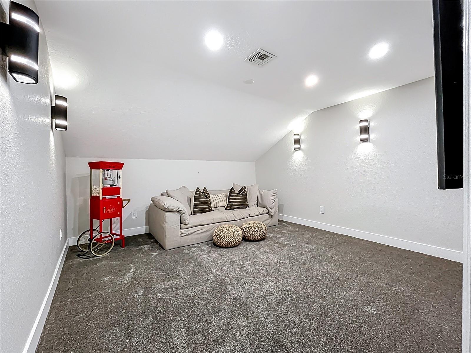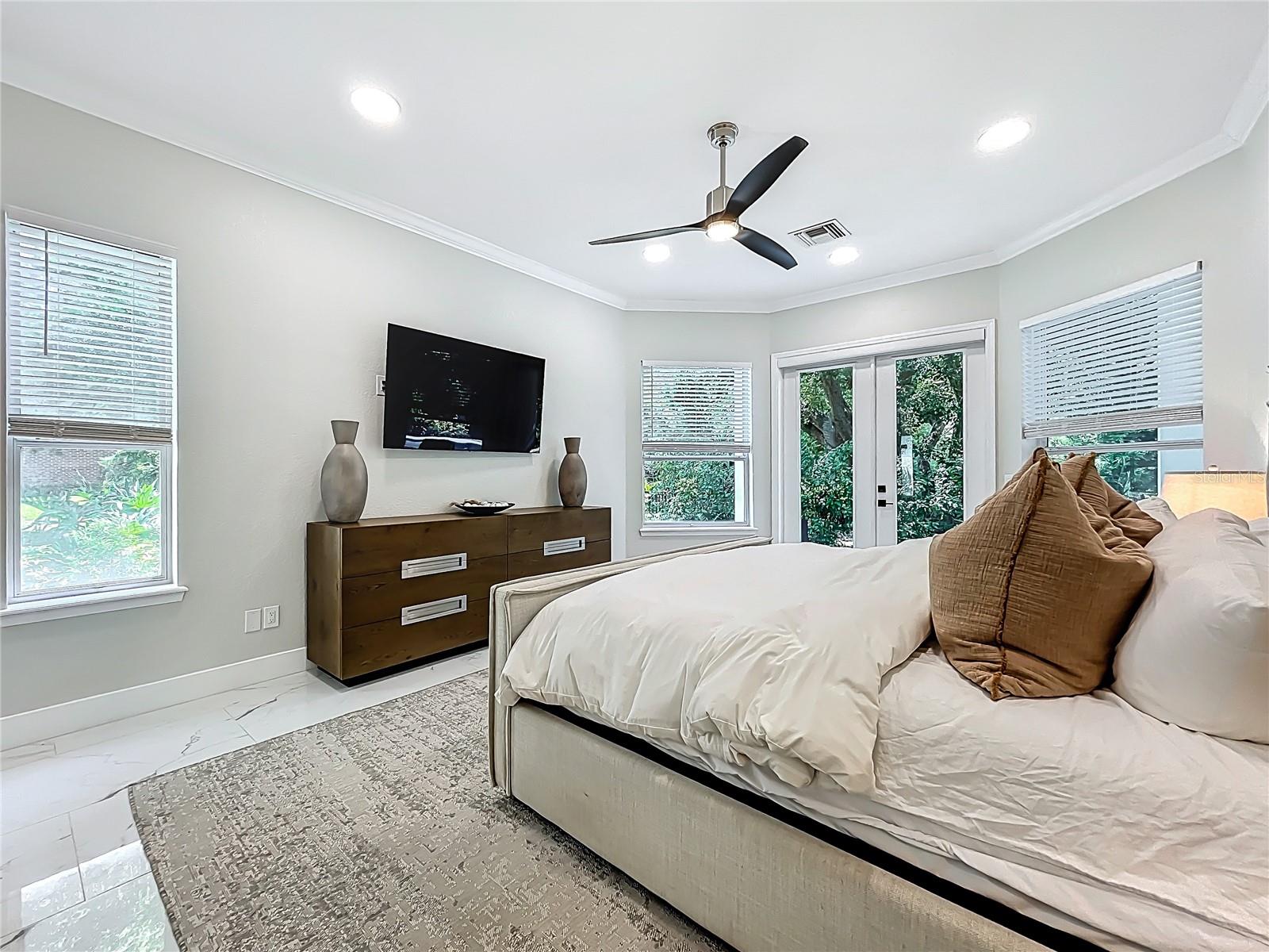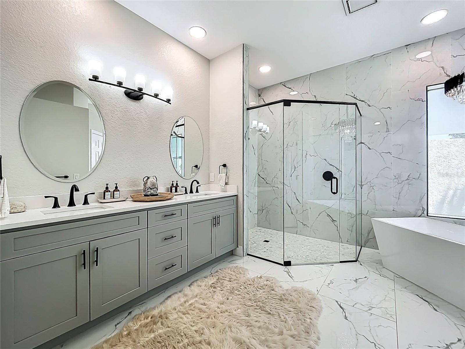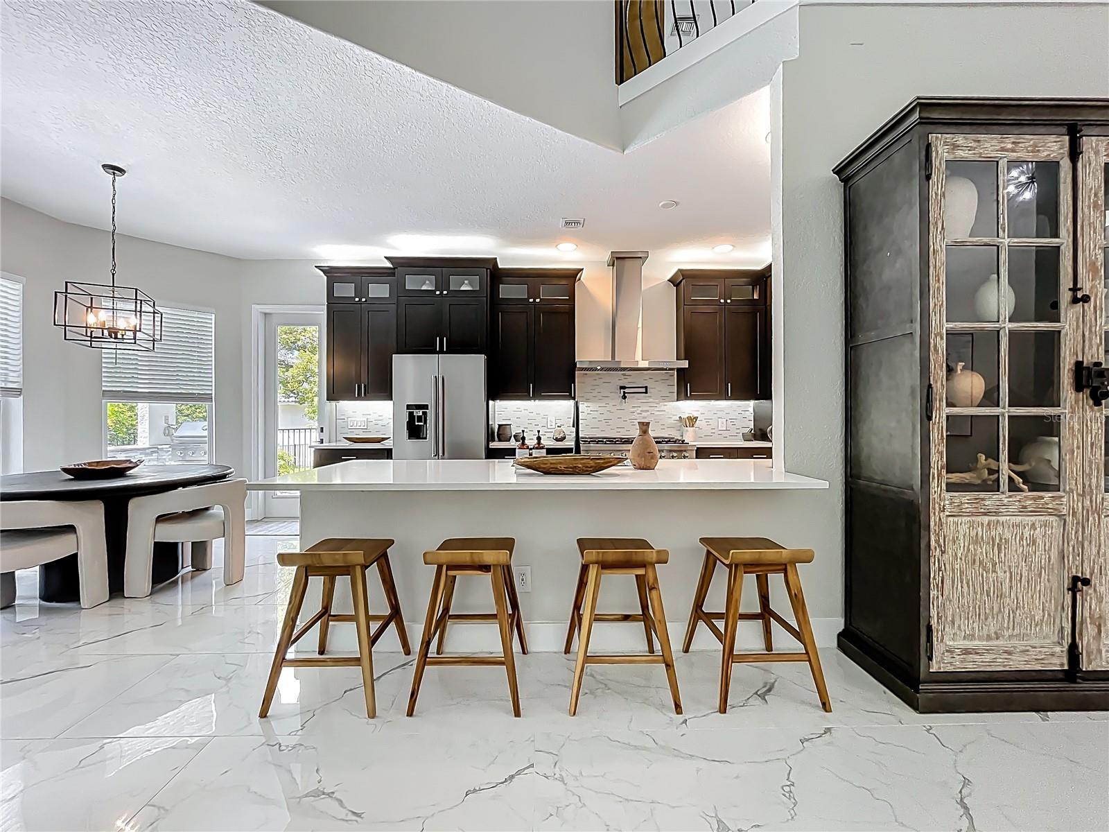 Stunning Renovation on 1 Acre in Lake Down Cove. Located at the end of a quiet cul-de-sac, this beautifully renovated home offers a peaceful, park-like setting on a full acre in sought-after Lake Down Cove. A grand double-door entry welcomes you into a bright, modern interior where 24”x48” marble-style porcelain tile flows throughout. Sunlight fills the two-story great room, anchored by an electric fireplace and overlooked by a loft and Juliet balcony with custom wrought iron railings.The reimagined kitchen features soft-close shaker cabinets, stainless steel appliances, a six-burner cooktop with griddle, double ovens, a pot filler, and a cozy eat-in area overlooking the pool. Work from home in a stunning two-story office with illuminated wall coves and a wall of windows. The primary suite offers pool views, dual walk-in closets, high ceilings with crown molding, and a spa-like bathroom with full-height porcelain tile, a freestanding tub, and frameless glass shower. Upstairs, two additional bedrooms await, one with its own private balcony. The dedicated theater room, complete with stylish sconces, creates the ultimate movie night experience. Outside, enjoy a sparkling pool, outdoor kitchen and bar, expanded paver patio, fire pit, and mature landscaping that ensures privacy. Recent upgrades include a new water heater, 2 new Bosch AC units, a new Culligan water softener system, propane tank, built-in generator, well, irrigation system, and a brand-new septic drainfield. Minutes from top-rated dining, shopping, and attractions, this move-in ready home offers luxury, privacy, and convenience. Schedule your private tour today!