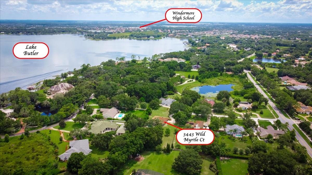 Welcome to 3443 Wild Myrtle Court, a beautifully renovated executive home nestled on a serene 1.2-acre cul-de-sac lot in the esteemed Lake Butler Estates of Windermere, Florida. This expansive 5-bedroom, 3-bathroom residence offers 2,918 square feet of thoughtfully designed living space, combining modern updates with timeless charm. The home boasts a formal living room featuring a whitewashed brick wood-burning fireplace, a generous 26' x 23' family room, and a dedicated office space, providing ample room for relaxation and productivity. Recent renovations include updated bathrooms, new tiled floors, fresh interior paint, new ceiling fans, and LED lighting. The exterior received a new roof and paint in 2018, ensuring both aesthetic appeal and structural integrity. Enjoy the Florida lifestyle with a newly resurfaced and tiled screened-in pool, perfect for entertaining or unwinding in your private backyard retreat. Situated near Windermere Elementary School and the historic downtown area, this home offers convenient access to top-rated schools, shopping, dining, and entertainment options. Experience the perfect blend of luxury and comfort in this exceptional Windermere residence. Don't miss the opportunity to make this your dream home.
