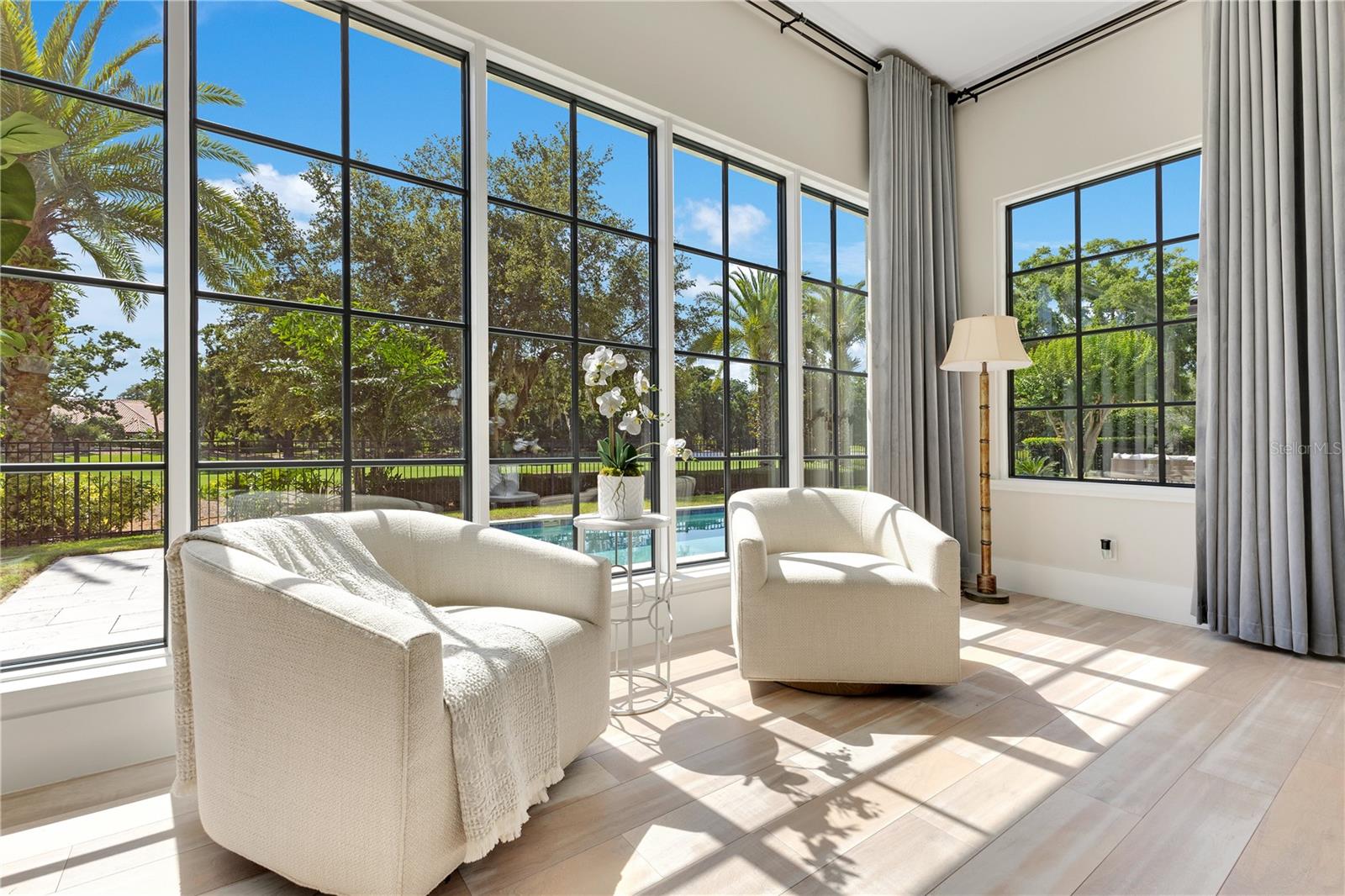 Newly remodeled in 2019 — a rare find in the community! Sunlit single-storey layout, bright in every corner ! Panoramic views of Hole 4 from the living room! Live the legendary lifestyle in this fully rebuilt and expanded single-story, golf-front Isleworth estate, masterfully designed by renowned architect Terry Irwin. In 2019, the home underwent a comprehensive reconstruction and significant expansion, resulting in 5,721 sqft of refined interior living space. With a total building area of approximately 7,330 sqft, this estate offers unmatched scale, sophistication, and direct golf course frontage. Located in one of Florida’s most exclusive private golf communities, the residence includes 6 spacious bedrooms, 8.5 bathrooms, a private gym, and a professional executive office. Crafted for luxury and elite social living, this estate features: • Over 3,239 sqft of new construction from the 2019 rebuild and expansion • Updated plumbing and electrical systems • Chef’s kitchen with Sub-Zero and Wolf appliances • Smart home prewiring plus high-speed telecom infrastructure • Heated resort-style pool with temperature control • Epoxy-finished 3-car garage • Smart auto-flush toilets • 0.51-acre professionally landscaped golf-front lot with panoramic views • Eco-friendly interior paint, new septic system, and full-yard irrigation • Sunlit open floor plan ideal for both daily luxury and grand entertaining This is not just a residence—it’s your key to a legendary lifestyle. Experience life among champions, innovators, and tastemakers in a gated community where prestige meets privacy. Residents enjoy: • Arnold Palmer-designed championship golf course • Private access to the Butler Chain of Lakes • Luxury fitness and spa facilities • Gourmet dining and exclusive member events • 24-hour manned security in a legendary social enclave Move-in ready and tailored for the most discerning buyer seeking elevated living.