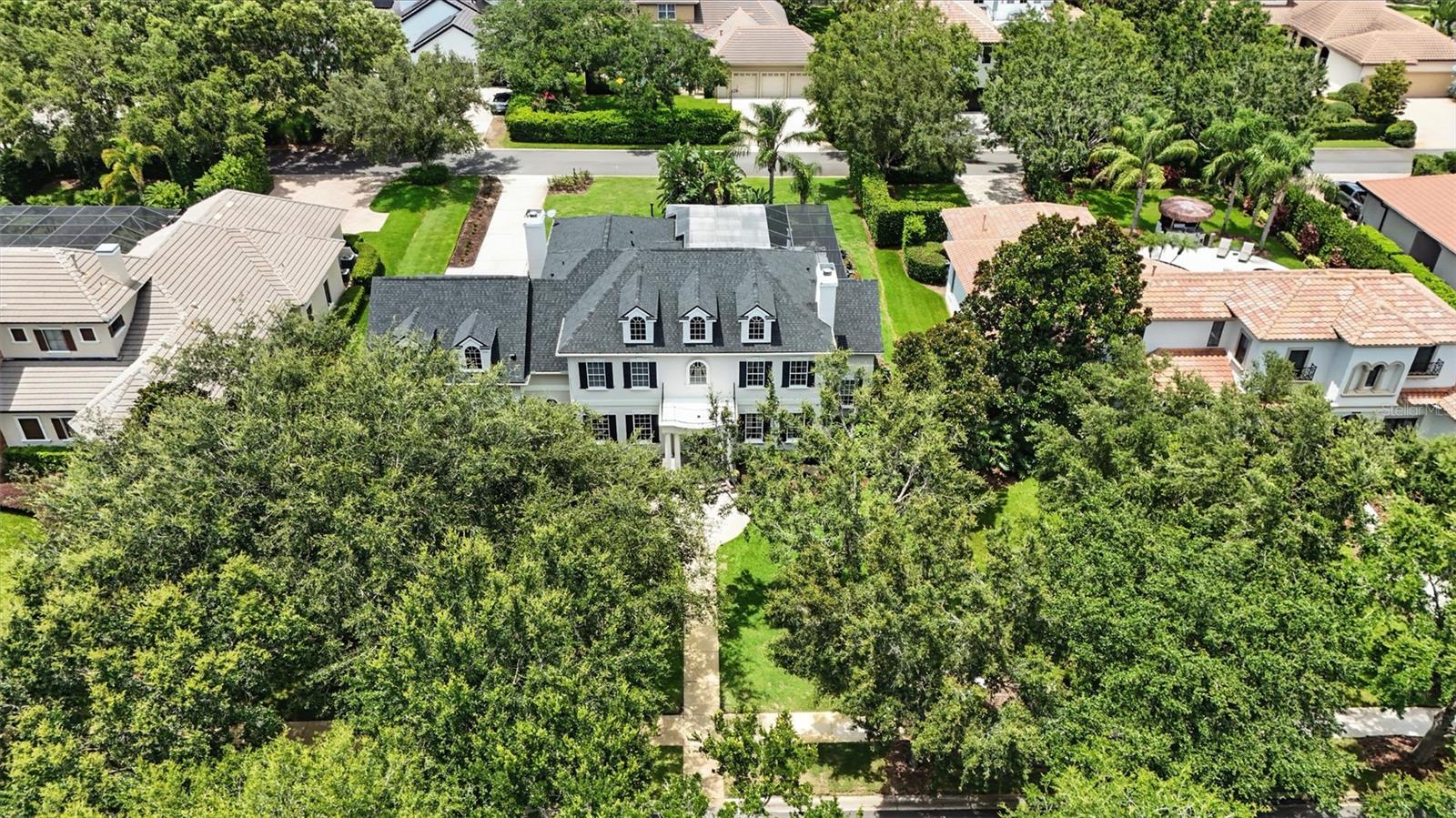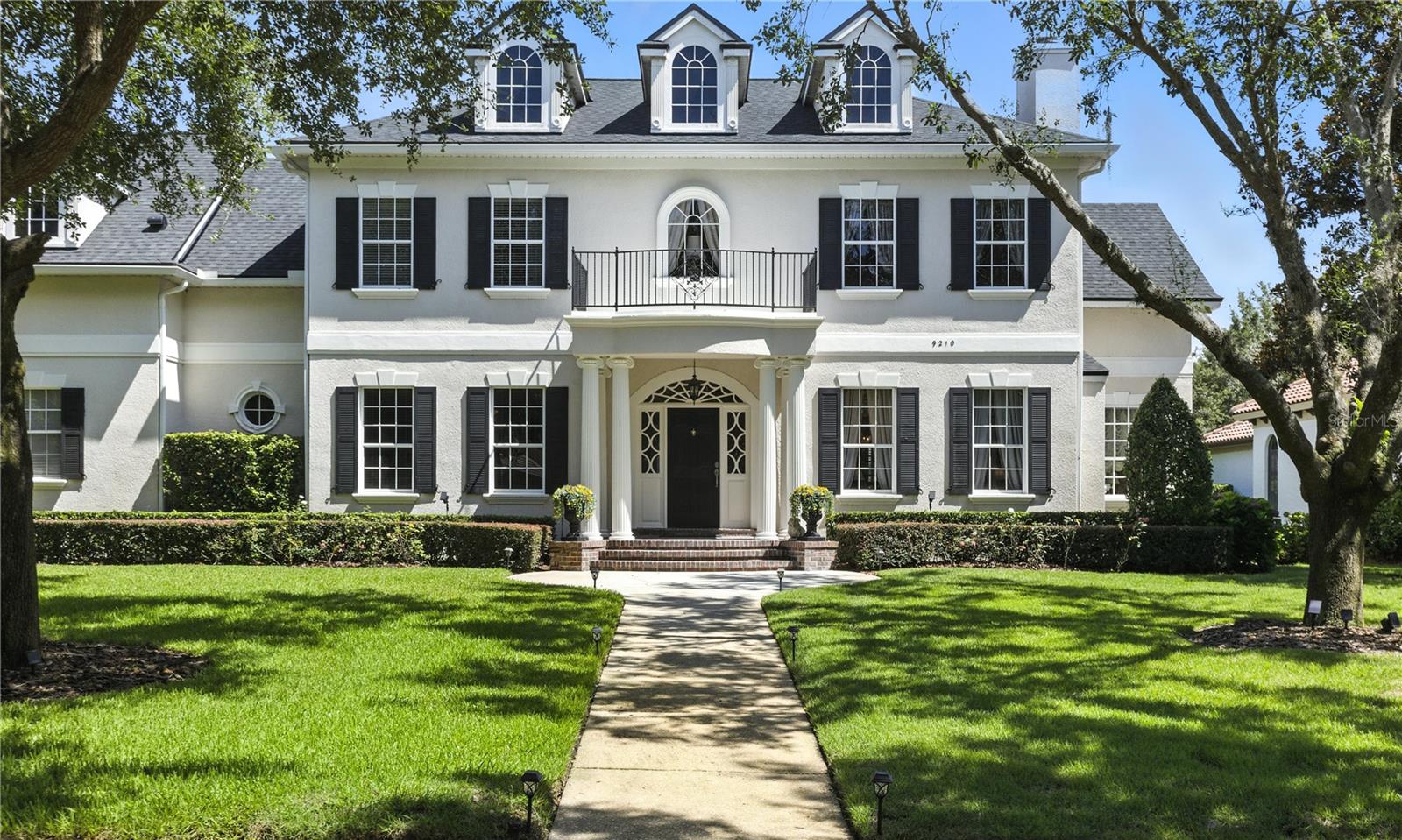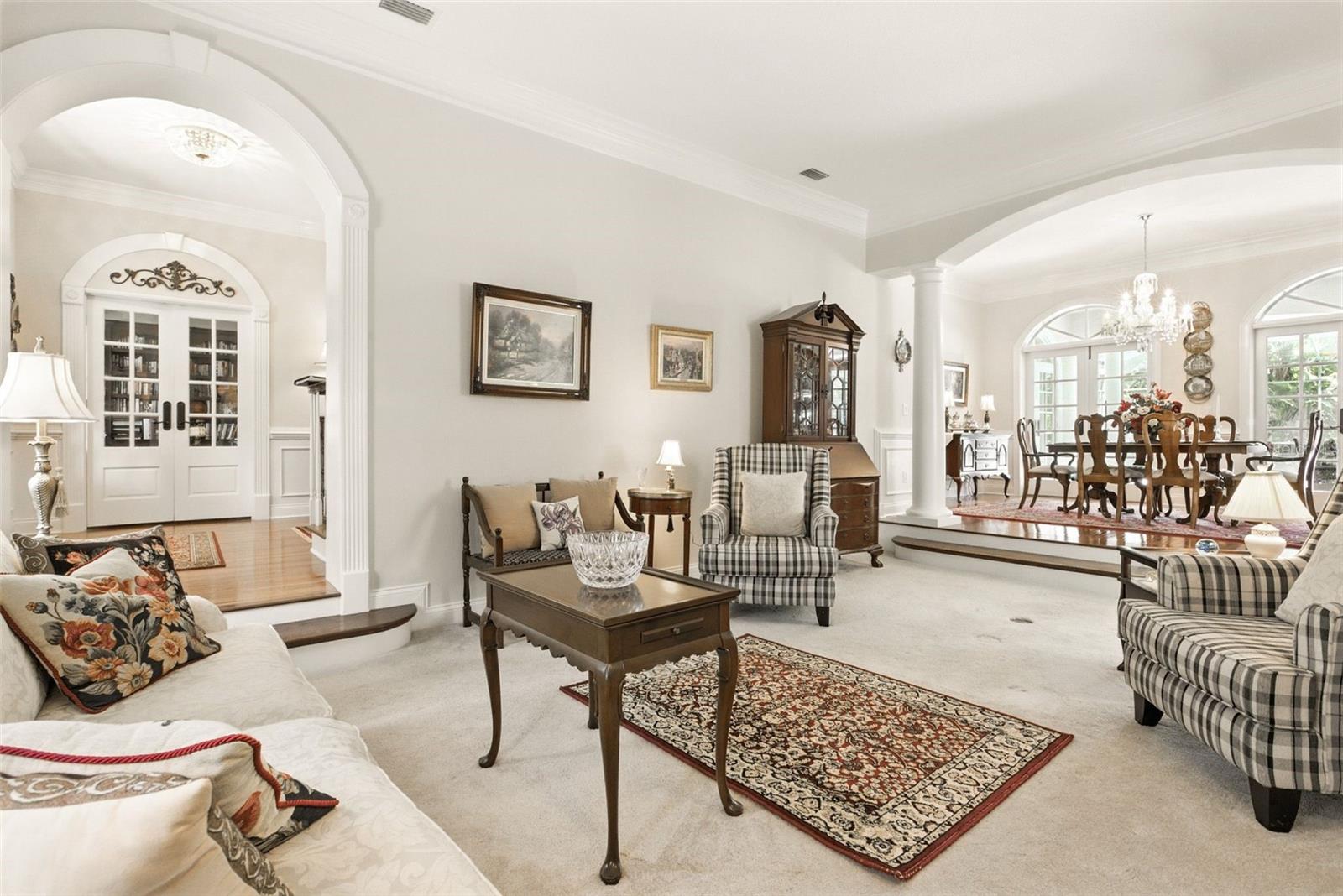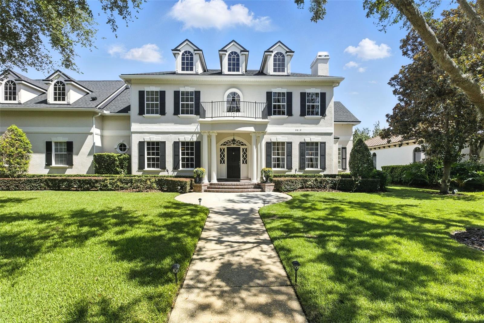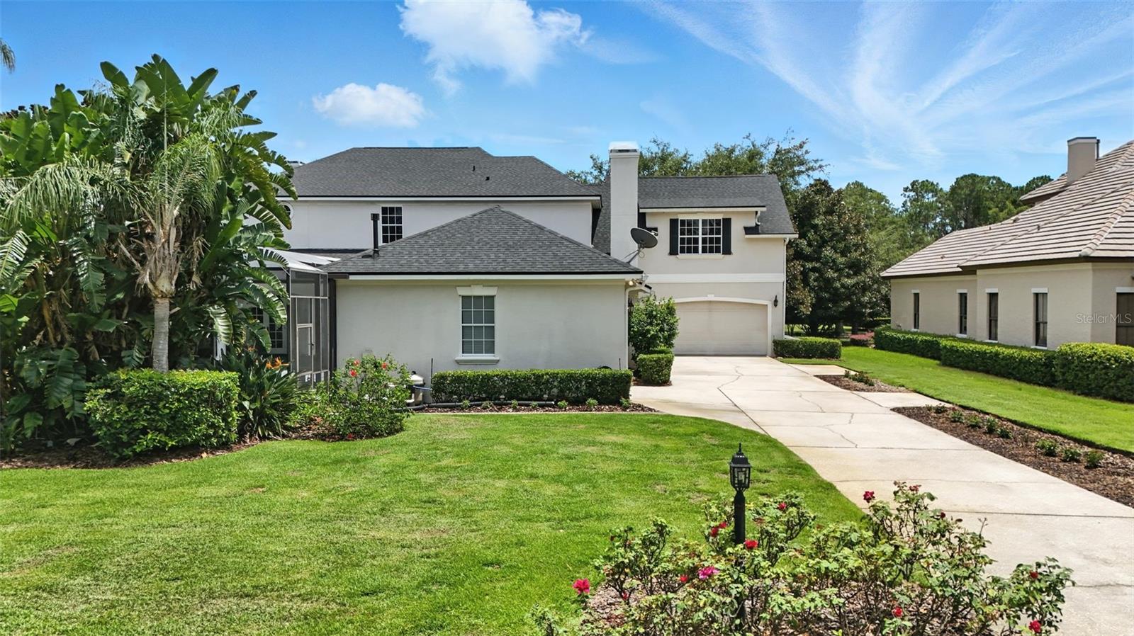 Experience the classic beauty and effortless living of this stately Southern 5-bedroom, 4.5-bathroom home designed for entertaining in the serene Northshore Village of Keene’s Pointe—a guard-gated golf and country club community. Set among lakefront estates, this traditional Georgian Colonial-style residence, built by Stonebridge Homes, sits on a generous half-acre lot and exudes grandeur from the moment you arrive. A welcoming columned front porch leads into a gracious foyer, flanked by a refined library to the left and a formal living room with fireplace to the right. Continue through to discover a stunning music room large enough for a grand piano and an elegant dining room with French doors that open to a sparkling pool oasis. Natural light pours in through Palladian windows, highlighting handcrafted woodwork, hardwood floors, and crystal chandeliers throughout. The butler’s pantry—with wine cooler and ice maker—connects seamlessly to an open kitchen that encompasses a spacious family room anchored by a brick fireplace. Nearby is the secondary staircase that leads to the upstairs media room/Pub-style Bar and the additional 4 bedrooms, while you will see the main floor guest ensuite (BR#5) located off the Family Room in its own wing for maximum privacy. A large bright breakfast area keeps everyone connected and offers direct access to the expansive screened pool and lanai. Perfect for year-round entertaining, the outdoor living space features a covered sitting area, fireplace, and mounted TV—all under roof and adjacent to the enormous pool. Upstairs, you’ll find four bedrooms including a luxurious primary retreat complete with its own fireplace, as well as a versatile media room everyone can enjoy. Additional highlights include two oversized garages—one single bay ideal for a boat or large truck, and a separate two-car garage—both accessible from the rear of the home. A rare combination of classic elegance, flexible space, and value, this home has been meticulously maintained by current original owners and a new roof installed in 2022. A recent remodel/expansion of the home added some 600 sq ft of AC living space to the original plan. Public records are currently being updated to reflect that new amount.