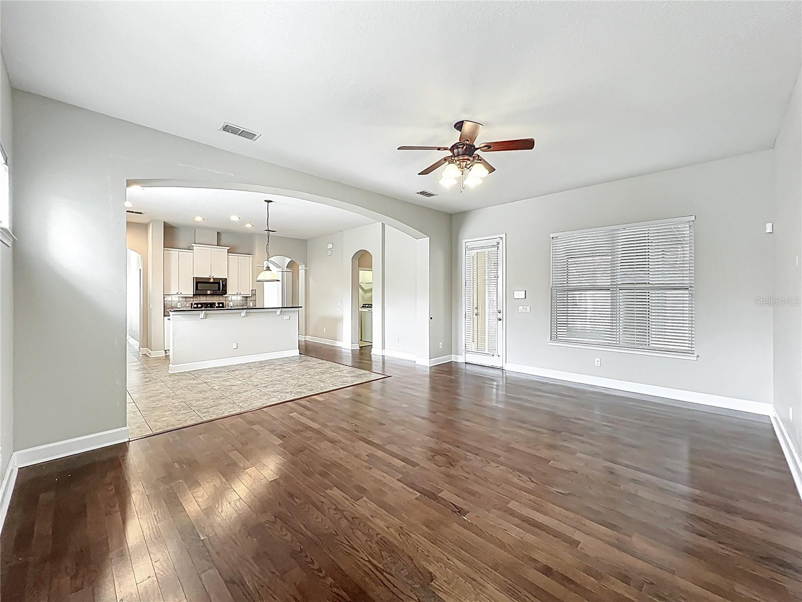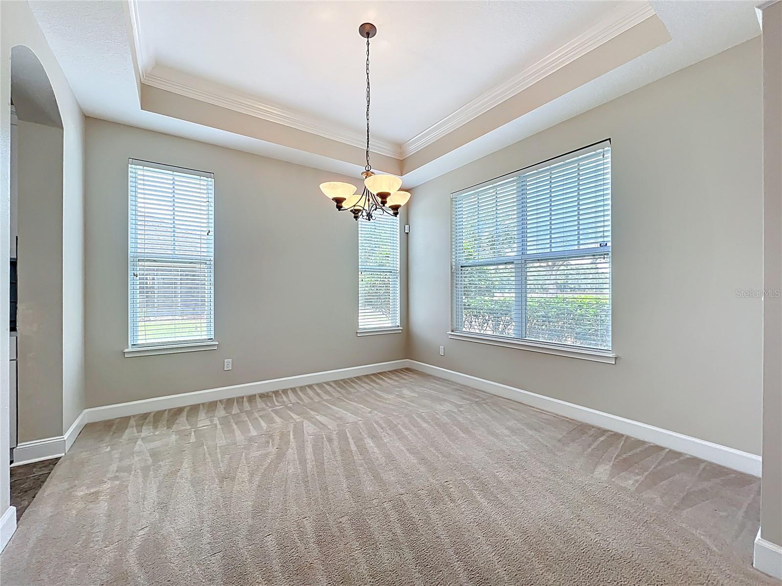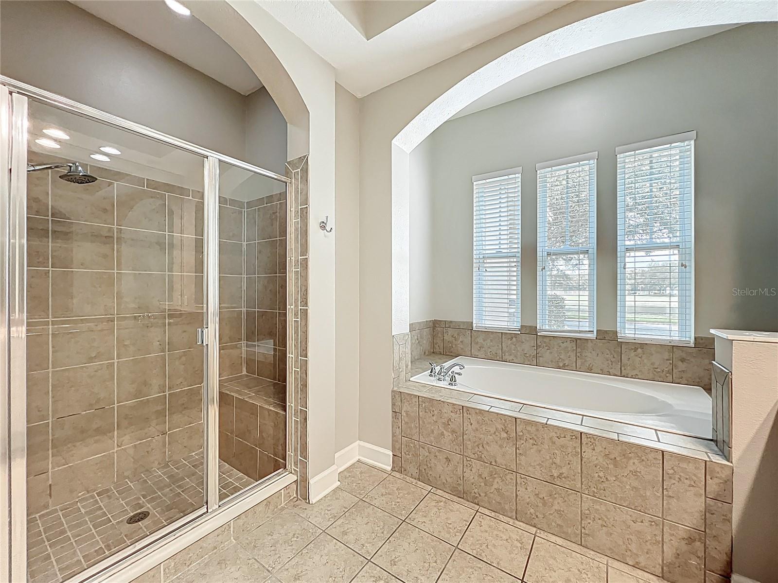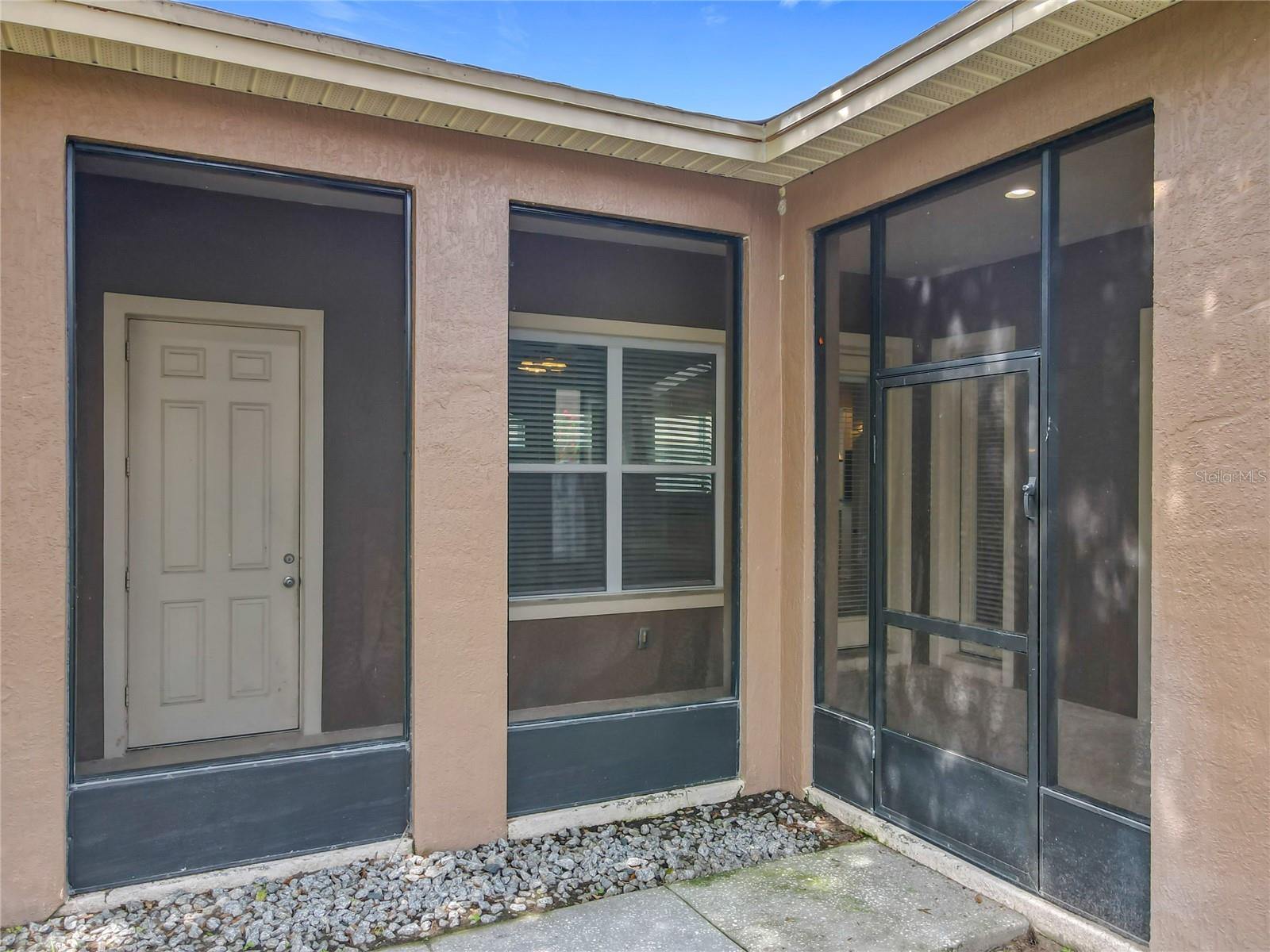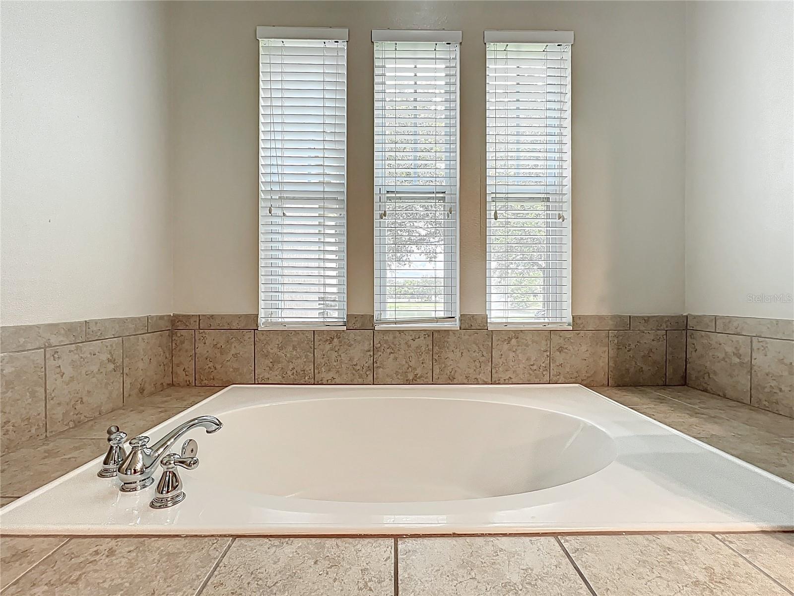 Discover this stunning 2-story, 4-bedroom, 3-bathroom home. Enjoy breathtaking views of the fountain pond from the covered front lanai, beautifully accented with stacked stone columns. Step inside to be welcomed by arched walkways, wood-paneled walls, and elegant wood laminate flooring. The home boasts a separate formal dining room with a tray ceiling across from the formal living room, creating a perfect space for entertaining. The open-concept kitchen and living room provide a warm and inviting atmosphere, featuring white crown cabinetry, black Silestone granite countertops, an island sink and bar, extended counter space, and a walk-in butlers pantry with a prep area. With ample cabinet storage and counter space galore. The black and stainless appliances include a dishwasher, microwave, and convection oven. The spacious master suite, located downstairs, features a large walk-in closet and an ensuite bathroom with double sinks, a walk-in shower, and a garden tub. Upstairs, you'll find generously sized guest bedrooms with walk-in closets and a double-sink guest bathroom. A full guest bathroom with a walk-in shower is conveniently located downstairs. The screened-in back patio, private white vinyl fencing, and a rear entrance garage. This home is loaded with extra features and is nestled in a vibrant community offering a pool, playground, tennis courts and 4 hole-putting green.