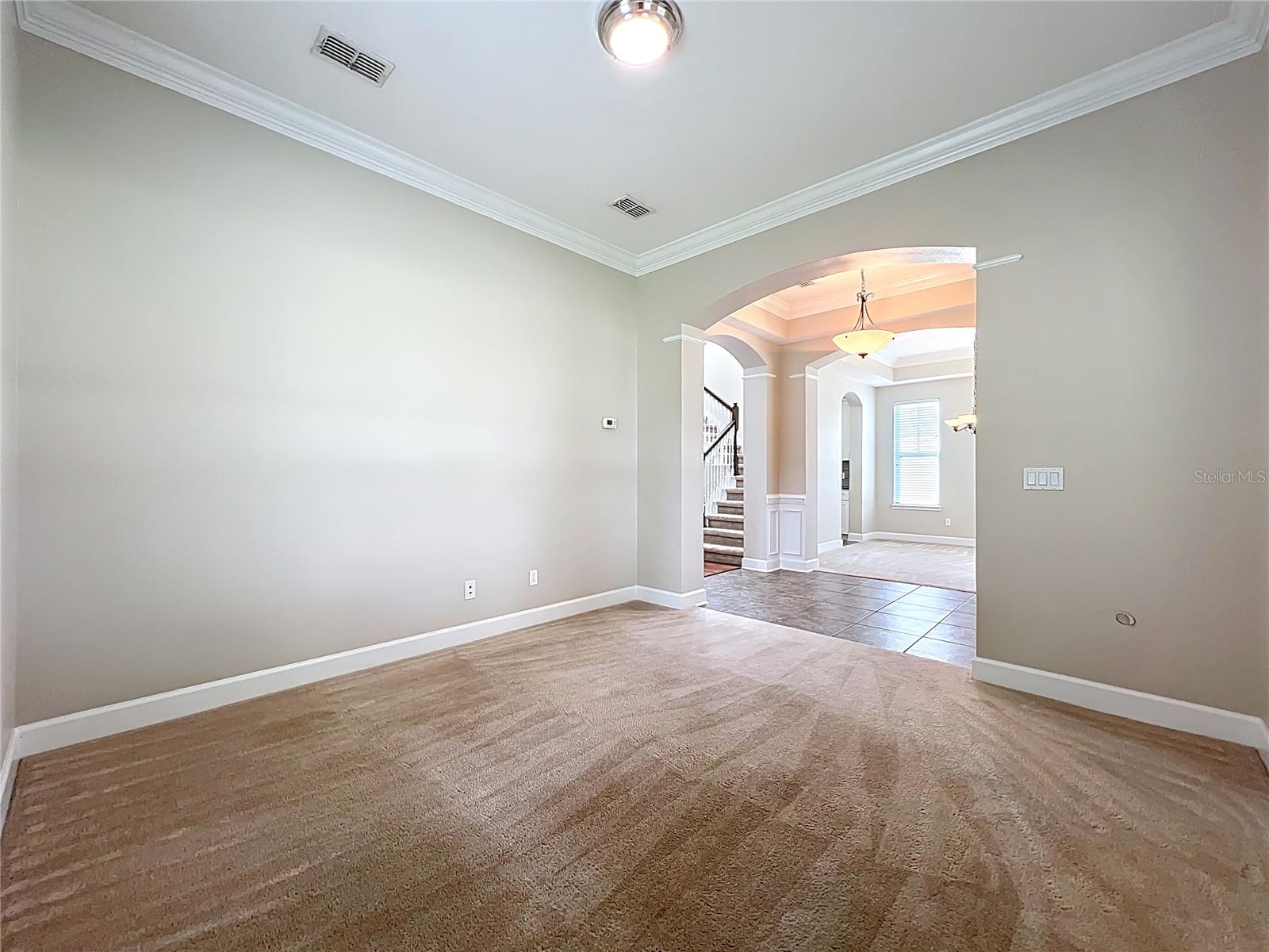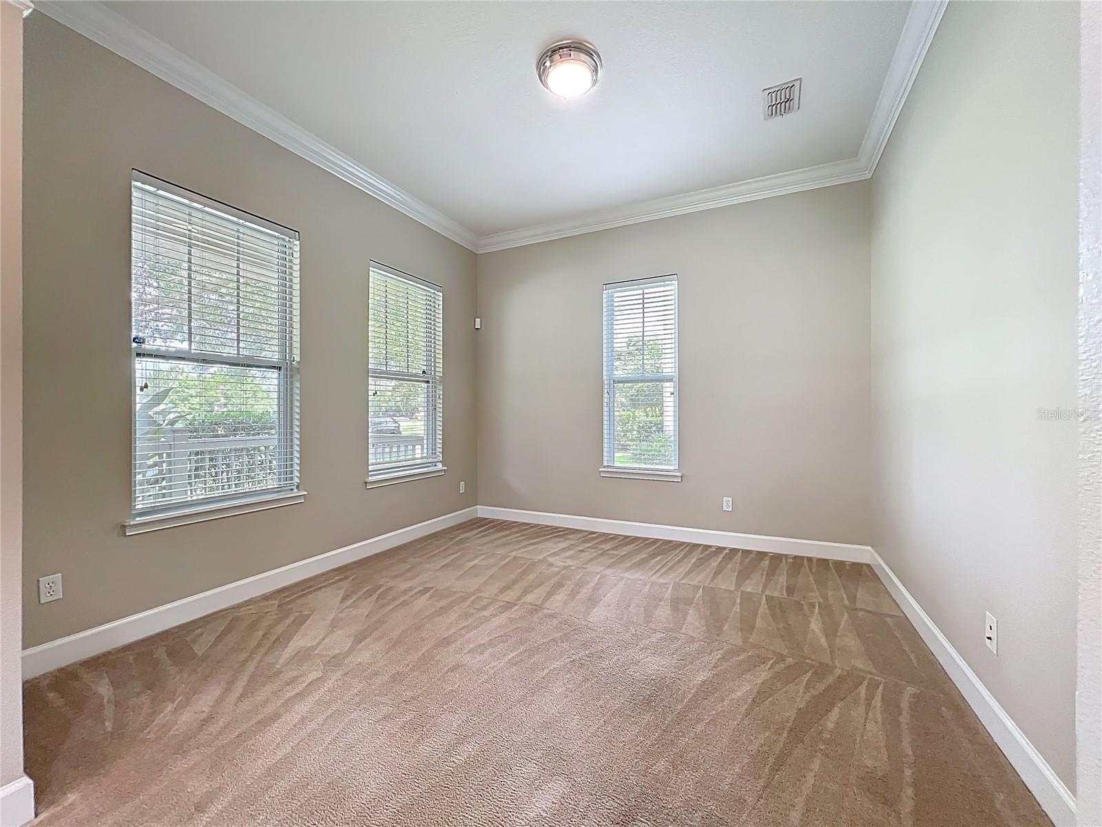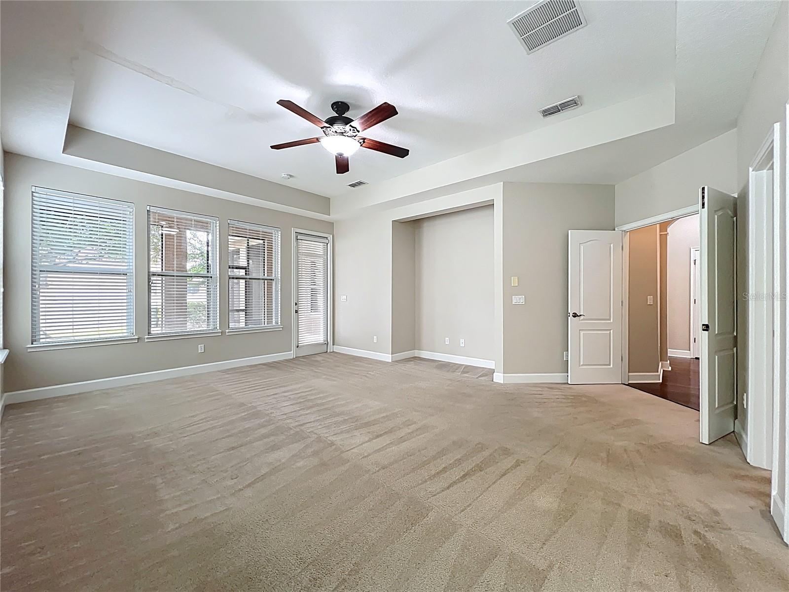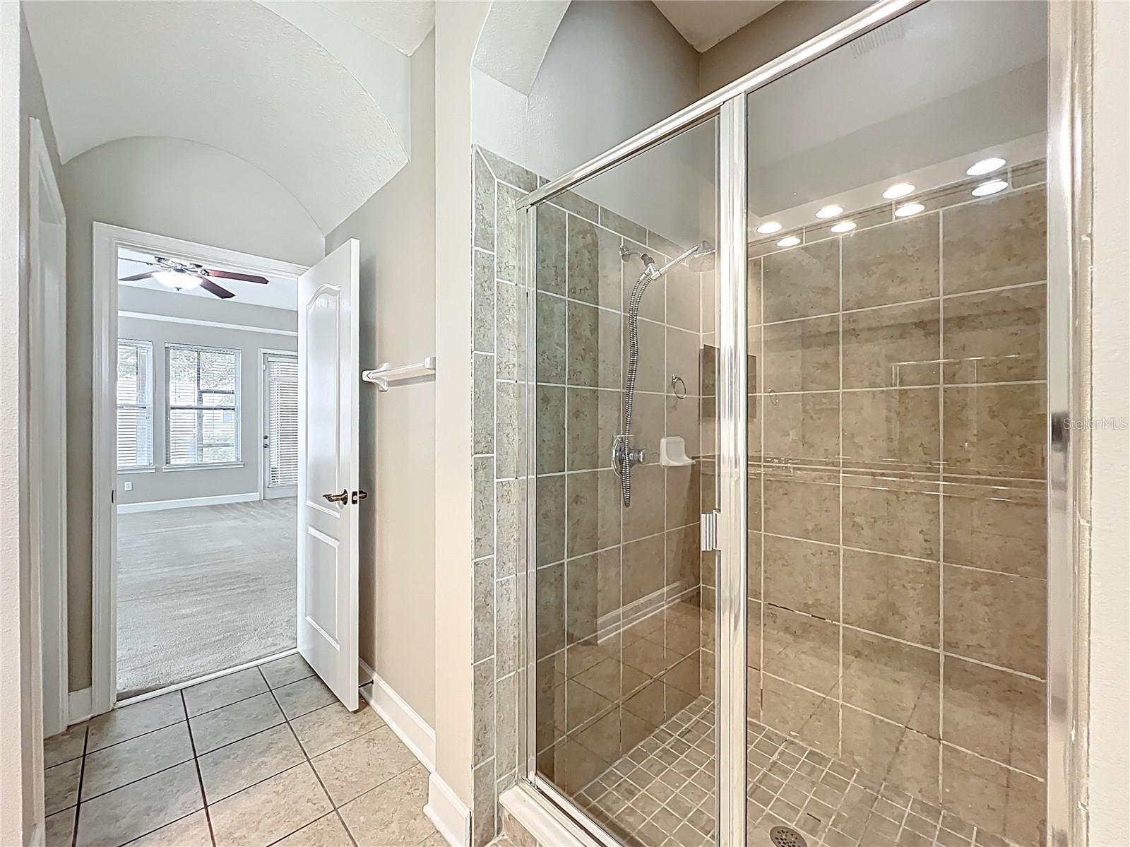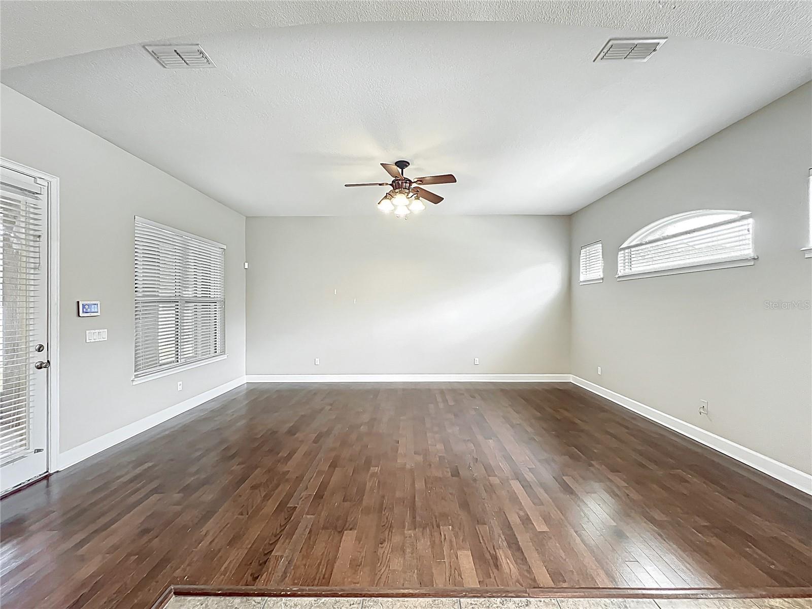 Discover this stunning 2-story, 4-bedroom, 3-bathroom home. Enjoy breathtaking views of the fountain pond from the covered front lanai, beautifully accented with stacked stone columns. Step inside to be welcomed by arched walkways, wood-paneled walls, and elegant wood laminate flooring. The home boasts a separate formal dining room with a tray ceiling across from the formal living room, creating a perfect space for entertaining. The open-concept kitchen and living room provide a warm and inviting atmosphere, featuring white crown cabinetry, black Silestone granite countertops, an island sink and bar, extended counter space, and a walk-in butlers pantry with a prep area. With ample cabinet storage and counter space galore. The black and stainless appliances include a dishwasher, microwave, and convection oven. The spacious master suite, located downstairs, features a large walk-in closet and an ensuite bathroom with double sinks, a walk-in shower, and a garden tub. Upstairs, you'll find generously sized guest bedrooms with walk-in closets and a double-sink guest bathroom. A full guest bathroom with a walk-in shower is conveniently located downstairs. The screened-in back patio, private white vinyl fencing, and a rear entrance garage. This home is loaded with extra features and is nestled in a vibrant community offering a pool, playground, tennis courts and 4 hole-putting green.