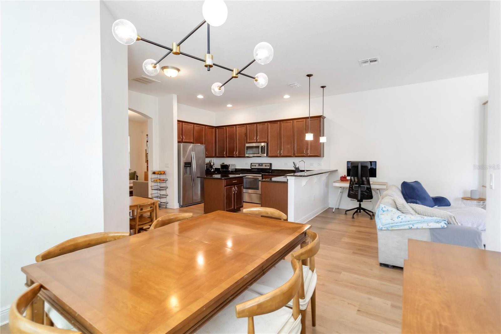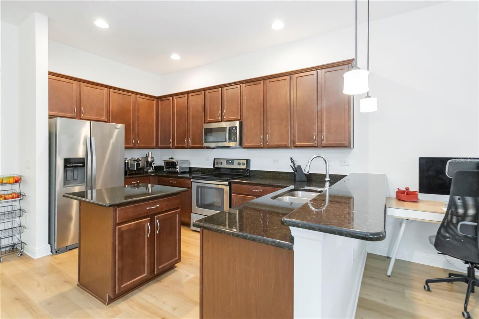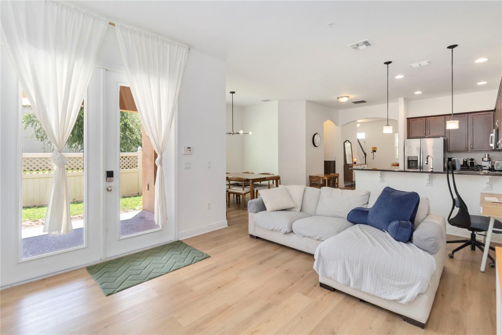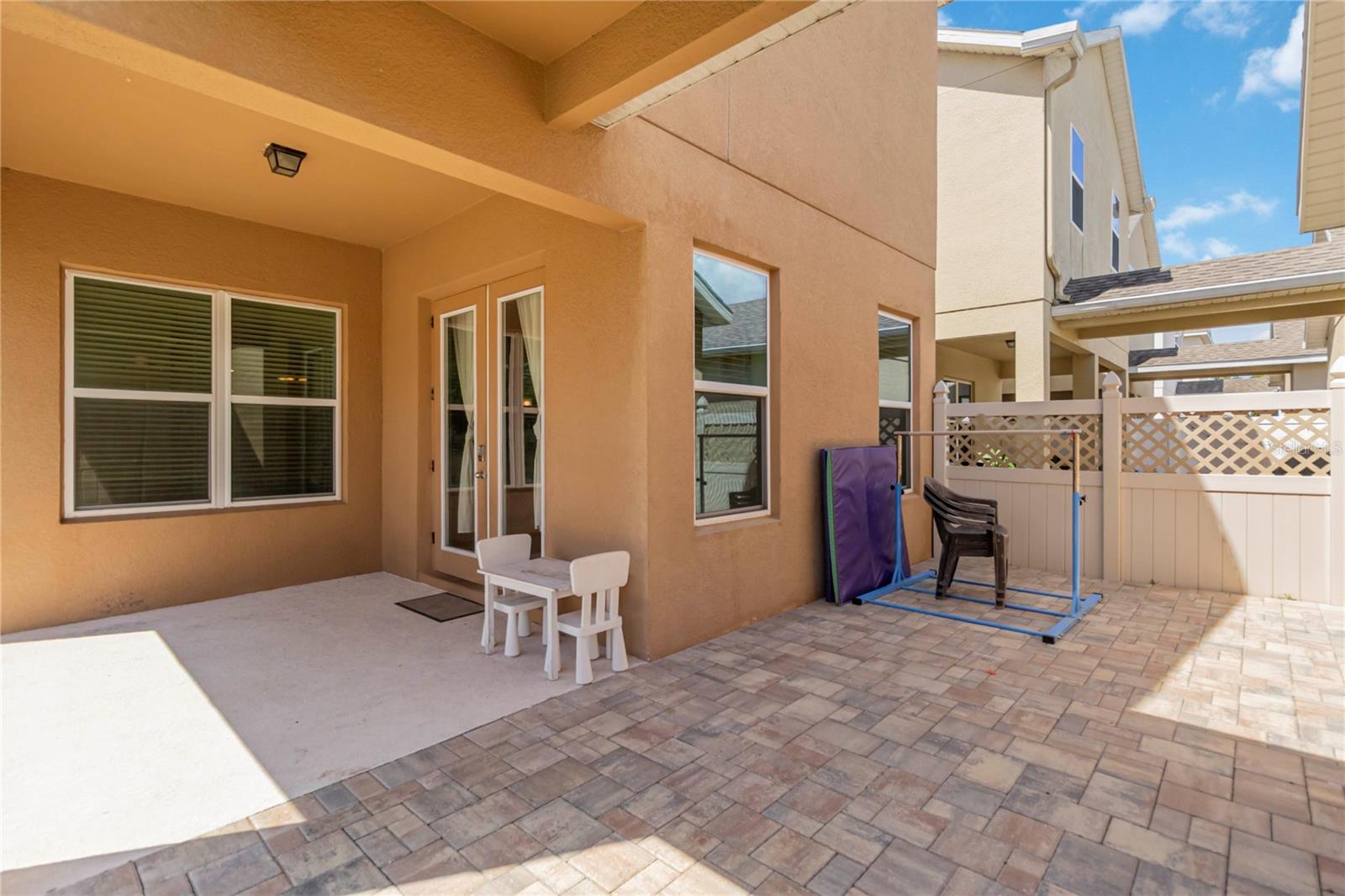 Welcome home to this impeccably maintained and move-in ready residence in Windermere Trails! Situated on a corner lot, one block from the community pool and amenities with a fenced yard, this home offers both convenience and privacy. Step inside to find updated plank flooring on the main level and fresh paint, creating a bright and inviting atmosphere. The spacious, modern floorplan seamlessly connects the living, dining, kitchen, and family rooms. The fully equipped kitchen offers SS appliances, granite counters, pantry, bar seating and island. Upstairs you'll find a primary bedroom with walk-in closet and en-suite with dual vanity and tile tub/shower combo. Two more generously sized bedrooms and a flexible media/loft space share a well appointed full bath with dual vanity. Prepare to be enchanted by the large balcony, offering amazing views of the nightly Disney fireworks. Outside, a new paver patio complements the covered rear lanai, perfect for outdoor entertaining. Enjoy the fantastic community amenities, including a clubhouse, pool, walking/jogging trails, and three playgrounds. Great location near top rated schools with easy access to all of Orlando's world class theme parks, amenities, golf, shopping and dining. Schedule a private showing and tour today!