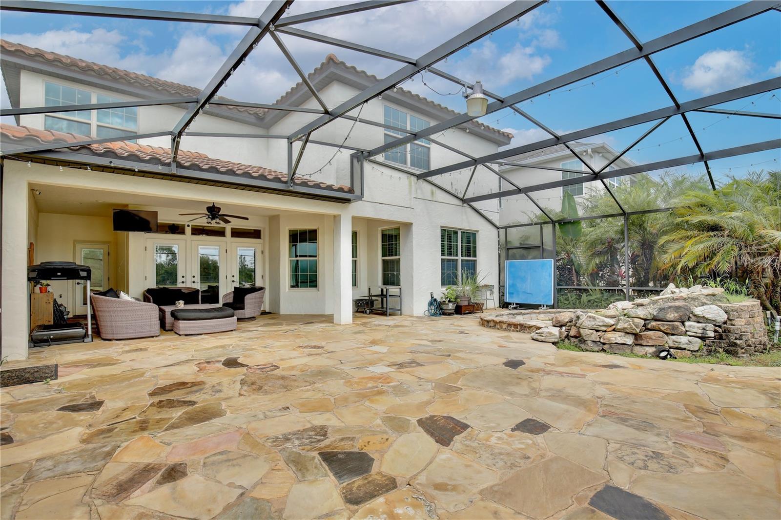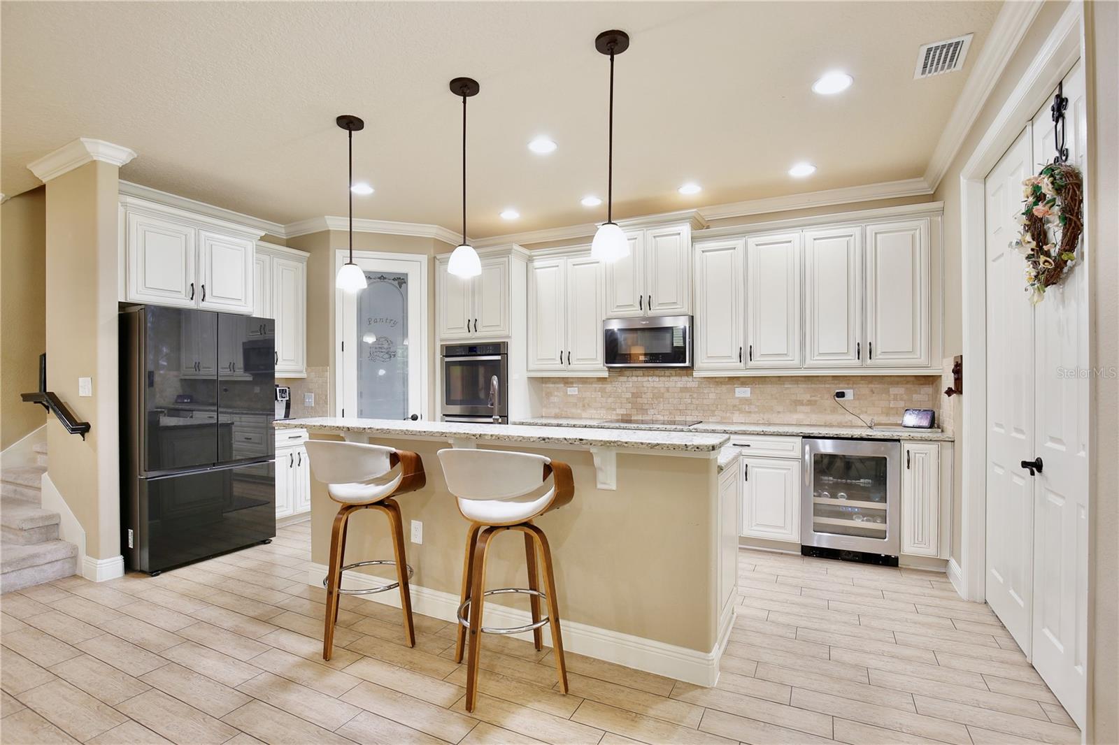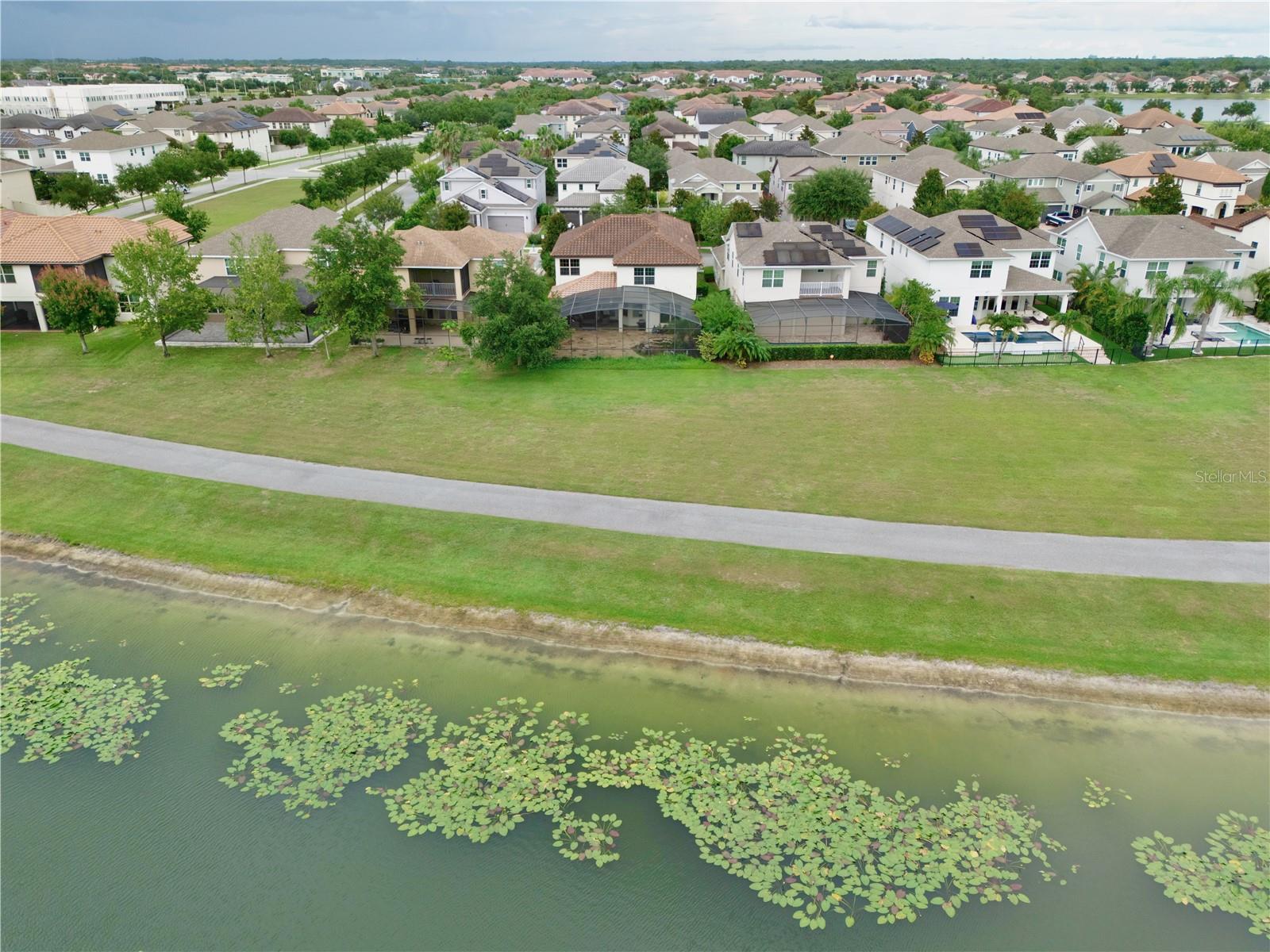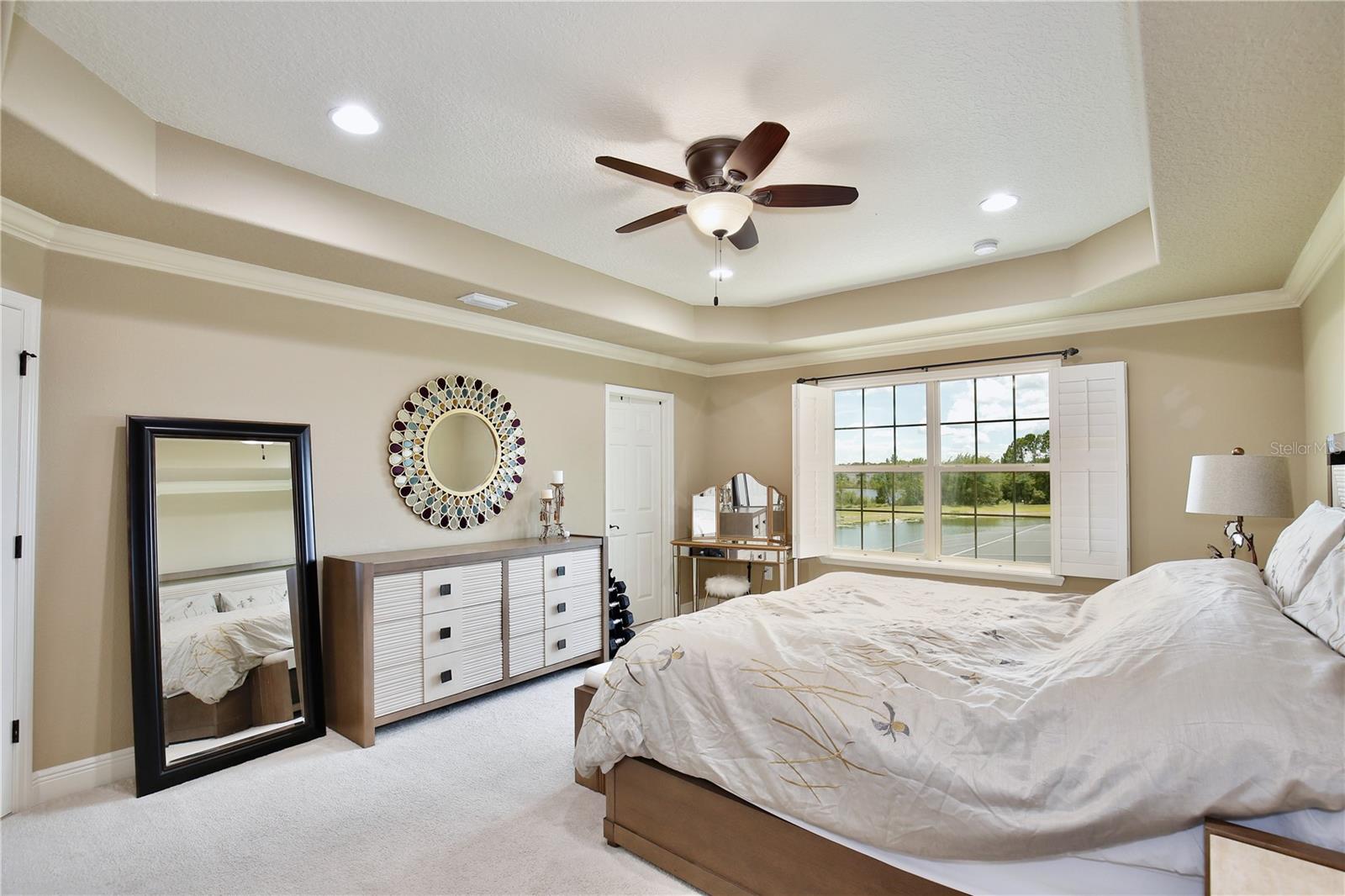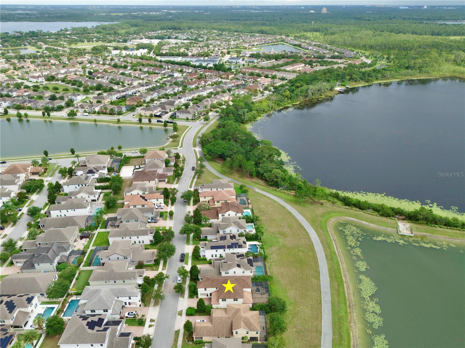 Experience the enchantment of a luxurious lifestyle with a home that offers elegance, comfort, and a touch of magic. Welcome to this breathtaking home where every day feels like a getaway, offering a serene water view right in your own backyard. This beautifully appointed Spanish style home boasts impressive curb appeal with its barrel tile roof, paver driveway, and a two car garage. As you approach, the covered front porch and landscaping adorned with palm trees invite you home. Inside, the home unfolds with a beautiful foyer featuring elegant tray ceilings, arched walkways, and neutral colors that set a serene tone. Entertain guests in the dining room, crowned by a chandelier and accented with plantation shutters over frosted privacy windows, and conduct business in the front office with its double door entry and crown molding. The living room and breakfast nook has tranquil water vistas, creating a relaxing atmosphere along with wood-style flooring and glass doors leading out to the lanai, featuring stone flooring and an opulent fountain. The lanai also has access to the living room’s half bath. The gourmet kitchen is a chef's delight featuring shaker cabinets, stainless steel appliances, granite counters, a pantry closet, and bar top seating at the center island. Enjoy the convenience of a wine fridge and built in double ovens, while the bonus room with a double door entry provides additional space for your needs (currently utilized as a cake decorating room). Upstairs, awake to water views in the spacious primary suite with tray ceilings and two walk in closets. The sumptuous bath with dual sinks and a glass door shower provide a relaxing retreat. The giant bonus room (currently utilized as a bedroom) is ideal for a home theatre or game room. Two guest bedrooms share a Jack and Jill bath with dual vanities and a private tub/shower combo. The final bedroom conveniently sits alongside a well appointed bath with a glass door shower. The laundry room offers cabinet storage, a sink, and counter space for easy folding. Host unforgettable gatherings and barbecues on the outdoor patio, set against a backdrop of the stunning stone waterfall, water views, and the mesmerizing Disney fireworks. With a running track behind the home leading to the amenities, residents can enjoy access to a community pool with a splash pad and playground. Perfectly nestled between the Tibet-Butler Nature Preserve and Disney World, this location offers a blend of nature and wonder. Hit the putting green at nearby golf courses, enjoy quick convenience to nearby shopping and dining, and catch some thrills with close proximity to all the major theme parks. You’ll also be right near Bay Lake Elementary, Star Child Academy, hiking trails and butterfly gardens, making this a wonderfully serene location to settle down. View the 3D tour and schedule a showing to witness this dream home in person!