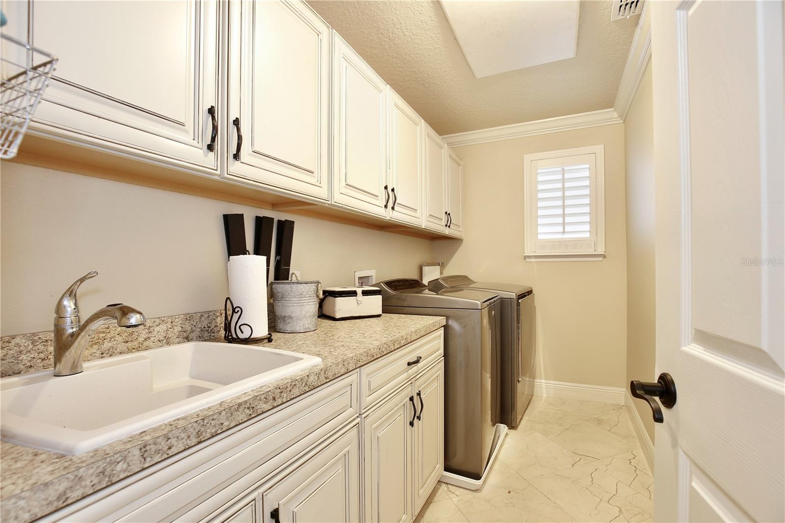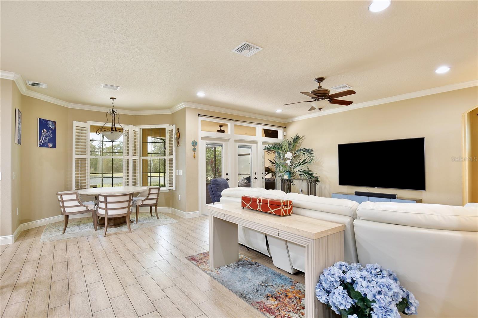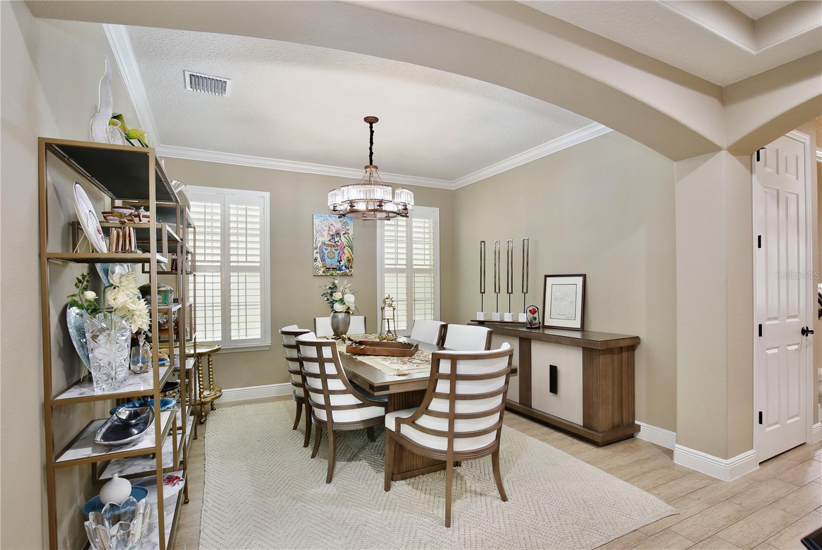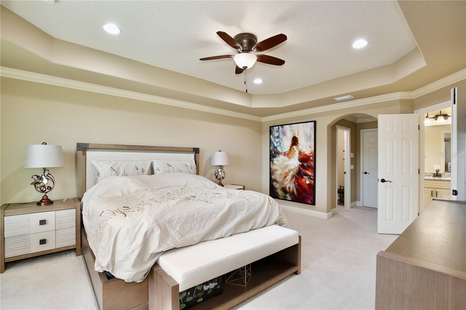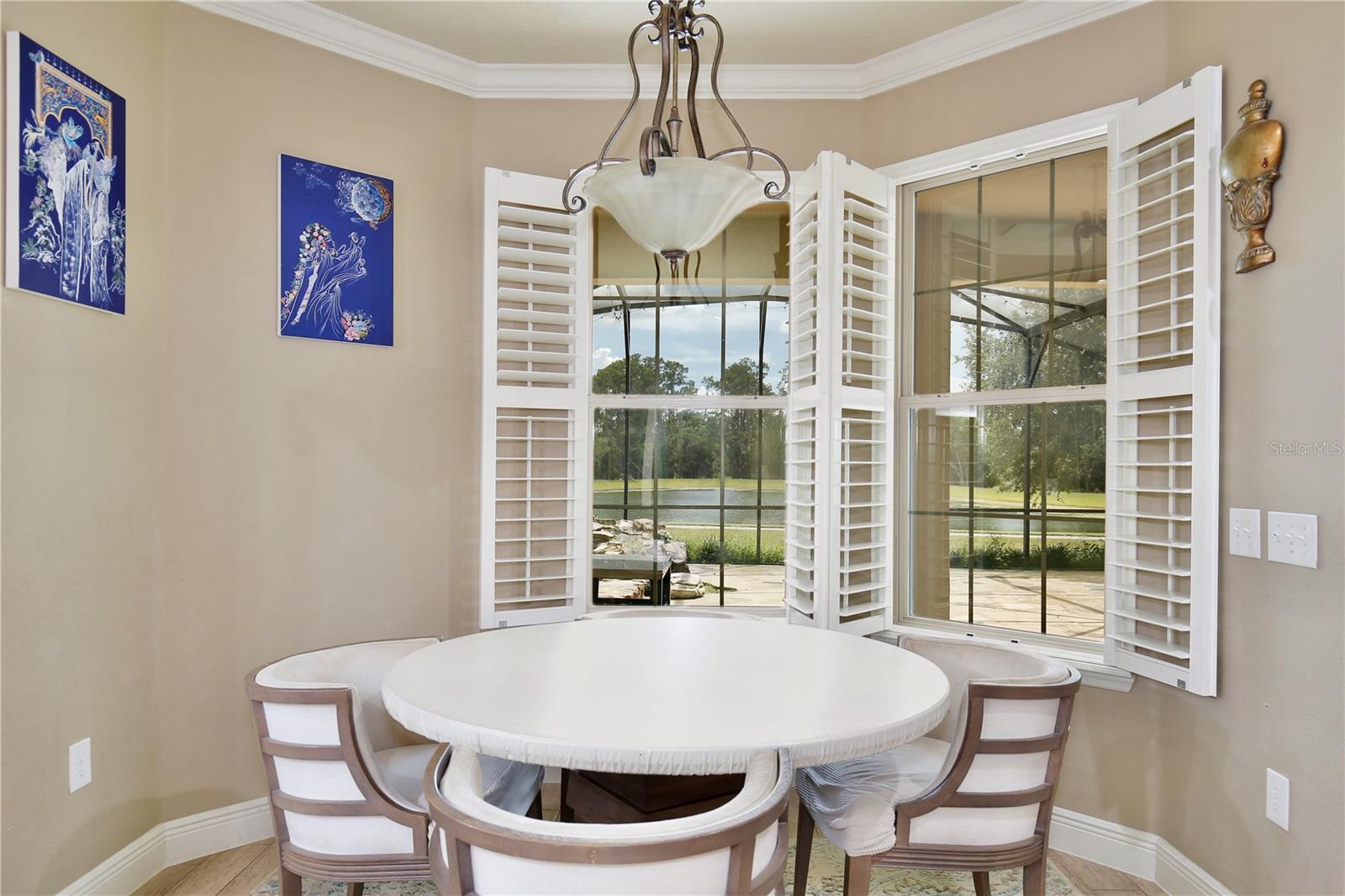 Experience the enchantment of a luxurious lifestyle with a home that offers elegance, comfort, and a touch of magic. Welcome to this breathtaking home where every day feels like a getaway, offering a serene water view right in your own backyard. This beautifully appointed Spanish style home boasts impressive curb appeal with its barrel tile roof, paver driveway, and a two car garage. As you approach, the covered front porch and landscaping adorned with palm trees invite you home. Inside, the home unfolds with a beautiful foyer featuring elegant tray ceilings, arched walkways, and neutral colors that set a serene tone. Entertain guests in the dining room, crowned by a chandelier and accented with plantation shutters over frosted privacy windows, and conduct business in the front office with its double door entry and crown molding. The living room and breakfast nook has tranquil water vistas, creating a relaxing atmosphere along with wood-style flooring and glass doors leading out to the lanai, featuring stone flooring and an opulent fountain. The lanai also has access to the living room’s half bath. The gourmet kitchen is a chef's delight featuring shaker cabinets, stainless steel appliances, granite counters, a pantry closet, and bar top seating at the center island. Enjoy the convenience of a wine fridge and built in double ovens, while the bonus room with a double door entry provides additional space for your needs (currently utilized as a cake decorating room). Upstairs, awake to water views in the spacious primary suite with tray ceilings and two walk in closets. The sumptuous bath with dual sinks and a glass door shower provide a relaxing retreat. The giant bonus room (currently utilized as a bedroom) is ideal for a home theatre or game room. Two guest bedrooms share a Jack and Jill bath with dual vanities and a private tub/shower combo. The final bedroom conveniently sits alongside a well appointed bath with a glass door shower. The laundry room offers cabinet storage, a sink, and counter space for easy folding. Host unforgettable gatherings and barbecues on the outdoor patio, set against a backdrop of the stunning stone waterfall, water views, and the mesmerizing Disney fireworks. With a running track behind the home leading to the amenities, residents can enjoy access to a community pool with a splash pad and playground. Perfectly nestled between the Tibet-Butler Nature Preserve and Disney World, this location offers a blend of nature and wonder. Hit the putting green at nearby golf courses, enjoy quick convenience to nearby shopping and dining, and catch some thrills with close proximity to all the major theme parks. You’ll also be right near Bay Lake Elementary, Star Child Academy, hiking trails and butterfly gardens, making this a wonderfully serene location to settle down. View the 3D tour and schedule a showing to witness this dream home in person!