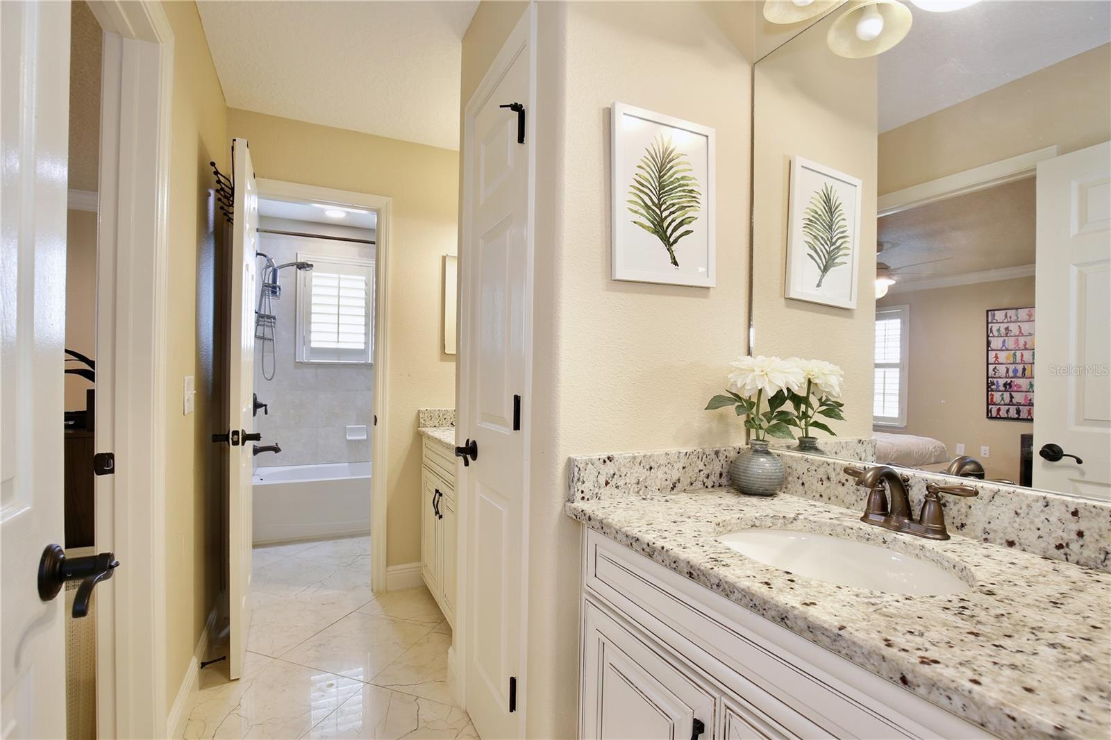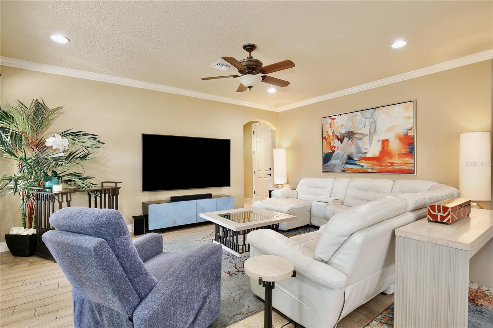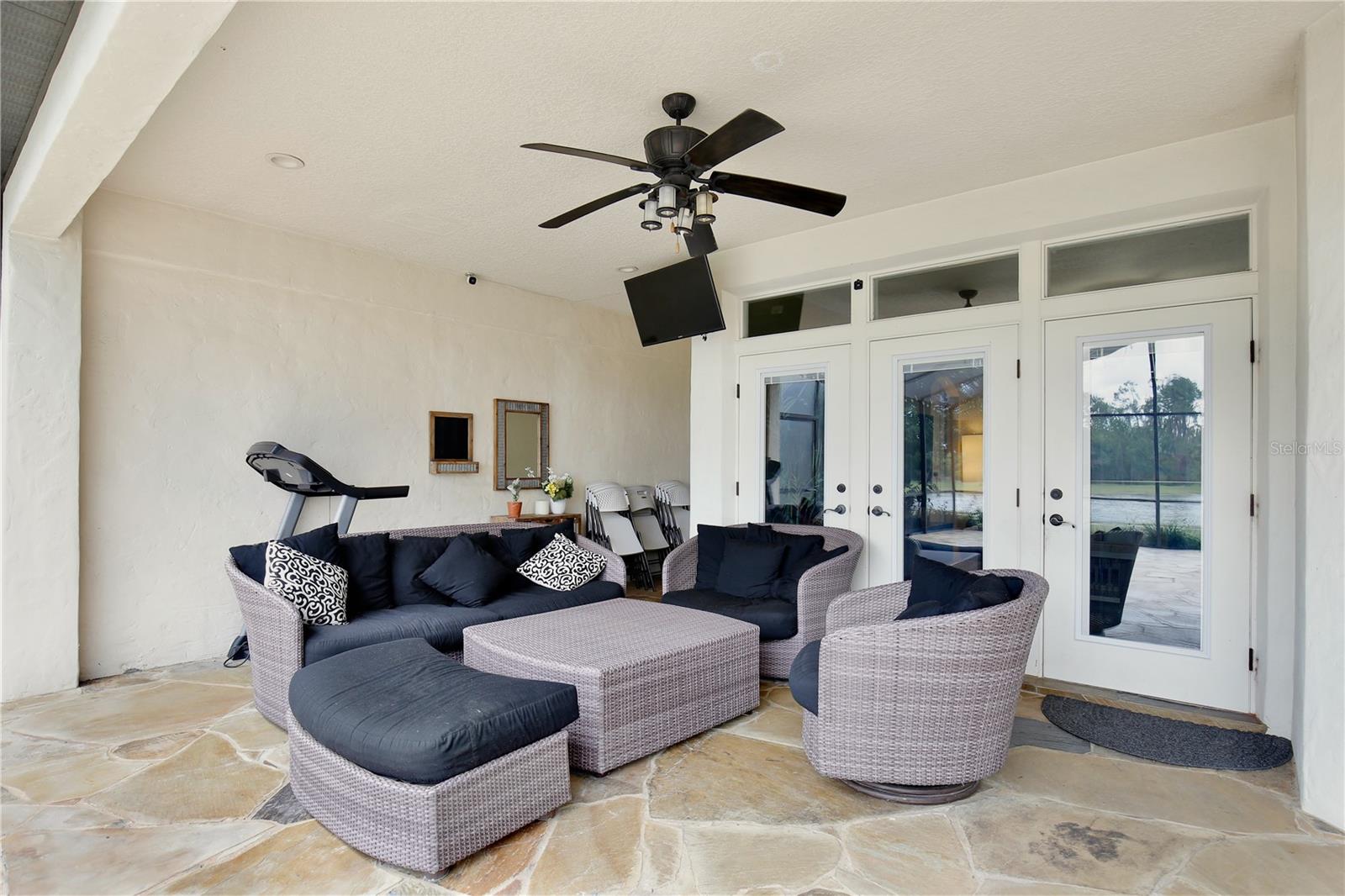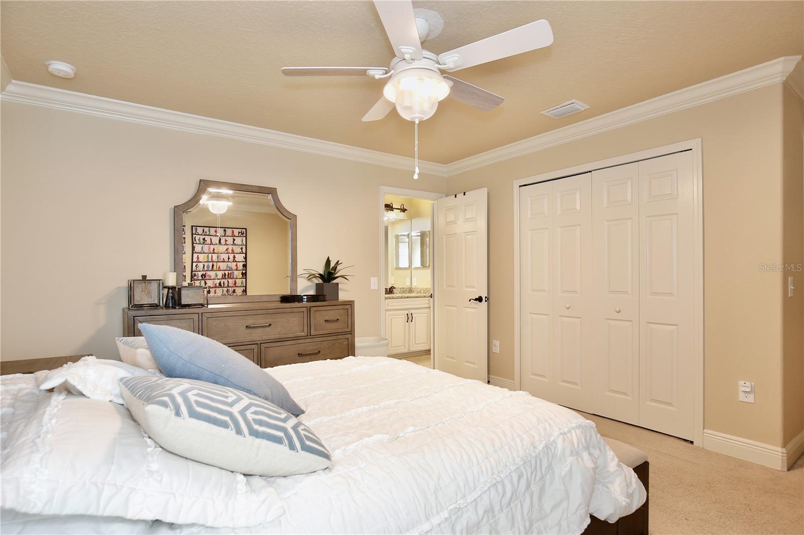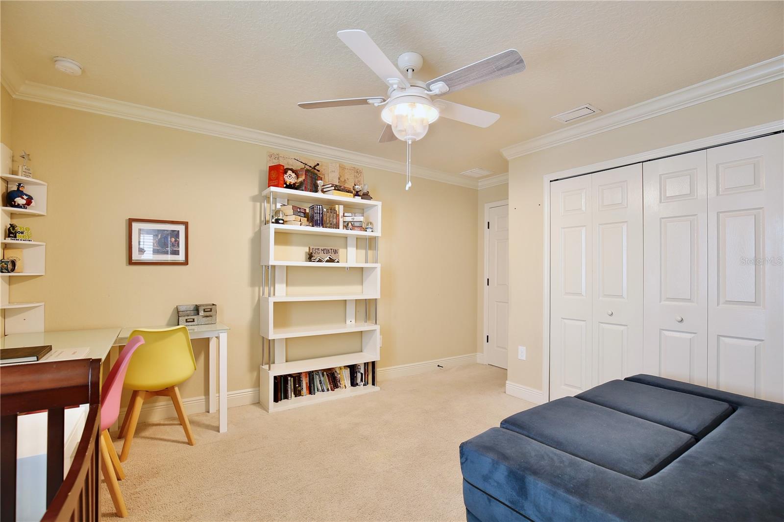 Experience the enchantment of a luxurious lifestyle with a home that offers elegance, comfort, and a touch of magic. Welcome to this breathtaking home where every day feels like a getaway, offering a serene water view right in your own backyard. This beautifully appointed Spanish style home boasts impressive curb appeal with its barrel tile roof, paver driveway, and a two car garage. As you approach, the covered front porch and landscaping adorned with palm trees invite you home. Inside, the home unfolds with a beautiful foyer featuring elegant tray ceilings, arched walkways, and neutral colors that set a serene tone. Entertain guests in the dining room, crowned by a chandelier and accented with plantation shutters over frosted privacy windows, and conduct business in the front office with its double door entry and crown molding. The living room and breakfast nook has tranquil water vistas, creating a relaxing atmosphere along with wood-style flooring and glass doors leading out to the lanai, featuring stone flooring and an opulent fountain. The lanai also has access to the living room’s half bath. The gourmet kitchen is a chef's delight featuring shaker cabinets, stainless steel appliances, granite counters, a pantry closet, and bar top seating at the center island. Enjoy the convenience of a wine fridge and built in double ovens, while the bonus room with a double door entry provides additional space for your needs (currently utilized as a cake decorating room). Upstairs, awake to water views in the spacious primary suite with tray ceilings and two walk in closets. The sumptuous bath with dual sinks and a glass door shower provide a relaxing retreat. The giant bonus room (currently utilized as a bedroom) is ideal for a home theatre or game room. Two guest bedrooms share a Jack and Jill bath with dual vanities and a private tub/shower combo. The final bedroom conveniently sits alongside a well appointed bath with a glass door shower. The laundry room offers cabinet storage, a sink, and counter space for easy folding. Host unforgettable gatherings and barbecues on the outdoor patio, set against a backdrop of the stunning stone waterfall, water views, and the mesmerizing Disney fireworks. With a running track behind the home leading to the amenities, residents can enjoy access to a community pool with a splash pad and playground. Perfectly nestled between the Tibet-Butler Nature Preserve and Disney World, this location offers a blend of nature and wonder. Hit the putting green at nearby golf courses, enjoy quick convenience to nearby shopping and dining, and catch some thrills with close proximity to all the major theme parks. You’ll also be right near Bay Lake Elementary, Star Child Academy, hiking trails and butterfly gardens, making this a wonderfully serene location to settle down. View the 3D tour and schedule a showing to witness this dream home in person!