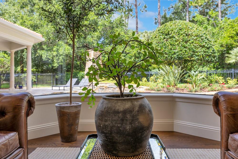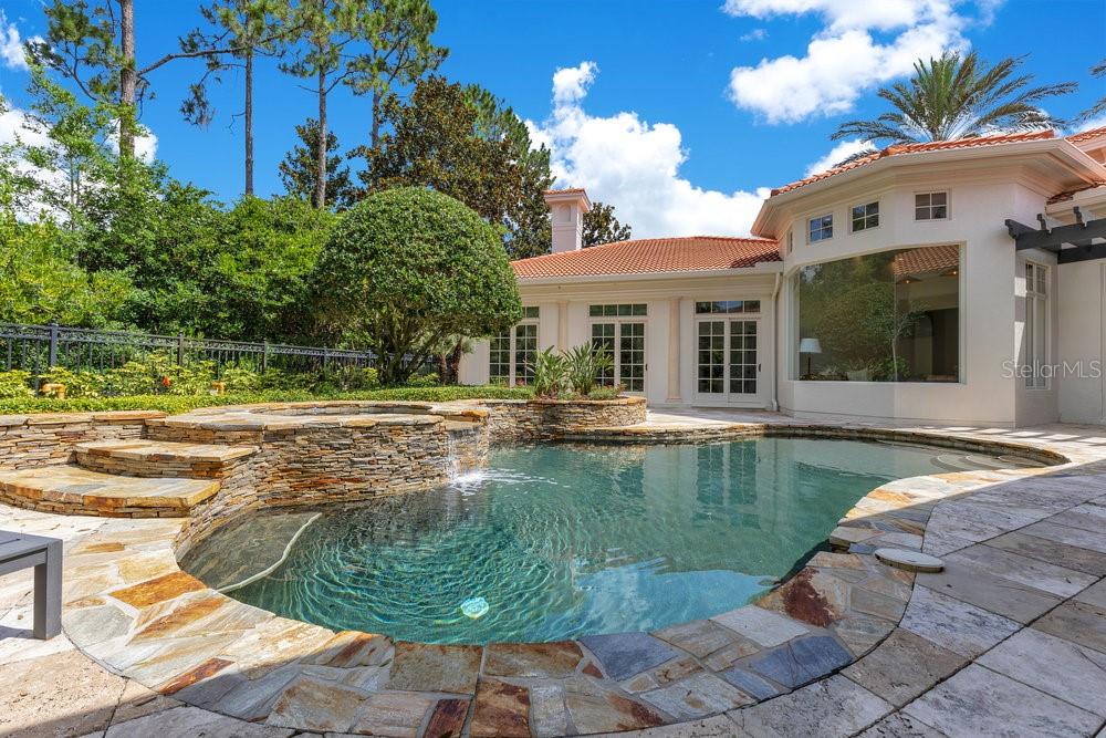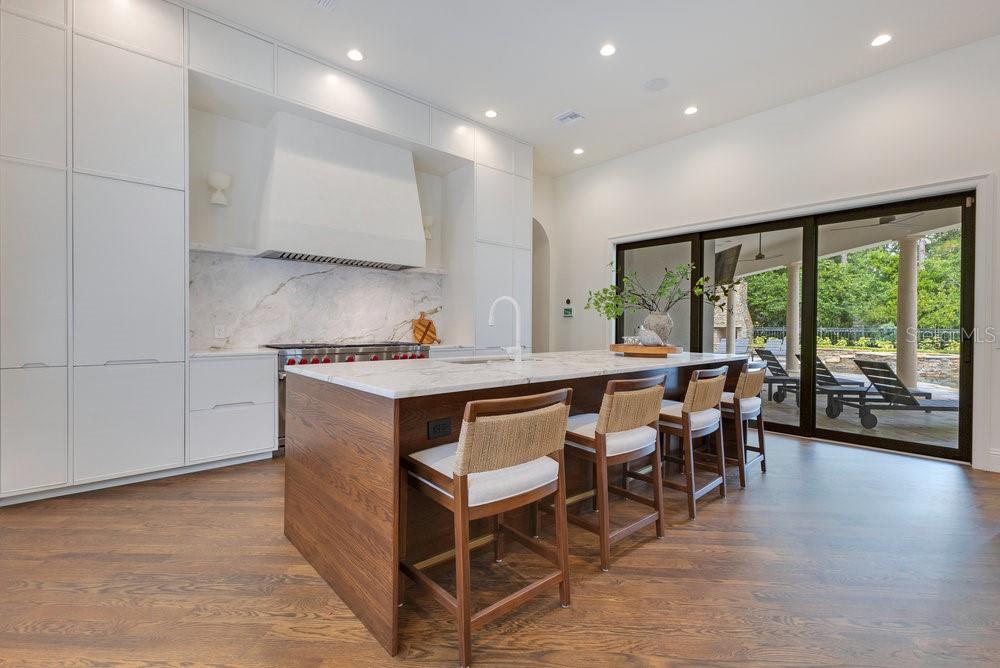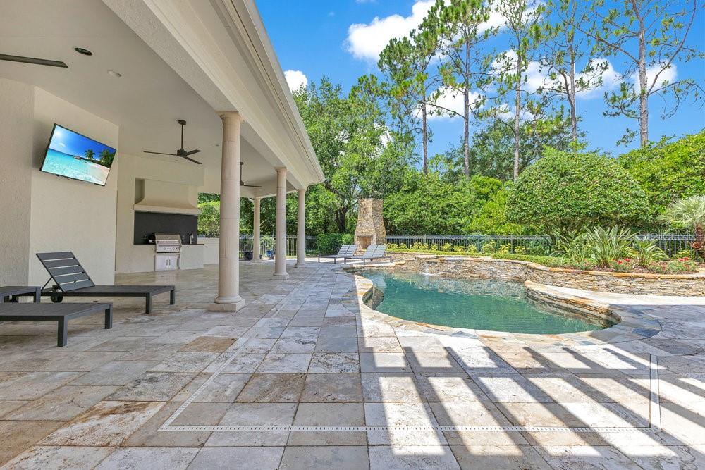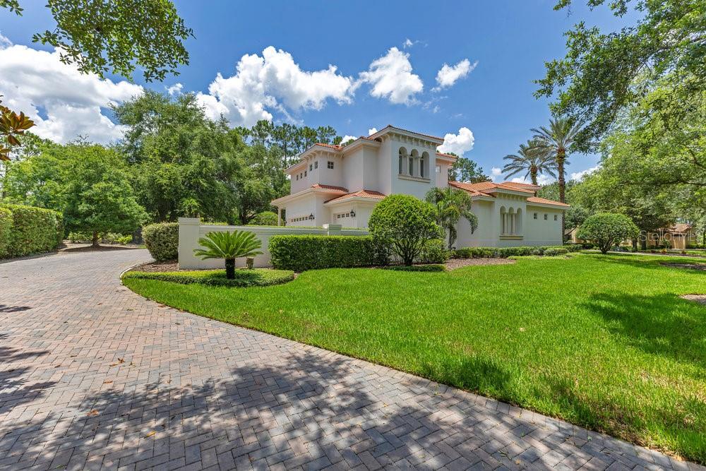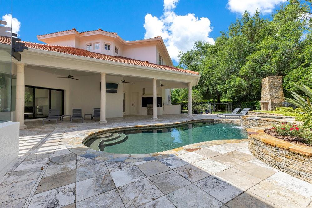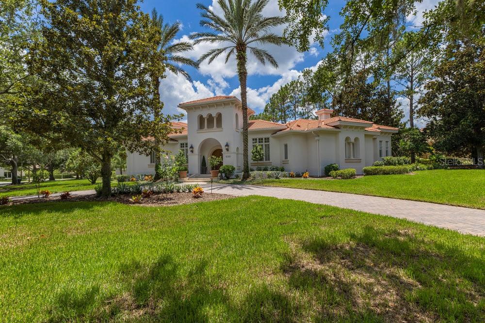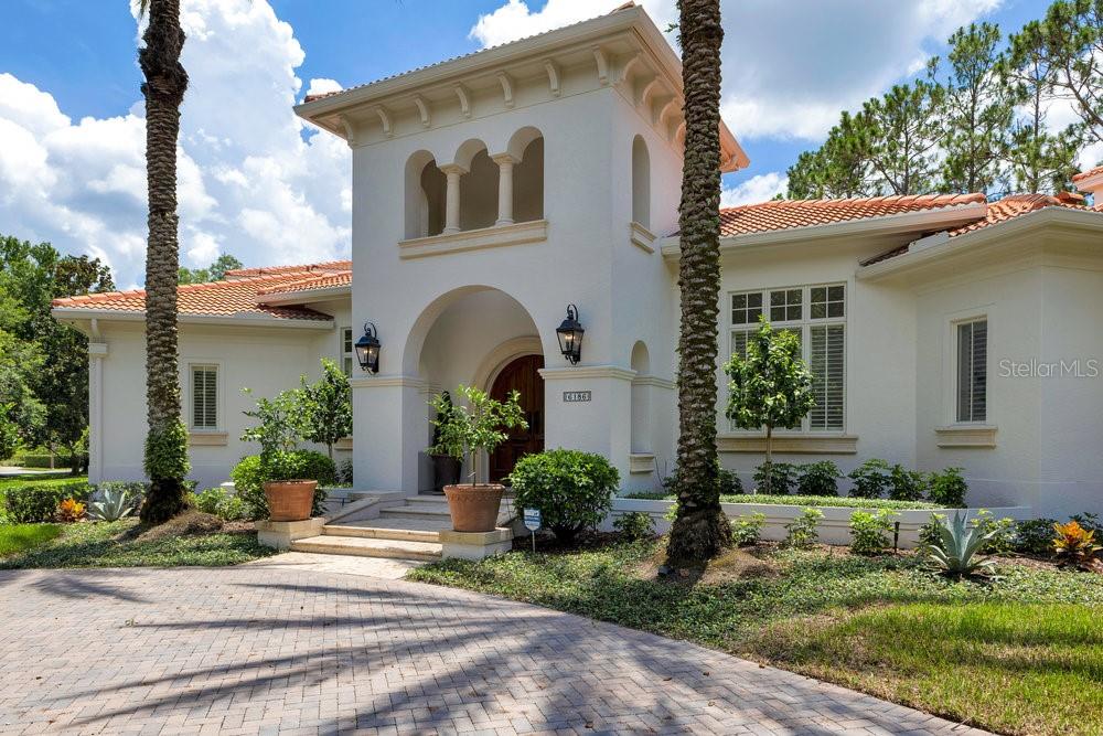 A Masterpiece of Design in Isleworth – 6186 Louise Cove Drive. Stunning, design magazine-worthy residence nestled behind the exclusive 24-hour guard-gated community of Isleworth, one of Central Florida’s most prestigious neighborhoods. This exquisite estate sits on a spacious 0.75-acre corner lot, surrounded by mature landscaping and a stately circular driveway that sets the tone for the luxury that awaits inside. No expense was spared in the recent $1 million designer remodel, which brought in California-based interior designers to source the finest materials from around the globe. Step through grand arched solid wood double doors into a soaring foyer where 16-foot ceilings and imported white French oak floors flow throughout the home. Walls were meticulously finished to level 5 smoothness a testament to the craftsmanship and attention to detail throughout. Designed for both entertaining and everyday living, the open-concept family room centers around a venetian plaster fireplace and effortlessly flows into a show-stopping double island kitchen. Imported German cabinetry is complemented by one piece quartzite slabs and backsplash, while high-end appliances include a 6-burner Wolf range with double ovens, a paneled Thermador refrigerator & freezer, venetian plastered hood, beverage fridge, and under counter microwave are all seamlessly integrated for a refined look. Retreat to the expansive primary suite, where comfort meets luxury. Enjoy access to a private study, Florida room, and a spa-inspired bathroom featuring a stand-alone soaking tub, oversized glass shower with handmade 4x4 Moroccan tile, French brass fixtures, and custom lighting. Primary suite also features a spacious walk-in closet offering custom built-ins, providing both elegance and functionality. The home’s Santorini-inspired full pool bath is a work of art in itself, with artisan stucco finishes adorning every surface. Each secondary bedroom is an en-suite, with marble or handcrafted tile finishes and ample closet space. Outdoors, your private fenced backyard oasis features a heated pool & spa, covered summer kitchen, and expansive lanai, perfect for enjoying Florida’s year-round sunshine. Additional highlights include a whole-house generator, tankless water heaters, four AC units, and a designer laundry room with imported German cabinetry. Live minutes from world-class attractions, dining, and elite schools, yet enjoy the serenity and security of one of the region’s most sought-after enclaves.