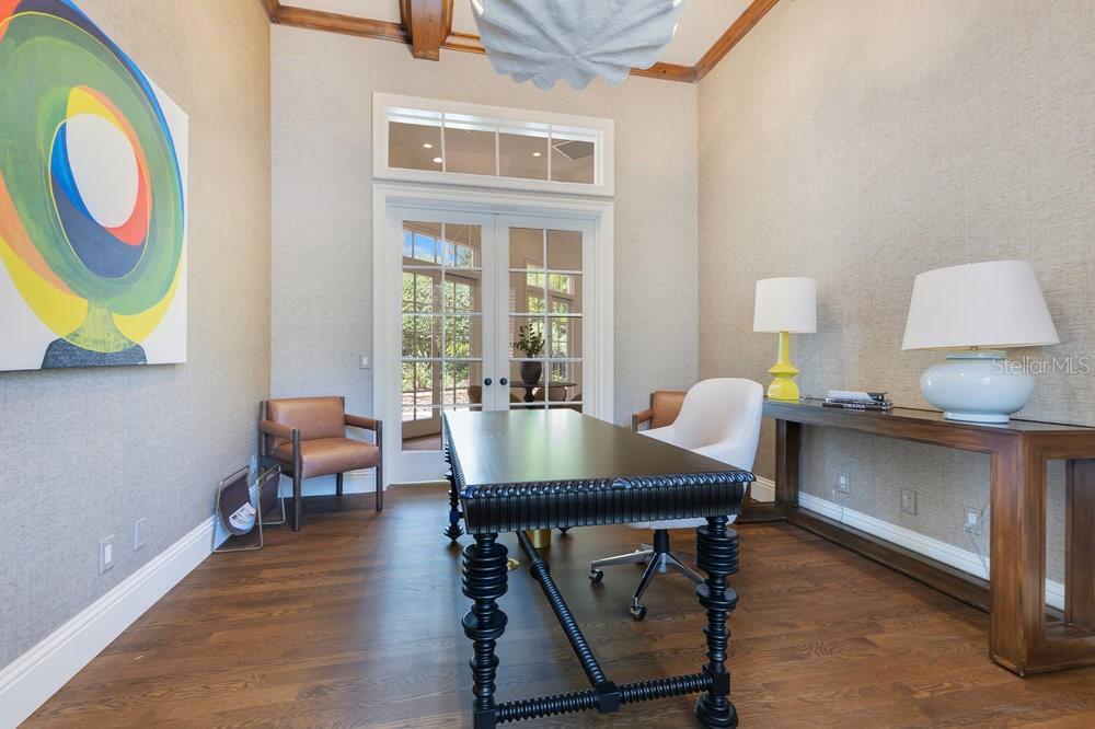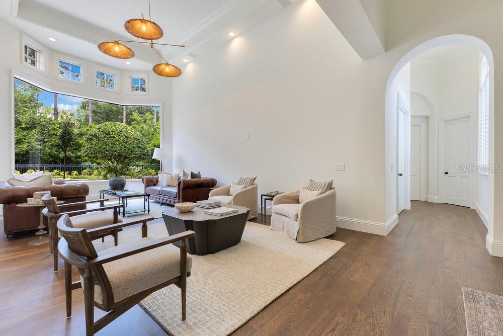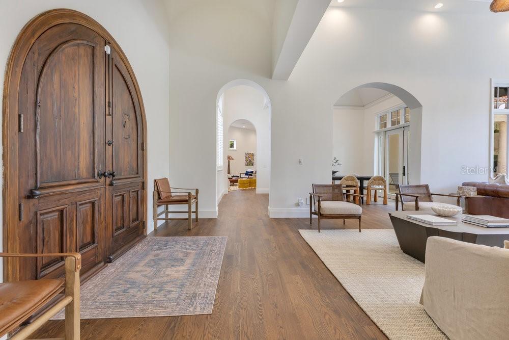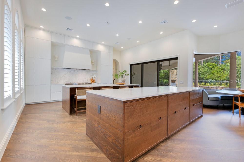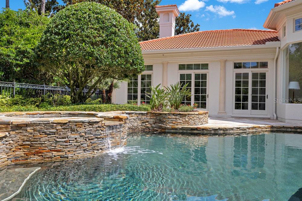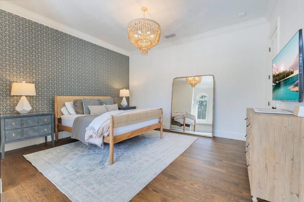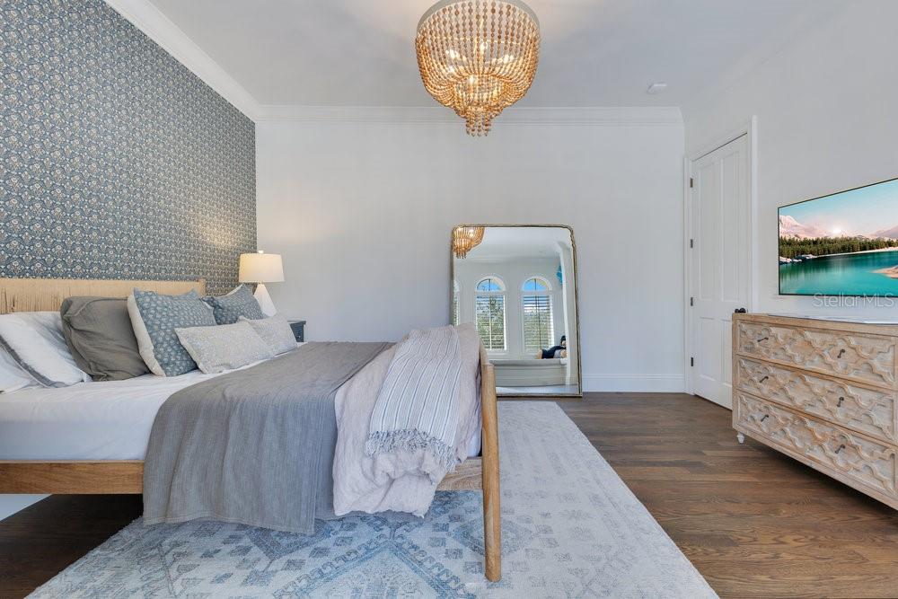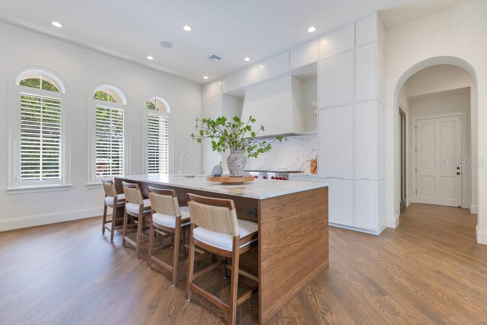 A Masterpiece of Design in Isleworth – 6186 Louise Cove Drive. Stunning, design magazine-worthy residence nestled behind the exclusive 24-hour guard-gated community of Isleworth, one of Central Florida’s most prestigious neighborhoods. This exquisite estate sits on a spacious 0.75-acre corner lot, surrounded by mature landscaping and a stately circular driveway that sets the tone for the luxury that awaits inside. No expense was spared in the recent $1 million designer remodel, which brought in California-based interior designers to source the finest materials from around the globe. Step through grand arched solid wood double doors into a soaring foyer where 16-foot ceilings and imported white French oak floors flow throughout the home. Walls were meticulously finished to level 5 smoothness a testament to the craftsmanship and attention to detail throughout. Designed for both entertaining and everyday living, the open-concept family room centers around a venetian plaster fireplace and effortlessly flows into a show-stopping double island kitchen. Imported German cabinetry is complemented by one piece quartzite slabs and backsplash, while high-end appliances include a 6-burner Wolf range with double ovens, a paneled Thermador refrigerator & freezer, venetian plastered hood, beverage fridge, and under counter microwave are all seamlessly integrated for a refined look. Retreat to the expansive primary suite, where comfort meets luxury. Enjoy access to a private study, Florida room, and a spa-inspired bathroom featuring a stand-alone soaking tub, oversized glass shower with handmade 4x4 Moroccan tile, French brass fixtures, and custom lighting. Primary suite also features a spacious walk-in closet offering custom built-ins, providing both elegance and functionality. The home’s Santorini-inspired full pool bath is a work of art in itself, with artisan stucco finishes adorning every surface. Each secondary bedroom is an en-suite, with marble or handcrafted tile finishes and ample closet space. Outdoors, your private fenced backyard oasis features a heated pool & spa, covered summer kitchen, and expansive lanai, perfect for enjoying Florida’s year-round sunshine. Additional highlights include a whole-house generator, tankless water heaters, four AC units, and a designer laundry room with imported German cabinetry. Live minutes from world-class attractions, dining, and elite schools, yet enjoy the serenity and security of one of the region’s most sought-after enclaves.