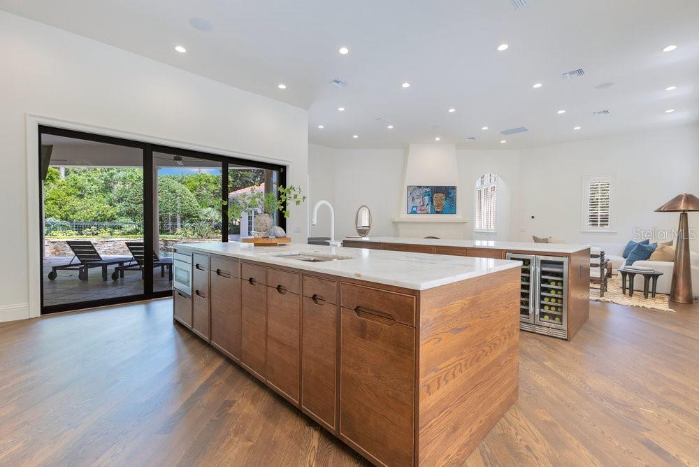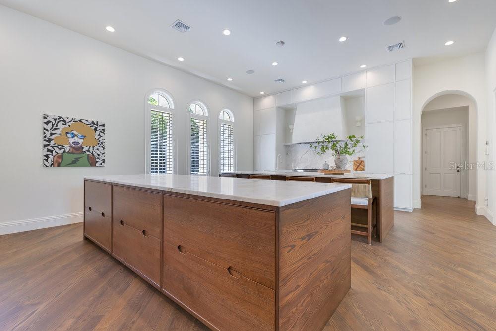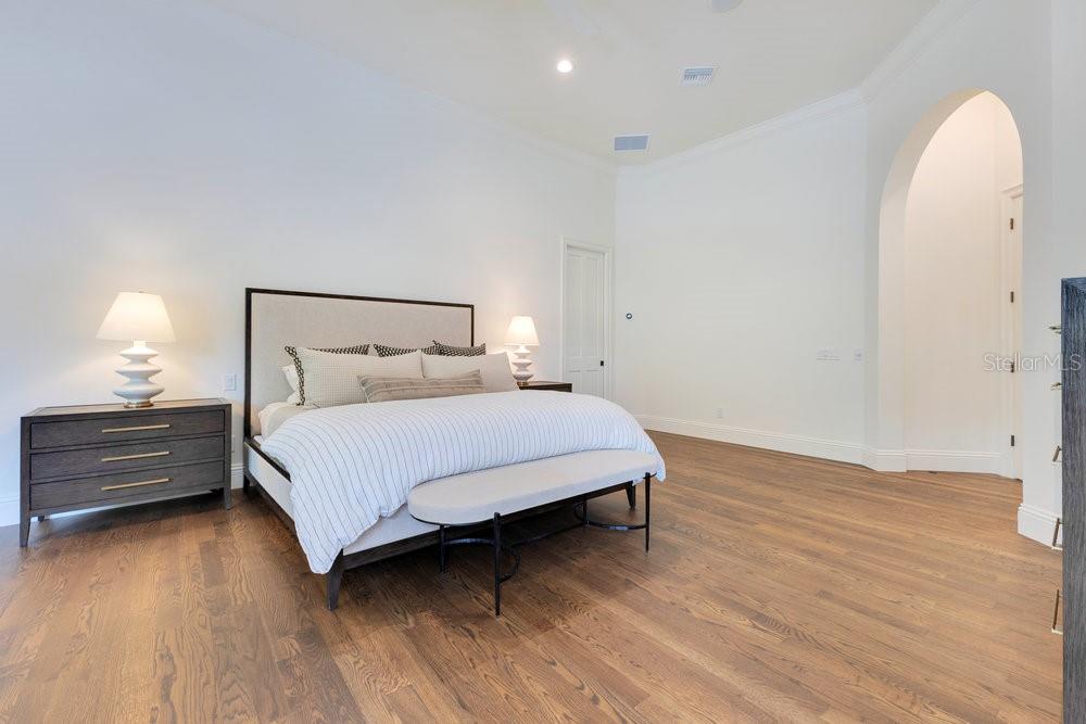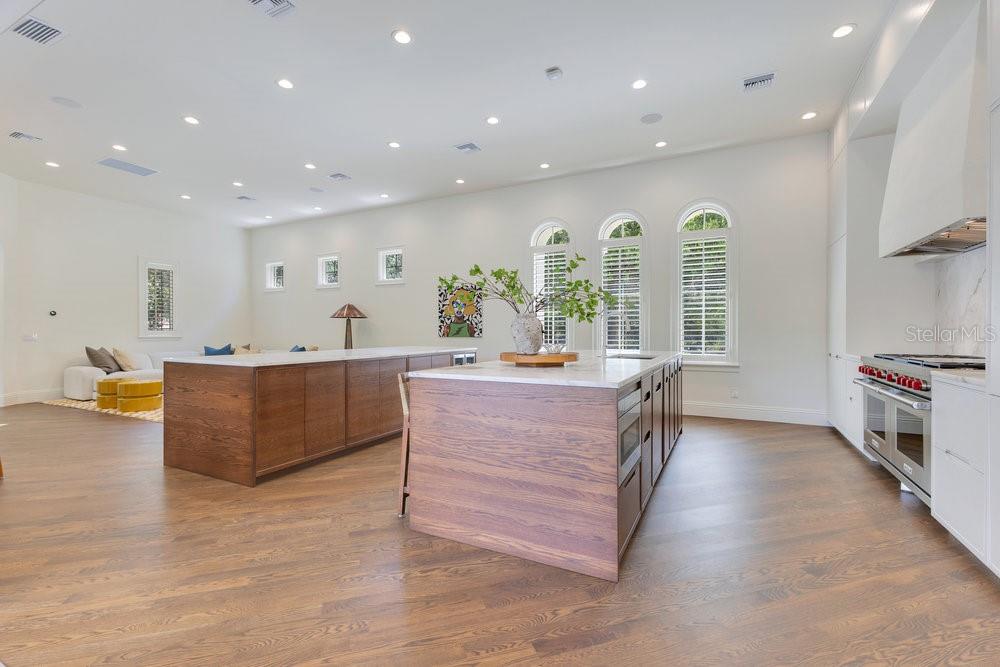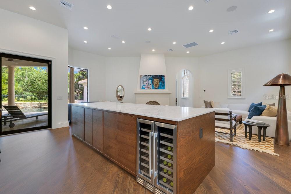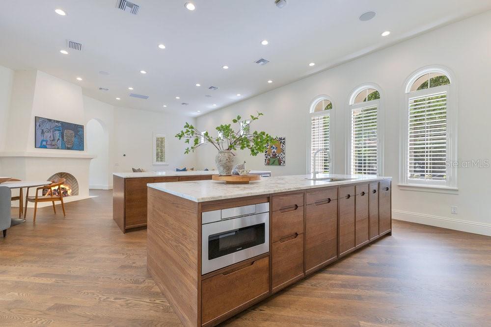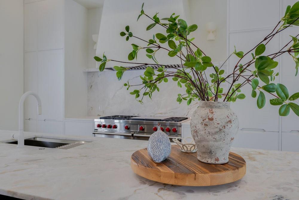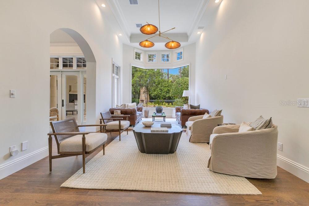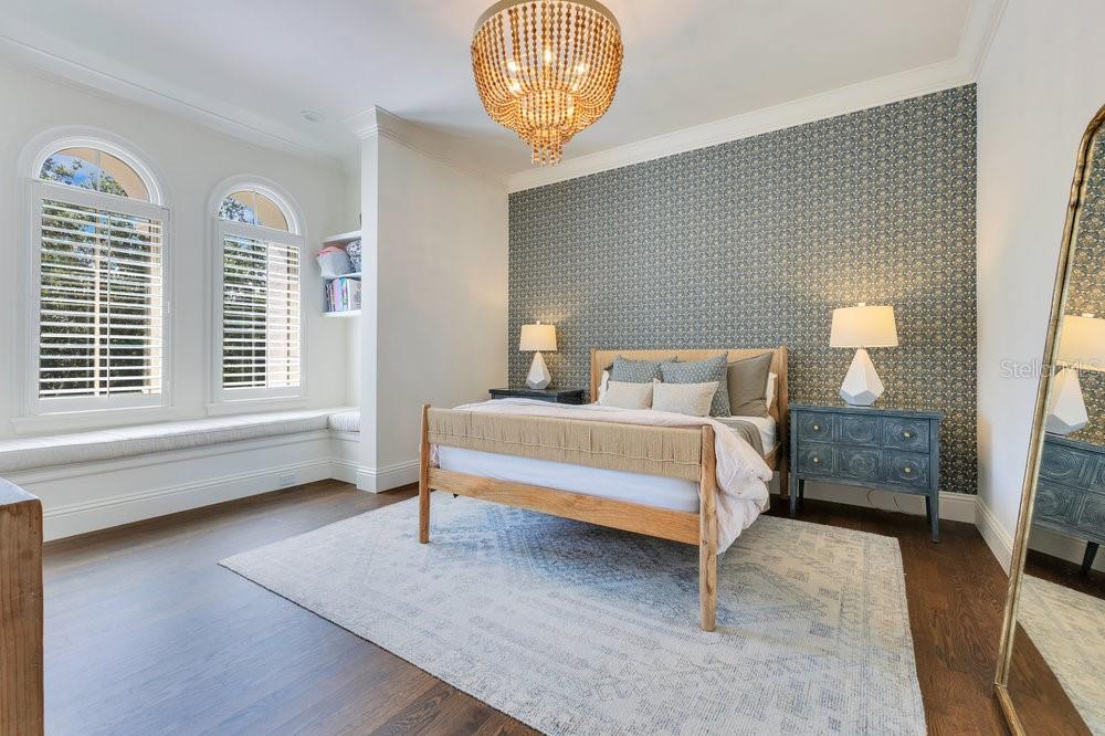 A Masterpiece of Design in Isleworth – 6186 Louise Cove Drive. Stunning, design magazine-worthy residence nestled behind the exclusive 24-hour guard-gated community of Isleworth, one of Central Florida’s most prestigious neighborhoods. This exquisite estate sits on a spacious 0.75-acre corner lot, surrounded by mature landscaping and a stately circular driveway that sets the tone for the luxury that awaits inside. No expense was spared in the recent $1 million designer remodel, which brought in California-based interior designers to source the finest materials from around the globe. Step through grand arched solid wood double doors into a soaring foyer where 16-foot ceilings and imported white French oak floors flow throughout the home. Walls were meticulously finished to level 5 smoothness a testament to the craftsmanship and attention to detail throughout. Designed for both entertaining and everyday living, the open-concept family room centers around a venetian plaster fireplace and effortlessly flows into a show-stopping double island kitchen. Imported German cabinetry is complemented by one piece quartzite slabs and backsplash, while high-end appliances include a 6-burner Wolf range with double ovens, a paneled Thermador refrigerator & freezer, venetian plastered hood, beverage fridge, and under counter microwave are all seamlessly integrated for a refined look. Retreat to the expansive primary suite, where comfort meets luxury. Enjoy access to a private study, Florida room, and a spa-inspired bathroom featuring a stand-alone soaking tub, oversized glass shower with handmade 4x4 Moroccan tile, French brass fixtures, and custom lighting. Primary suite also features a spacious walk-in closet offering custom built-ins, providing both elegance and functionality. The home’s Santorini-inspired full pool bath is a work of art in itself, with artisan stucco finishes adorning every surface. Each secondary bedroom is an en-suite, with marble or handcrafted tile finishes and ample closet space. Outdoors, your private fenced backyard oasis features a heated pool & spa, covered summer kitchen, and expansive lanai, perfect for enjoying Florida’s year-round sunshine. Additional highlights include a whole-house generator, tankless water heaters, four AC units, and a designer laundry room with imported German cabinetry. Live minutes from world-class attractions, dining, and elite schools, yet enjoy the serenity and security of one of the region’s most sought-after enclaves.