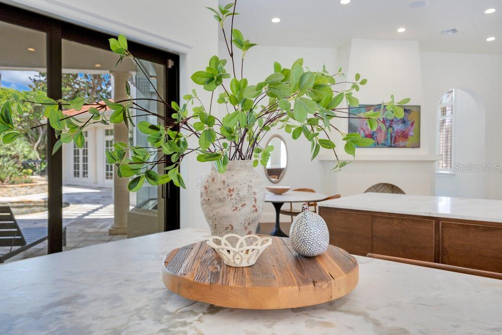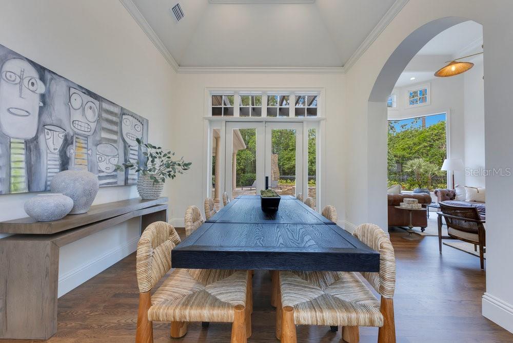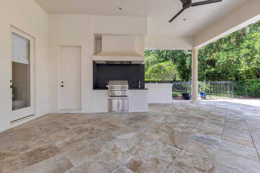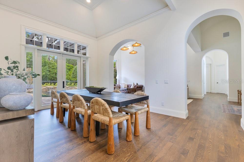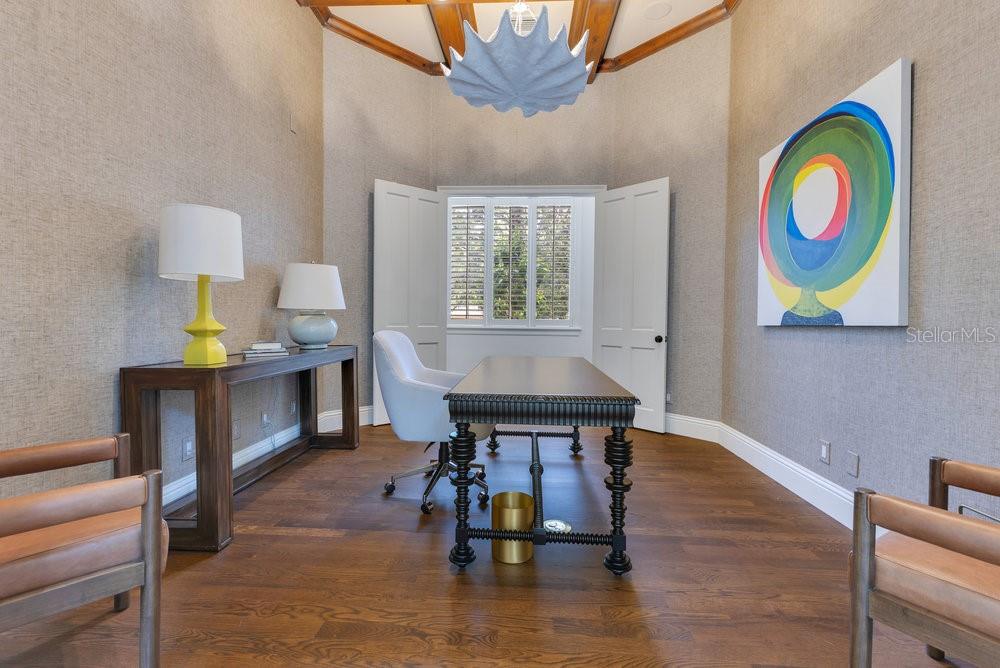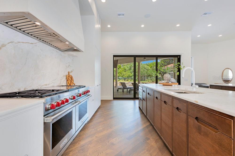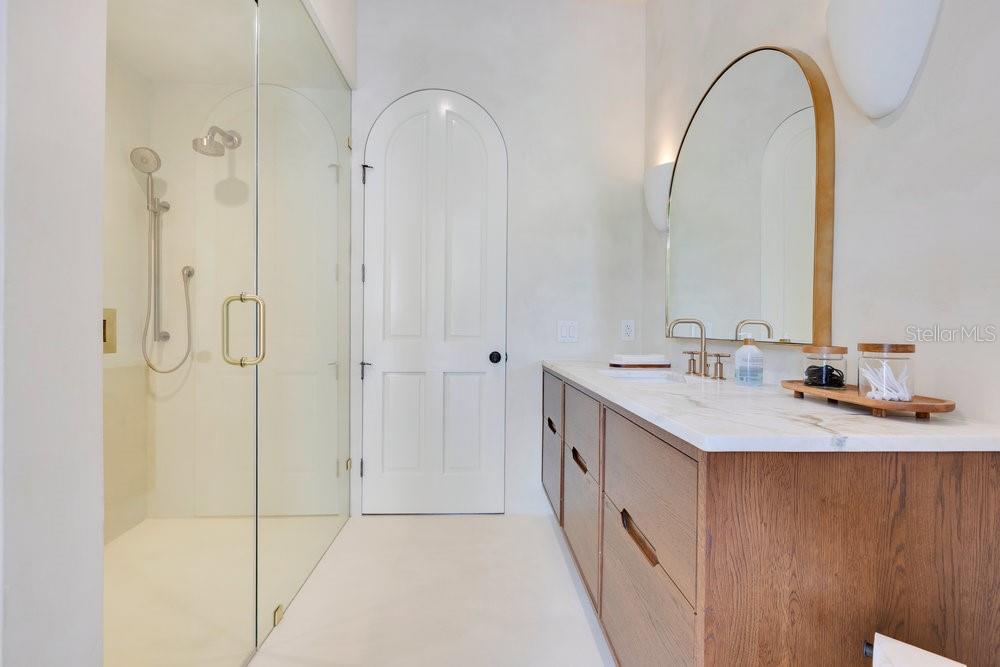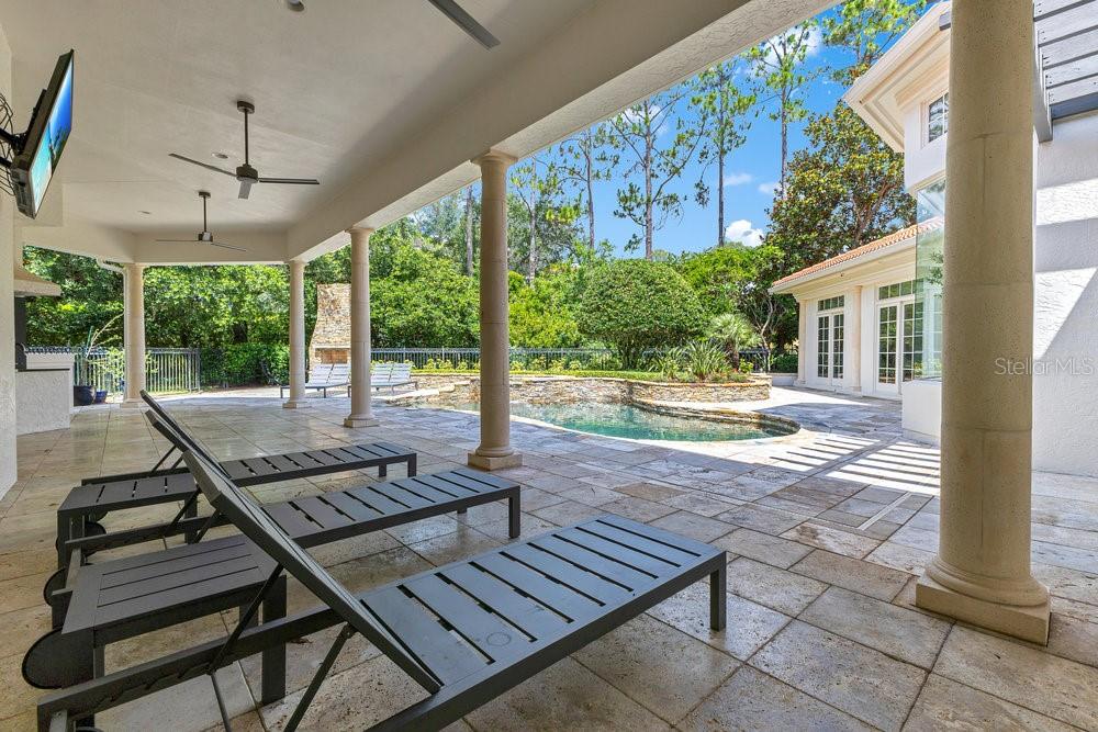 A Masterpiece of Design in Isleworth – 6186 Louise Cove Drive. Stunning, design magazine-worthy residence nestled behind the exclusive 24-hour guard-gated community of Isleworth, one of Central Florida’s most prestigious neighborhoods. This exquisite estate sits on a spacious 0.75-acre corner lot, surrounded by mature landscaping and a stately circular driveway that sets the tone for the luxury that awaits inside. No expense was spared in the recent $1 million designer remodel, which brought in California-based interior designers to source the finest materials from around the globe. Step through grand arched solid wood double doors into a soaring foyer where 16-foot ceilings and imported white French oak floors flow throughout the home. Walls were meticulously finished to level 5 smoothness a testament to the craftsmanship and attention to detail throughout. Designed for both entertaining and everyday living, the open-concept family room centers around a venetian plaster fireplace and effortlessly flows into a show-stopping double island kitchen. Imported German cabinetry is complemented by one piece quartzite slabs and backsplash, while high-end appliances include a 6-burner Wolf range with double ovens, a paneled Thermador refrigerator & freezer, venetian plastered hood, beverage fridge, and under counter microwave are all seamlessly integrated for a refined look. Retreat to the expansive primary suite, where comfort meets luxury. Enjoy access to a private study, Florida room, and a spa-inspired bathroom featuring a stand-alone soaking tub, oversized glass shower with handmade 4x4 Moroccan tile, French brass fixtures, and custom lighting. Primary suite also features a spacious walk-in closet offering custom built-ins, providing both elegance and functionality. The home’s Santorini-inspired full pool bath is a work of art in itself, with artisan stucco finishes adorning every surface. Each secondary bedroom is an en-suite, with marble or handcrafted tile finishes and ample closet space. Outdoors, your private fenced backyard oasis features a heated pool & spa, covered summer kitchen, and expansive lanai, perfect for enjoying Florida’s year-round sunshine. Additional highlights include a whole-house generator, tankless water heaters, four AC units, and a designer laundry room with imported German cabinetry. Live minutes from world-class attractions, dining, and elite schools, yet enjoy the serenity and security of one of the region’s most sought-after enclaves.