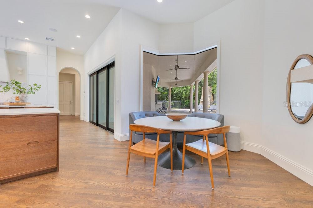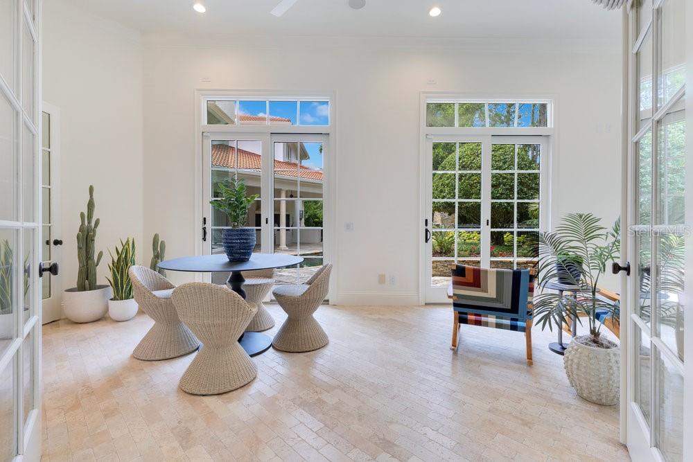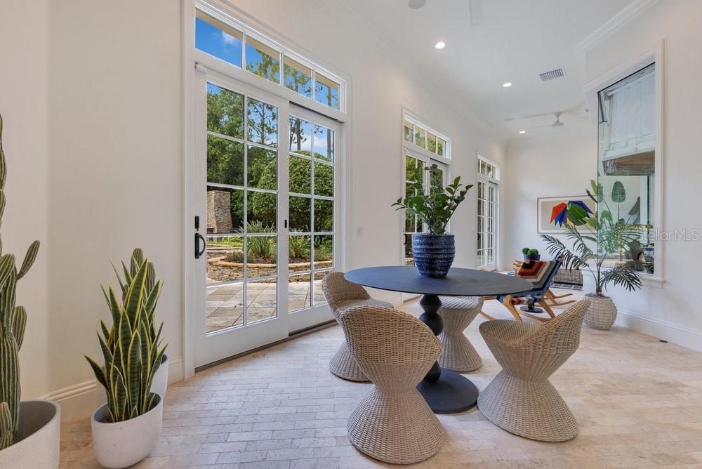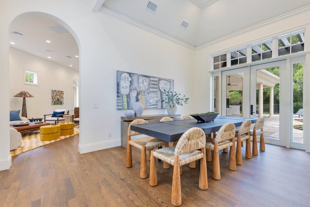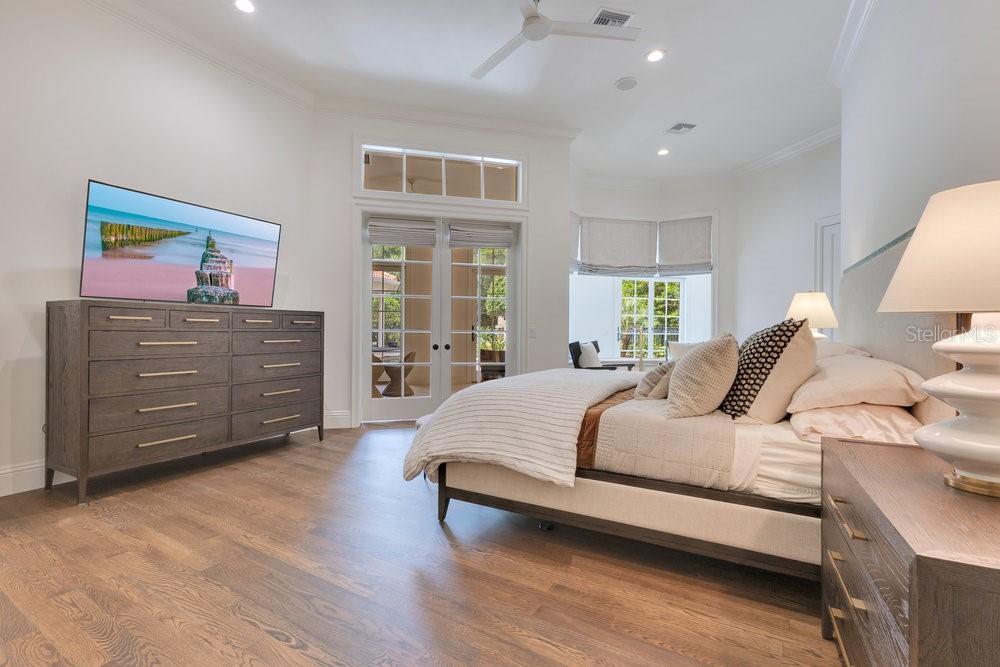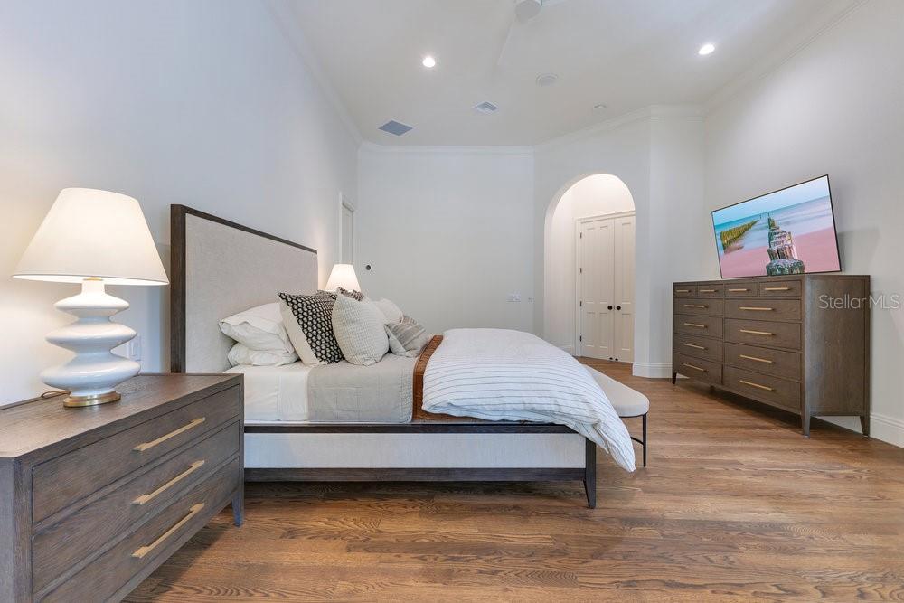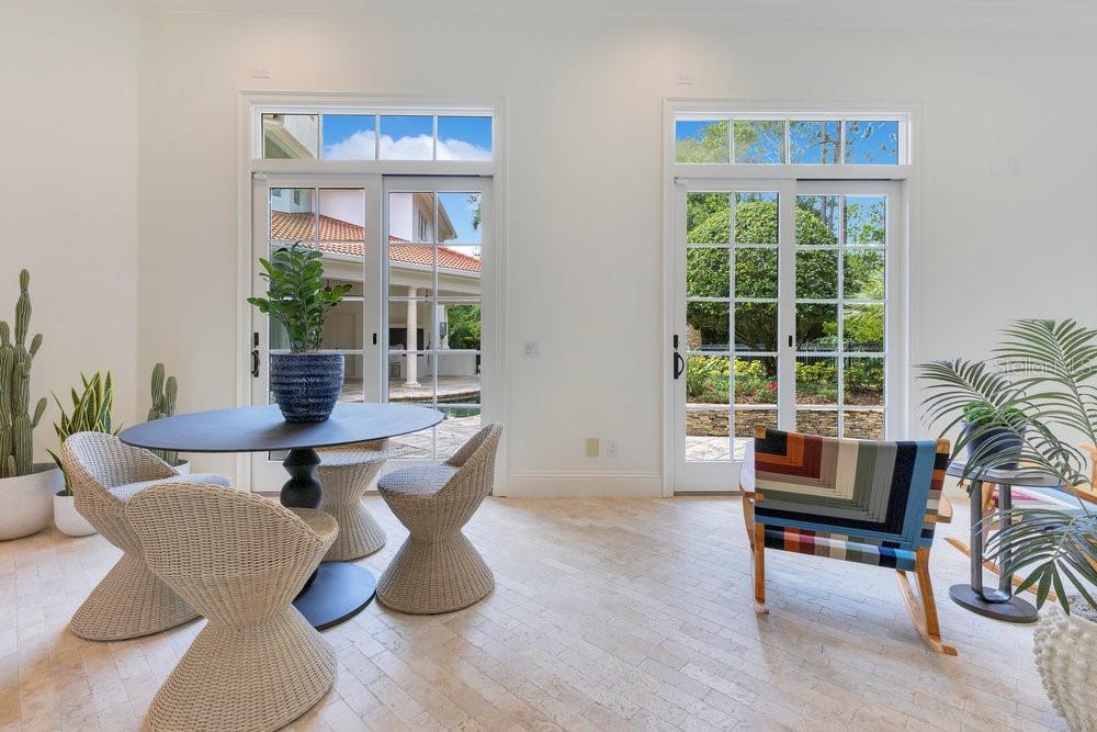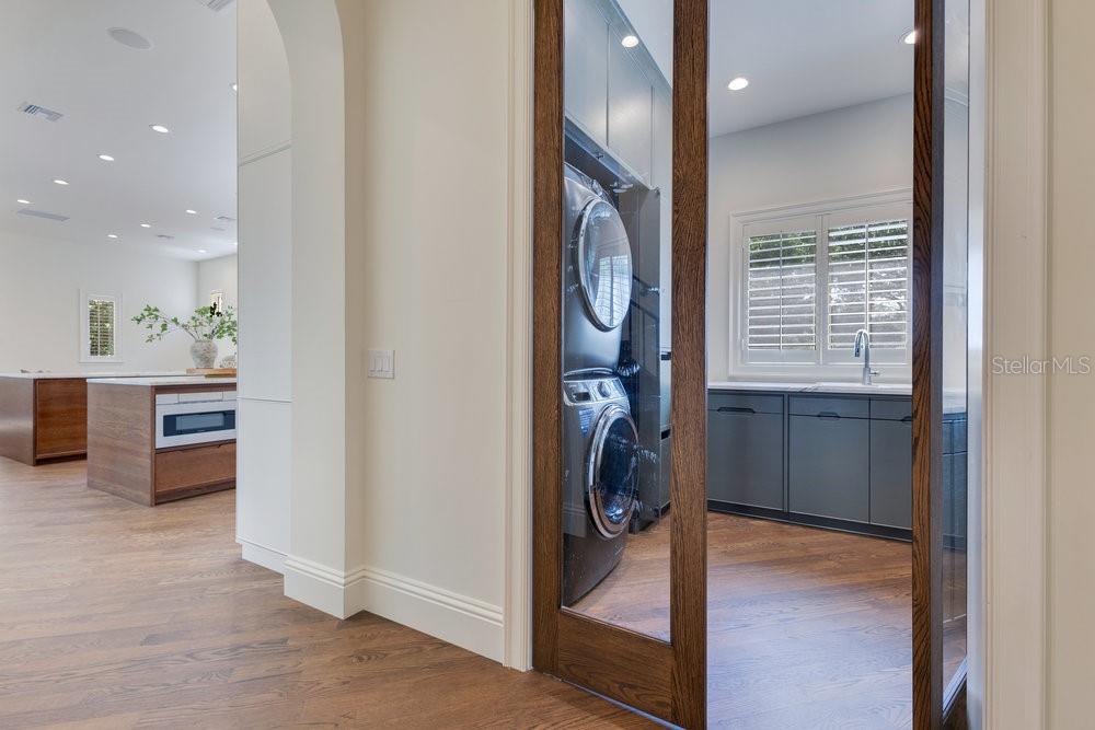 A Masterpiece of Design in Isleworth – 6186 Louise Cove Drive. Stunning, design magazine-worthy residence nestled behind the exclusive 24-hour guard-gated community of Isleworth, one of Central Florida’s most prestigious neighborhoods. This exquisite estate sits on a spacious 0.75-acre corner lot, surrounded by mature landscaping and a stately circular driveway that sets the tone for the luxury that awaits inside. No expense was spared in the recent $1 million designer remodel, which brought in California-based interior designers to source the finest materials from around the globe. Step through grand arched solid wood double doors into a soaring foyer where 16-foot ceilings and imported white French oak floors flow throughout the home. Walls were meticulously finished to level 5 smoothness a testament to the craftsmanship and attention to detail throughout. Designed for both entertaining and everyday living, the open-concept family room centers around a venetian plaster fireplace and effortlessly flows into a show-stopping double island kitchen. Imported German cabinetry is complemented by one piece quartzite slabs and backsplash, while high-end appliances include a 6-burner Wolf range with double ovens, a paneled Thermador refrigerator & freezer, venetian plastered hood, beverage fridge, and under counter microwave are all seamlessly integrated for a refined look. Retreat to the expansive primary suite, where comfort meets luxury. Enjoy access to a private study, Florida room, and a spa-inspired bathroom featuring a stand-alone soaking tub, oversized glass shower with handmade 4x4 Moroccan tile, French brass fixtures, and custom lighting. Primary suite also features a spacious walk-in closet offering custom built-ins, providing both elegance and functionality. The home’s Santorini-inspired full pool bath is a work of art in itself, with artisan stucco finishes adorning every surface. Each secondary bedroom is an en-suite, with marble or handcrafted tile finishes and ample closet space. Outdoors, your private fenced backyard oasis features a heated pool & spa, covered summer kitchen, and expansive lanai, perfect for enjoying Florida’s year-round sunshine. Additional highlights include a whole-house generator, tankless water heaters, four AC units, and a designer laundry room with imported German cabinetry. Live minutes from world-class attractions, dining, and elite schools, yet enjoy the serenity and security of one of the region’s most sought-after enclaves.