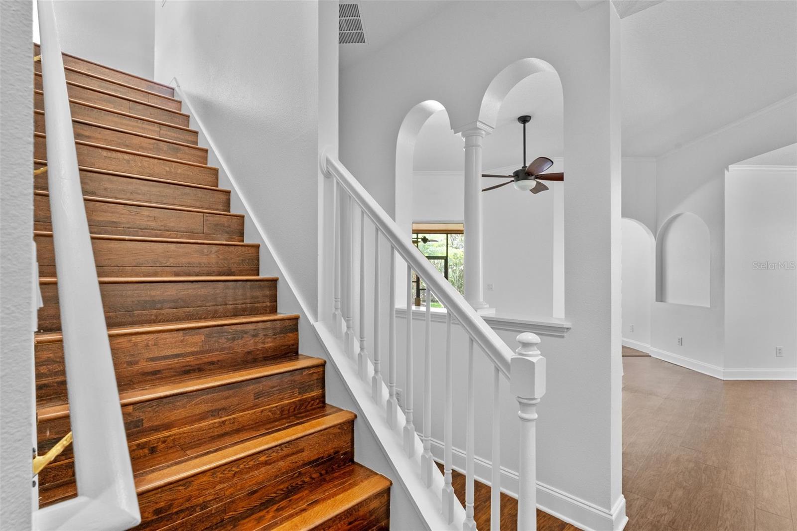 Beautifully Freshly Painted Home in Windermere’s Belmere Village Welcome to this light and bright 4-bedroom, 2-bathroom home with a spacious second-floor loft, offering 2,505 square feet of meticulously maintained living space. Located in the gated community of Belmere Village, this home features fresh interior and exterior paint, creating a crisp, clean feel throughout. Step inside to an open floor plan with formal living and dining rooms adorned with crown molding and tray ceilings. The updated kitchen boasts brand-NEW quartz countertops, a NEW sink and faucet, and a NEW dishwasher, along with white 42-inch wood cabinets, a GAS range, breakfast bar, and a breakfast nook that opens to the large family room — all overlooking the screened-in lanai and landscaped backyard. The primary suite, located on the main level, offers privacy and comfort with dual closets, dual sinks, a large soaking tub, and a separate shower. Outside, enjoy a brick paver driveway, upgraded concrete bed edging, extensive exterior landscape lighting, camera system with in-home TV displays, and a garden lover’s dream backyard, complete with an outdoor shower. Community amenities include a gated entrance, clubhouse, tennis courts, resort-style pool, playground, and basketball court.