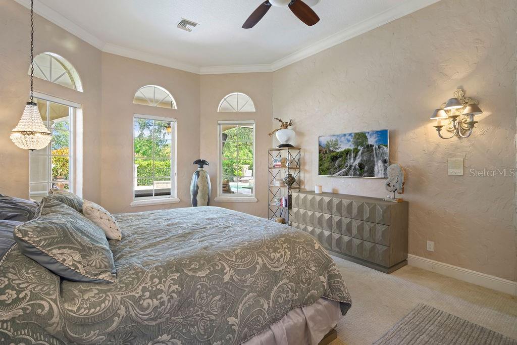A Masterpiece on the 4th Hole – Keene’s Pointe Luxury Living Perfectly poised on a premium golf-front lot in the gorgeous, guard-gated community of Keene’s Pointe, this custom-built residence by Unnerstall blends refined craftsmanship with thoughtful design and breathtaking views of the Golden Bear Club’s 4th hole and tranquil water features. Boasting over 6,100 square feet of impeccably designed living space, this home offers 5 en-suite bedrooms, two private offices, a dedicated fitness room, and a sunroom-style bonus/game room—all tailored for both comfortable daily living and elevated entertaining. From the moment you step through the grand double doors, you’re welcomed by travertine flooring, elegant architectural detail, and a sense of scale that is both impressive and inviting. The main-level primary suite is an expansive retreat featuring dual walk-in closets and an unforgettable two-story spa bath designed to inspire relaxation. A second bedroom suite on the first floor provides ideal accommodations for guests or multi-generational living. The heart of the home is the gourmet kitchen, beautifully appointed with custom cabinetry and open to the dramatic two-story great room, creating a seamless flow for entertaining. Upstairs, you’ll find three additional en-suite bedrooms, a flexible bonus room or office, and a private home gym. Step outside to your personal resort. A screened-in lanai leads to a lush, landscaped backyard with a copper-roofed gazebo, outdoor kitchen and bar, and a sparkling pool and spa—all perfectly positioned for enjoying Florida’s golden skies and outdoor lifestyle. Additional highlights include an oversized paver driveway, three-car garage plus separate golf cart entrance, Venetian plaster finishes, and designer touches throughout. Set within one of Windermere’s most exclusive communities, where majestic oaks, lakeside trails, and the Butler Chain of Lakes frame a lifestyle rich in privacy, recreation, and natural beauty—this is more than a home. It’s a statement.