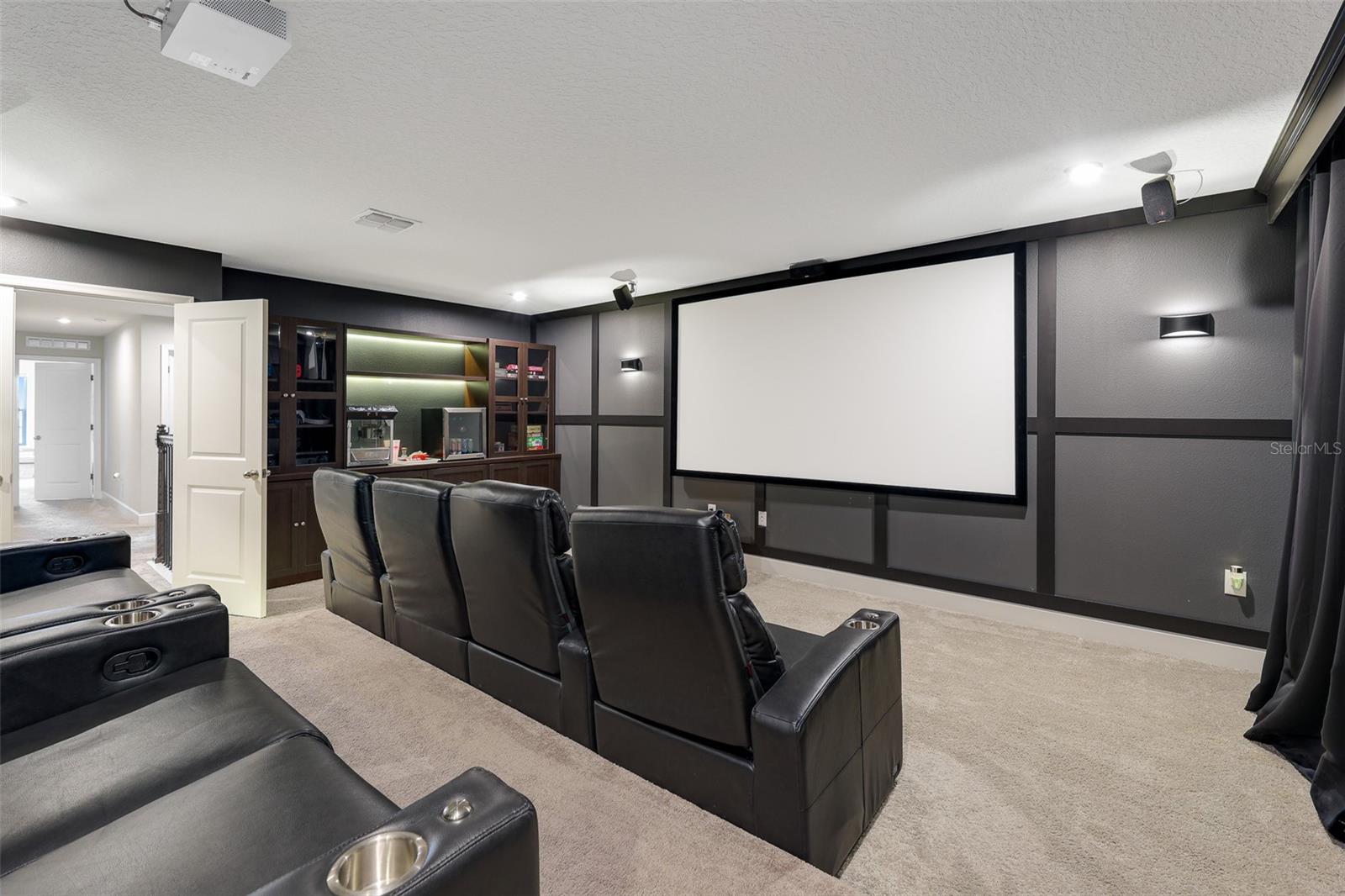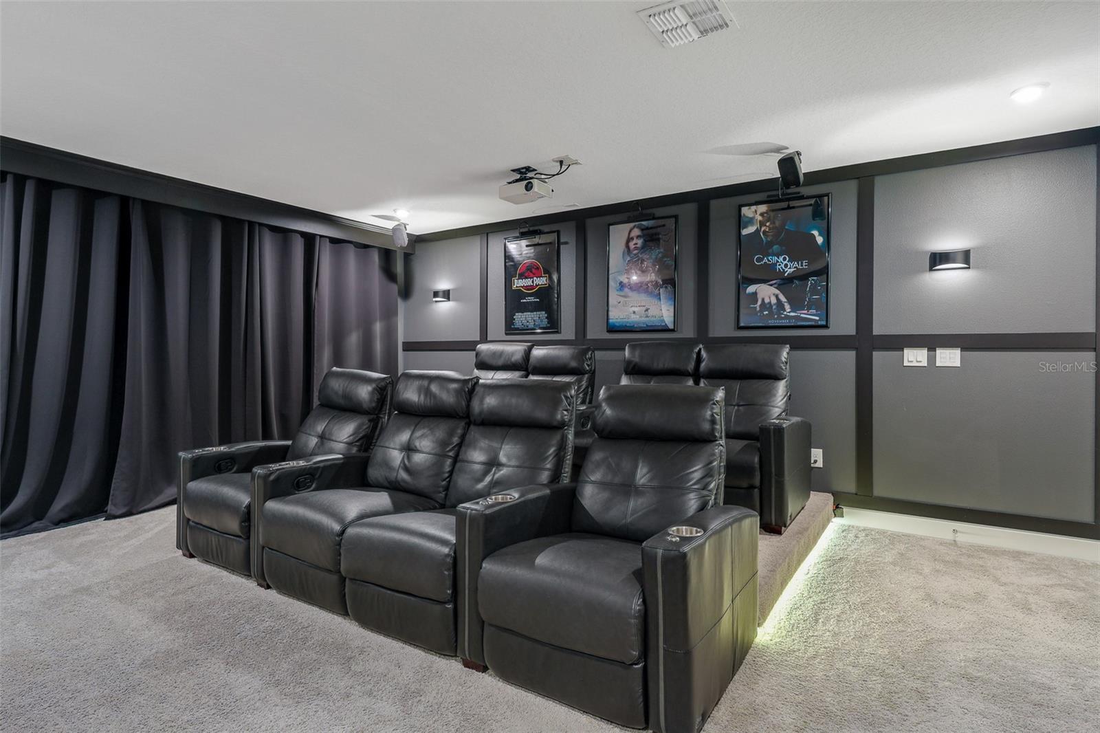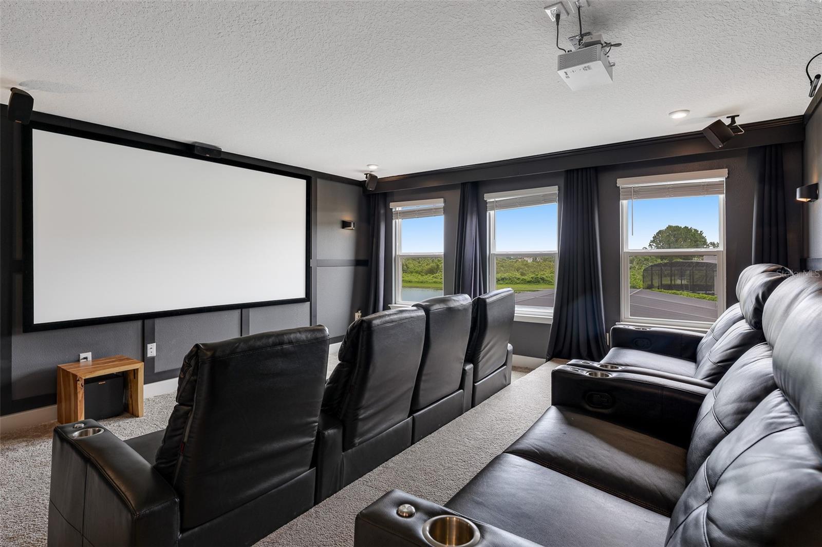 BACK ON THE MARKET WITH PRICE IMPROVEMENT AND MOTIVATED SELLERS! Located in the prestigious Sanctuary at Lakes of Windermere community, this stunning home offers luxury living at its finest. The property features a large heated saltwater pool, 5 full suites and a half bath, a home office, and a private movie theater—perfect for comfort, productivity, and entertainment. One suite and the office are located on the first floor for added convenience. Thoughtfully upgraded with over $130K in improvements, the home includes a gourmet kitchen with custom cabinetry, stainless steel appliances, and a designer tile backsplash. The open layout features high-end tile flooring, tray ceilings, upgraded trim, smart home features, and extra windows and outlets throughout, bringing in natural light and functionality. From the backyard, enjoy peaceful lake views and nightly Disney fireworks—a truly unique and magical setting. The outdoor area also includes a screened extended lanai, outdoor kitchen rough-in, and professional landscaping. Just minutes from top-rated schools, dining, and Orlando’s best attractions, this is Windermere living at its best.