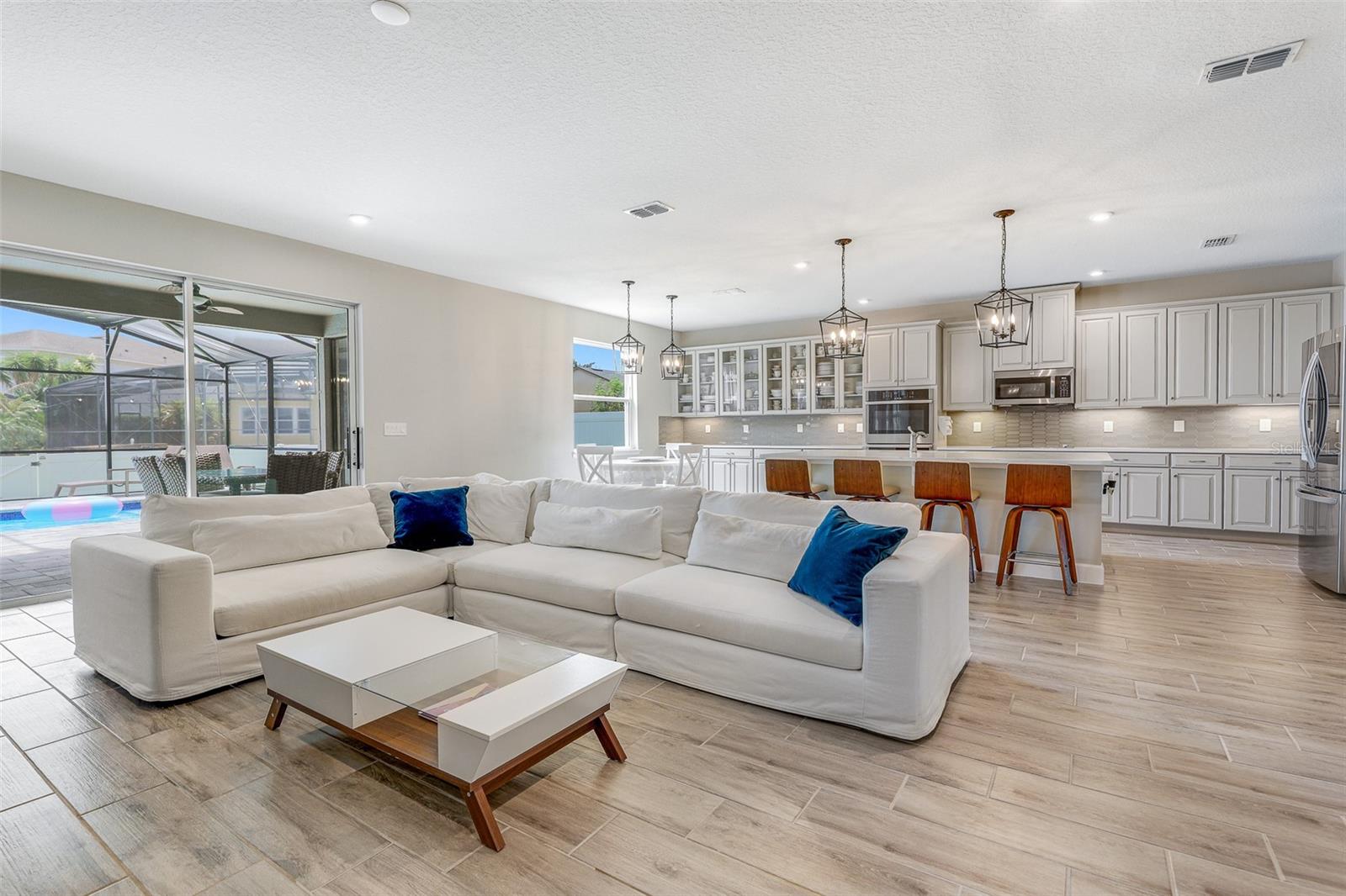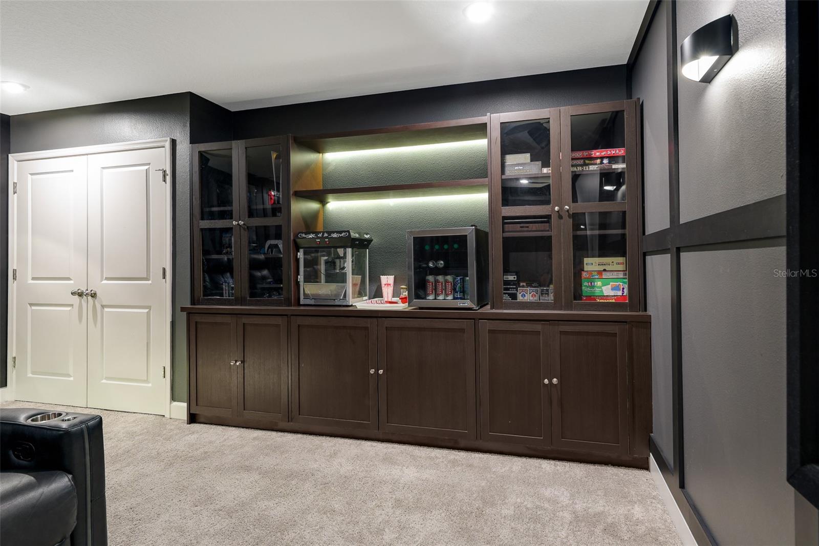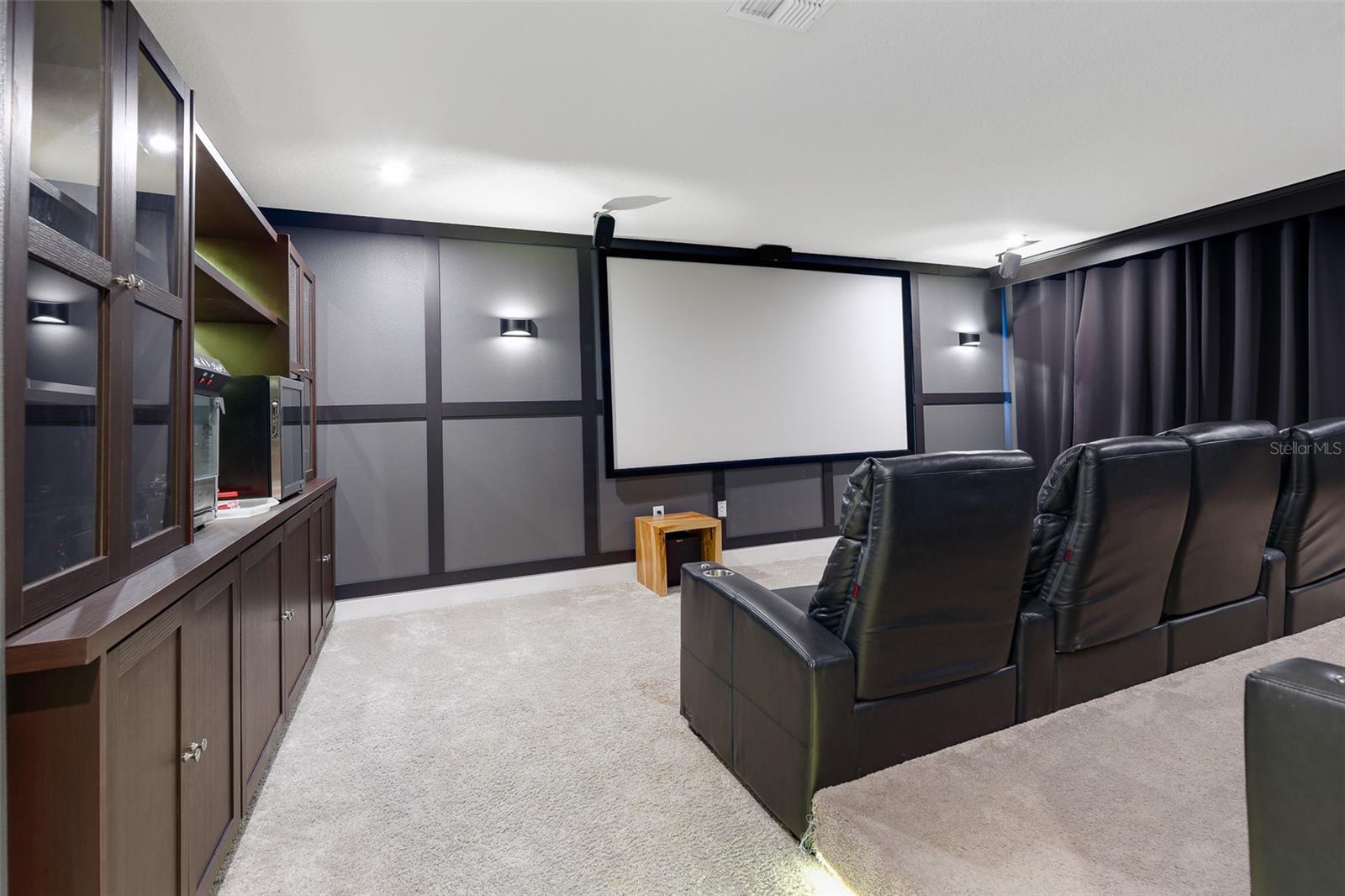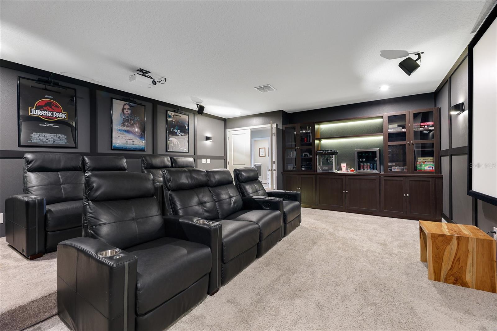 BACK ON THE MARKET WITH PRICE IMPROVEMENT AND MOTIVATED SELLERS! Located in the prestigious Sanctuary at Lakes of Windermere community, this stunning home offers luxury living at its finest. The property features a large heated saltwater pool, 5 full suites and a half bath, a home office, and a private movie theater—perfect for comfort, productivity, and entertainment. One suite and the office are located on the first floor for added convenience. Thoughtfully upgraded with over $130K in improvements, the home includes a gourmet kitchen with custom cabinetry, stainless steel appliances, and a designer tile backsplash. The open layout features high-end tile flooring, tray ceilings, upgraded trim, smart home features, and extra windows and outlets throughout, bringing in natural light and functionality. From the backyard, enjoy peaceful lake views and nightly Disney fireworks—a truly unique and magical setting. The outdoor area also includes a screened extended lanai, outdoor kitchen rough-in, and professional landscaping. Just minutes from top-rated schools, dining, and Orlando’s best attractions, this is Windermere living at its best.