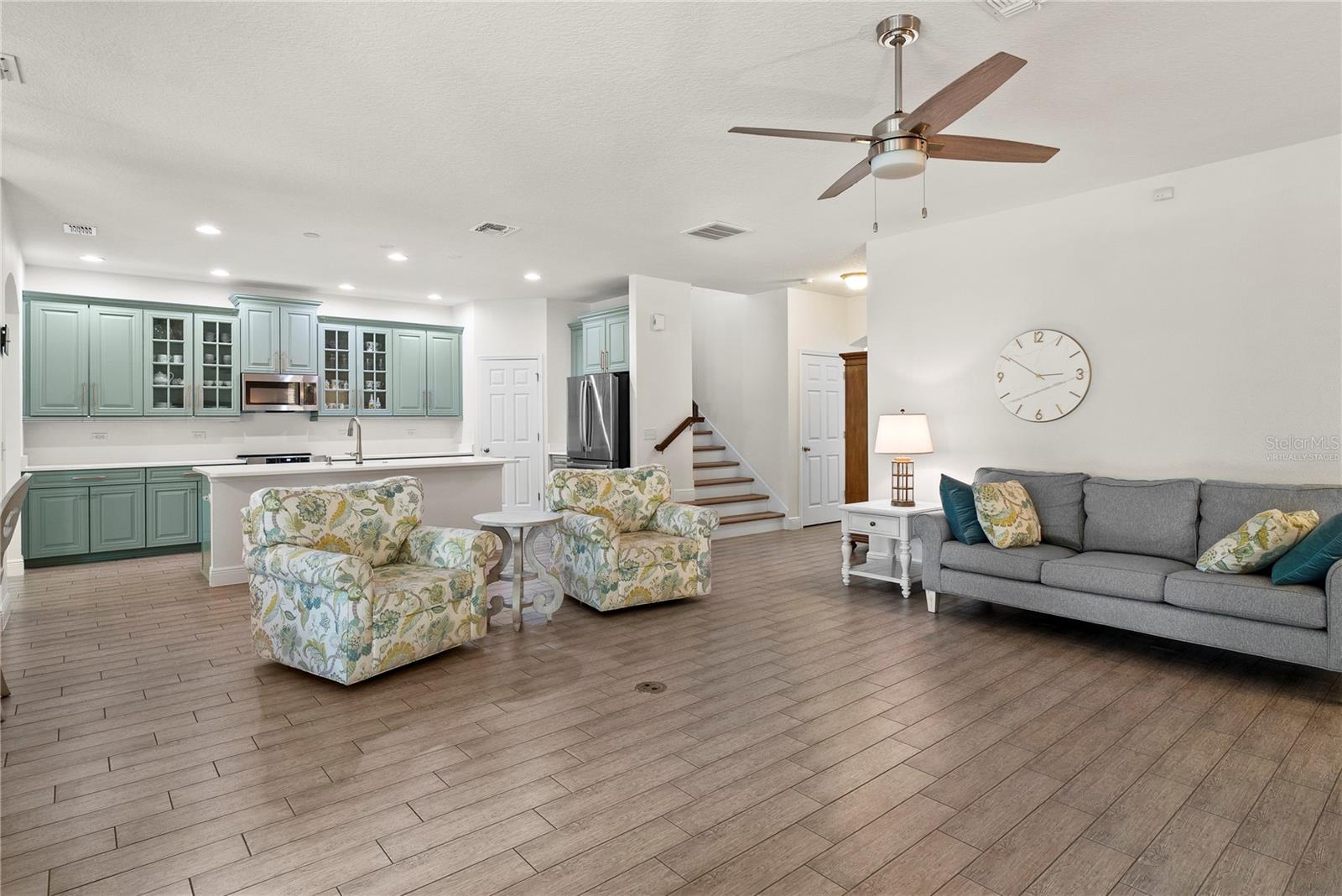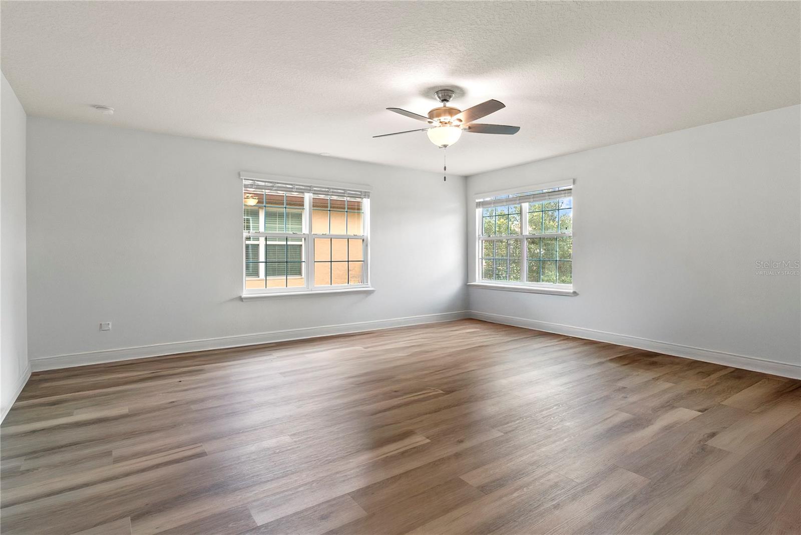 One or more photo(s) has been virtually staged. Welcome to this beautifully maintained four-bedroom, three-and-a-half-bath home in the highly sought-after Windermere Trails community, located less than two minutes from Walt Disney World. The front of the home offers multiple flexible living spaces ideal for a home office, sitting room, or hobby area. The open family room flows into a spacious kitchen featuring a large quartz island, brand-new stainless steel appliances, ample cabinetry, and tasteful modern finishes. An additional flex space near the kitchen can serve as formal dining or an additional gathering area. Upstairs, the primary suite provides a peaceful retreat with two walk-in closets and a spa-style bathroom with dual vanities and an oversized walk-in shower. Two bedrooms share a Jack-and-Jill bathroom, while the fourth bedroom has its own private, upgraded bath. A large bonus room with a built-in movie screen adds extra space for entertainment. Step onto the upstairs balcony to enjoy morning coffee or evening breezes. The fully fenced backyard features a screened patio and mature banana, mango, lemon, and orange trees, creating a private tropical setting. Luxury vinyl flooring runs throughout the home, with no carpet. Major updates include a new HVAC system in 2023, whole-home water softener, and fresh interior and exterior paint in 2025. Windermere Trails offers walking trails, lakes, and a resort-style pool. Lakeside Village is less than a mile away with grocery stores, shopping, and restaurants, along with close proximity to downtown Windermere, top-rated A schools, boat ramps, major highways, and Orlando’s best dining and entertainment.