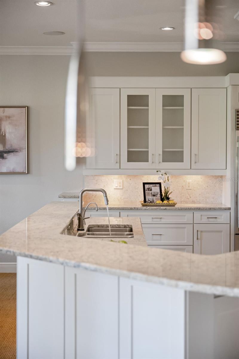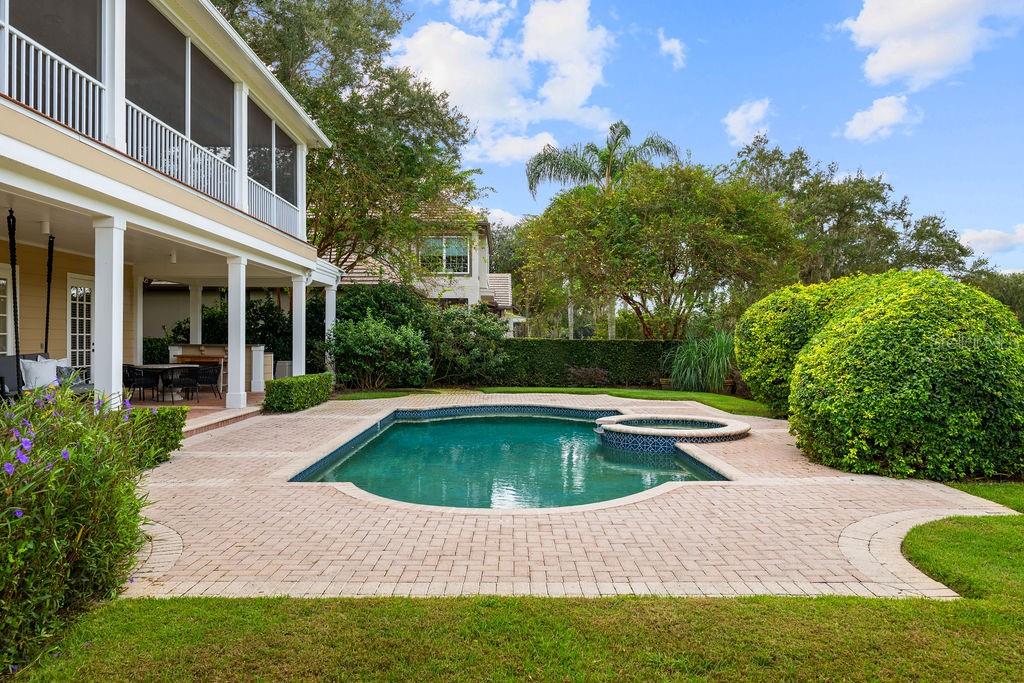 Welcome to Keene’s Pointe! Discover the charm of this custom-built home located on the 17th Fairway of the renown Jack Nicklaus Signature Golf Course and across from the lakefront mansions that line this quiet cul-de- sac on Greatwater Drive. This 4BR/4Full Bath/1 Half Bath golf course estate home exudes warmth from the gorgeous hardwood floors and abundant natural light. You will find your main living area on the first floor with an inviting Kitchen-Family Room combination that opens to a gorgeous pool and golf course with sunset views. Recently remodeled with all top of the line Stainless Steel Wolf Double Ovens & gas cooktop, Sub-Zero Refrigerator, Bosch dishwasher and two refrigerator drawers built in to the kitchen cabinetry! Very thoughtful design! Additionally, the formal dining room is connected to the butler’s pantry and features a Miele expresso coffee bar and wine refrigerator. A spacious home office is located to left as you enter the Grand Foyer! You will also find one bedroom with full bath and a formal living room on the main floor, as well, and both open to a gorgeous covered patio & pool area. The Primary and two other Ensuite Bedrooms are located upstairs, and all enjoy access to an enormous rear balcony that stretches the full width of the house with stunning sunset views and panoramic golf course vistas of the wide 17th fairway of this beautiful Jack Nicklaus Signature Golf Course. A spacious laundry room is also located upstairs. All Bathrooms have been updated and the Kitchen remodeled. New carpet in all bedrooms, fresh interior paint and all new LED lights throughout. New Roof in 2023 and New AC for the upstairs in 2024. Fabulous covered pool area also features summer kitchen and a large swinging loveseat to enjoy the beautiful ambiance of this nearly one half acre homesite. Sit back, relax and enjoy!