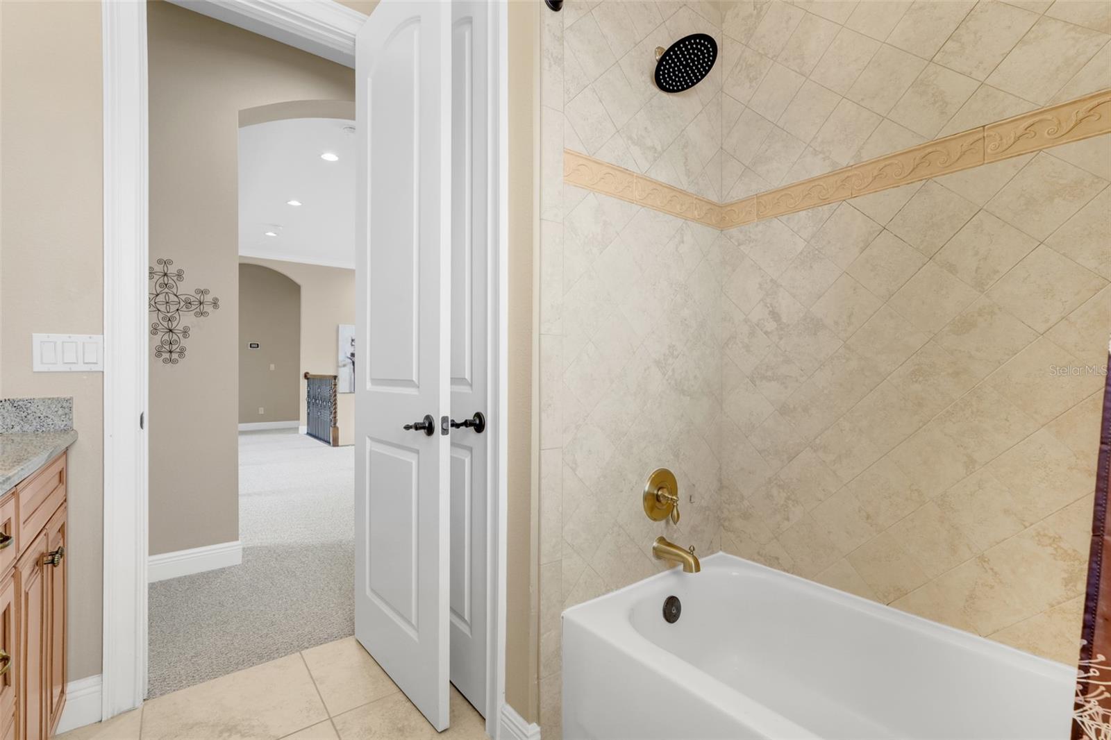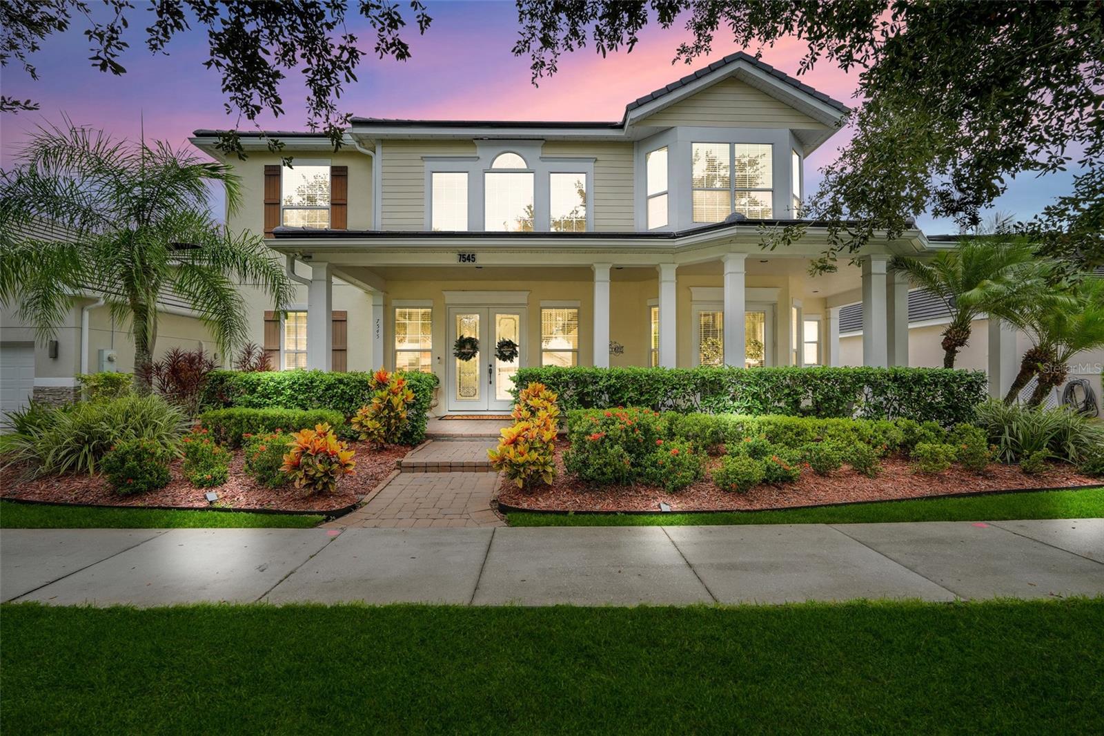 Welcome to 7545 Lake Albert Drive. Where timeless architecture meets modern luxury. Nestled on an expansive lot in one of Windermere's most sought after communities, this stunning estate offers the perfect balance of privacy, comfort, and resort-style living just minutes from Walt Disney World and the best of Central Florida. Arrive via a long, elegant driveway, framed by lush landscaping, leading to a spacious rear detached garage connected by a breezeway. This meticulously maintained estate features a NEW ROOF, ensuring both peace of mind and long-term value. Step inside and be greeted by an oversized foyer and soaring ceilings, filling the home with natural light throughout. A wooden staircase with wrought iron accents adds a touch of elegance, while the open layout seamlessly connects living, dining, and entertaining spaces. The gourmet gas kitchen is a chef's dream, featuring granite countertops, custom solid wood cabinetry with crown molding, a center island, and upgraded finishes. A convenient powder room on the main level ensures effortless entertaining. The primary suite, located on the first floor, is a private retreat with direct pool access. The spa-like primary bath includes a walk-in shower, soaking tub, and dual vanities. Upstairs, you'll find three additional bedrooms and two full bathrooms including a private en suite, plus a catwalk overlooking both living spaces below. Outdoor living is a true highlight with multiple covered spaces, including a front porch and screened in pool. The poolside exterior bathroom adds convenience for seamless indoor-outdoor living. The summer kitchen is perfect for entertaining with a built-in gas grill, sink, refrigerator, and storage, plus a breezeway patio and fire pit area. Permanent Govee lighting sets the mood for unforgettable evenings spent under the stars. The community features Lake Burden pier for fishing, beautifully maintained parks, playground, and tennis courts for active living and recreation. This home delivers the full Florida lifestyle whether you're hosting poolside gatherings, unwinding in the private backyard, enjoying community amenities at Lake Burden and the tennis courts, exploring Windermere's lakes and boutique shops, or experiencing world-class attractions like Walt Disney World just minutes away.