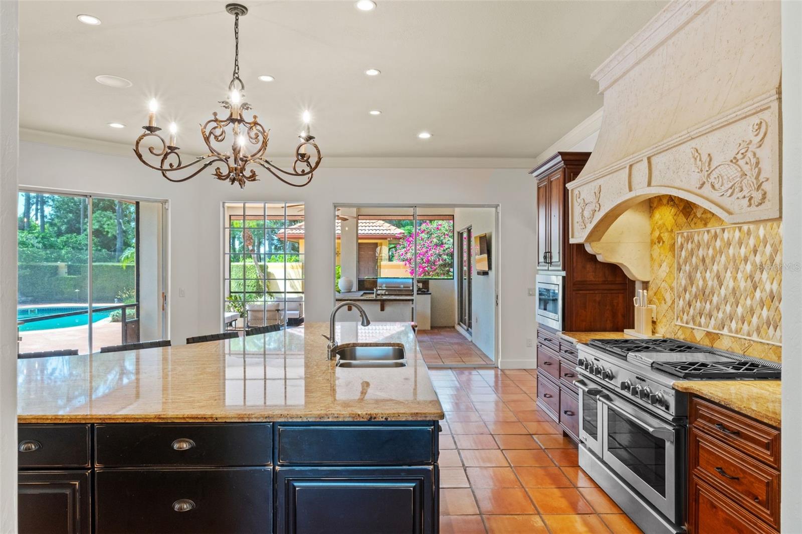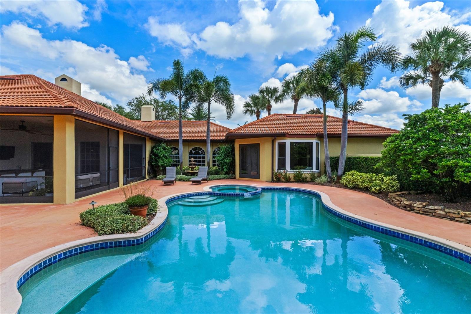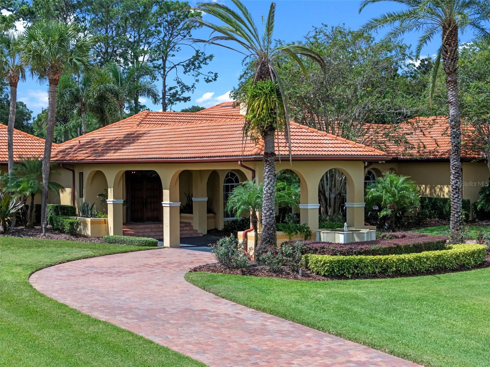 This one-of-a-kind estate in the gated Windermere Club combines timeless elegance with rare features seldom found in the area, including four garage bays—one of them separate from the rest, with an adjoining flex space that can serve as a gym, studio, or easily transform into private guest quarters or multigenerational living. A porte cochere and sweeping circular drive create a striking first impression and lead to an inviting foyer that opens to gracious formal living and dining rooms, perfect for entertaining. The primary suite is a private sanctuary, designed with pool views, a spacious sitting area, and a vestibule entry that includes a small room ideal for an office nook or personal retreat. The spa-inspired bath is beautifully appointed with dual vanities, a soaking tub, and an oversized walk-in shower, while two custom closets provide abundant storage. Equally thoughtful are the secondary bedrooms, each with its own en-suite bath. They are arranged along a wide hallway that can be closed off entirely, creating a separate wing that offers privacy and comfort for family or guests. At the heart of the home, the gourmet kitchen is both a showpiece and gathering place, featuring an expansive island, custom cabinetry, and intricate tilework beneath a statement hood, with a barn-style door leading to the pantry. The utility room includes built-in cabinetry and a utility sink for added convenience, while the family room offers relaxed living space with views that draw you outdoors. Just beyond, a patio with a charming wood trellis extends the living space and creates a perfect spot for quiet moments or intimate gatherings. The backyard was designed for resort-style living, with a sparkling pool and spa, dedicated pool bath, screened lanai, and a summer kitchen perfect for dining al fresco. Framed by lush green space and the peaceful backdrop of the former Windermere Club golf course, this residence offers a sense of privacy and serenity while being just minutes from top-rated schools, dining, shopping, and all that makes Windermere one of Central Florida’s most desirable communities.