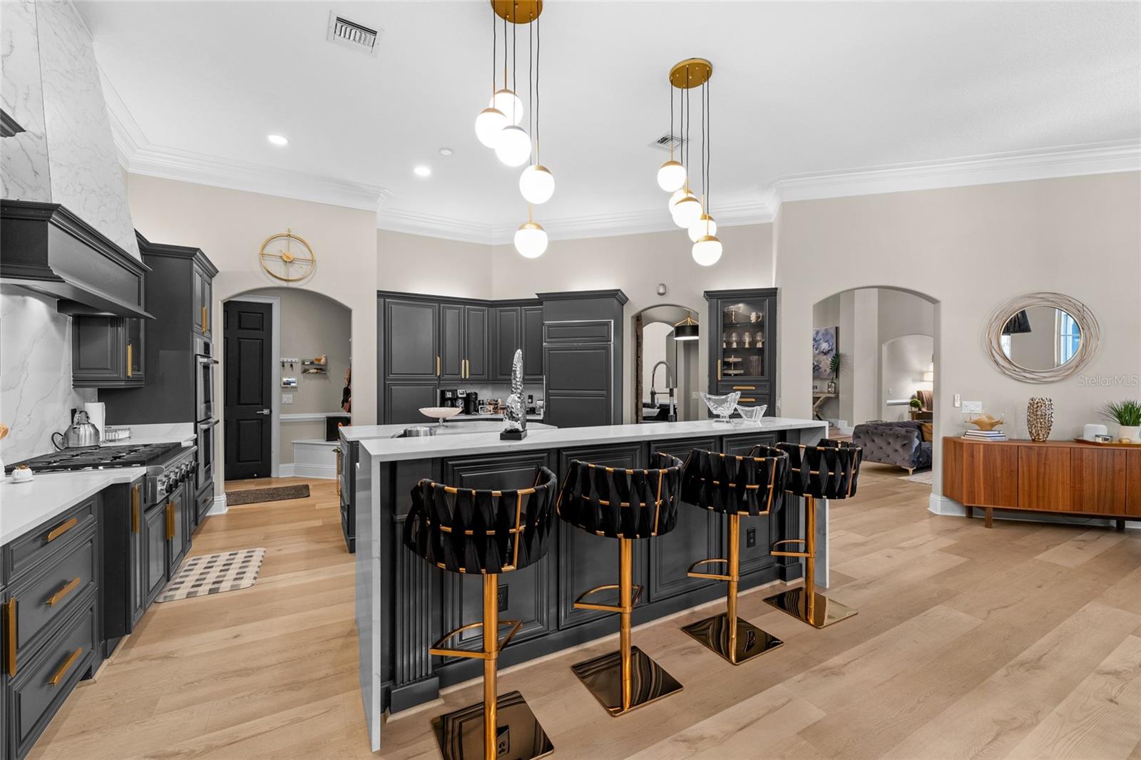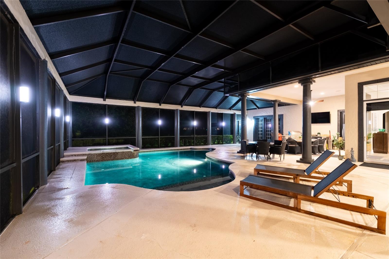 A turnkey, fully furnished golf-front home in Keene’s Pointe — ready for immediate enjoyment, not renovation. With over 4,400 square feet of living space, has been reimagined to deliver not just a home, but an extraordinary lifestyle where every detail speaks of elegance, comfort, and sophistication. Renovated, move in ready and fully furnished!!! From the moment you step through the door, you are greeted by a seamless open layout designed for both living and entertaining. The gourmet kitchen is a chef’s dream, flowing naturally into the living room with its elegant bar—a space that invites gatherings, celebrations, and unforgettable evenings. At the front of the home, a dedicated office offers the perfect balance of privacy and productivity, while a private movie room turns every night into a cinematic experience. With four spacious bedrooms, three full baths, and one half bath, the home combines functionality with refinement. The three-car garage provides both convenience and flexibility. Step outside and indulge in your own Florida oasis. A sparkling pool overlooks the 8th green of The Golden Bear Club, Jack Nicklaus’ signature golf course, offering not just a view—but a lifestyle. Whether you are perfecting your swing, soaking up the sun, or hosting by the pool, this home was designed to inspire. Life in Keene’s Pointe means more than just a beautiful home. It means the security of a guard-gated community, access to a world-class golf course, clubhouse, tennis courts, and an unrivaled sense of prestige. And when night falls, step outside to witness the dazzling Disney fireworks lighting up the sky—reminding you just how close you are to the magic