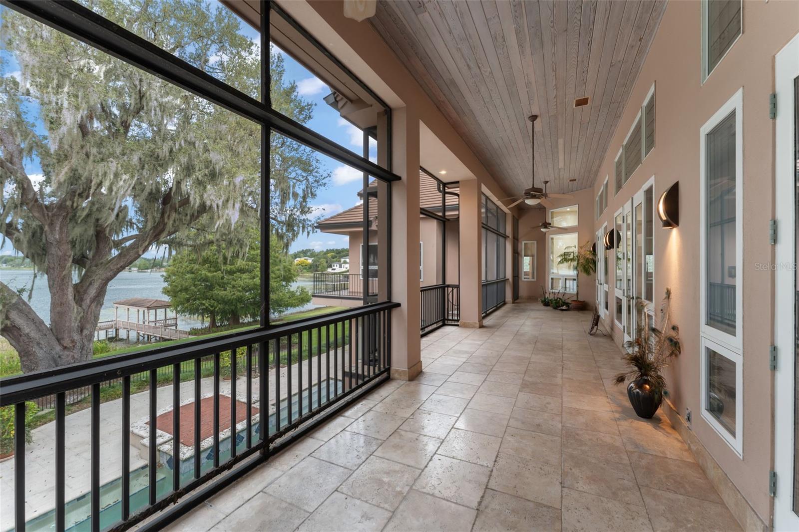 Within the gates of the renowned Isleworth Golf & Country Club, this beautiful lakefront estate captures the essence of timeless luxury and gracious living. Poised on the shores of Lake Bessie, the 5,548 square-foot residence unfolds across two levels, designed to frame sweeping water views and create effortless spaces for both grand entertaining and quiet retreat. The upper level greets guests with custom French entry doors that flow into the open formal living and dining rooms, perfectly designed for gatherings. The kitchen is spacious and inviting, offering casual dining and seamless access to the main living areas. A richly appointed library adds warmth and refinement, while two en-suite bedrooms complete this floor, including the primary suite. With its oversized windows capturing endless lake vistas, a large sitting area, exterior balcony, and an en-suite bath featuring dual vanities, a soaking tub, and walk-in shower, the primary suite is a sanctuary of light and serenity. On the lower level, the estate offers two expansive bonus areas joined by a well-equipped kitchenette. Ideal for gaming, entertaining, or working from home, both spaces connect effortlessly to the sun-drenched pool terrace—seamlessly integrating indoor luxury and outdoor living. A stunning mature oak tree anchors the property's beautiful lakefront grounds, stretching gracefully toward the water’s edge—a signature of the property’s natural beauty. Beyond the oak tree, Lake Bessie shimmers in full view, offering a breathtaking backdrop to the estate. A rare combination of elegance, versatility, and iconic setting, this residence presents a lifestyle within one of Central Florida's finest communities.