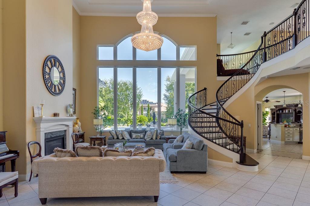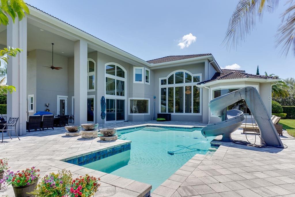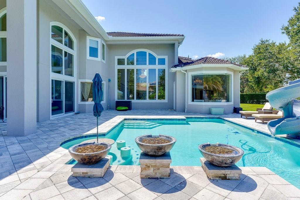 Buyer walked days before closing due to personal reasons! All inspections and milestones clean/clear!! - This exceptional Florida residence is perfectly sited on an acre within the exclusive guard-gated community of Bellaria. Thoughtfully designed to balance sophistication with comfort, the home welcomes you with an abundance of natural light streaming through broad front windows, highlighting the elegant handcrafted staircase in the foyer. The formal living and dining areas set the tone for refined entertaining, enhanced by a gas fireplace, a well-appointed wet bar, and expansive views of the sparkling pool and two-story covered porch. Just off the entry, the study provides an intimate retreat with porcelain flooring and clerestory windows, filling the space with natural light and framing serene outdoor vistas. The open-concept family room and kitchen create the heart of the home, where a wall of glass doors seamlessly blends indoor and outdoor living. The gourmet kitchen is a chef’s delight, featuring stainless steel appliances, exotic granite, custom cabinetry, tile flooring, and a spacious walk-in pantry. The first-floor master suite, thoughtfully tucked away for privacy, serves as a true sanctuary. Its spa-inspired bath is adorned with paneled cabinetry, exotic granite, a rainforest shower, soaking tub, and expansive closet areas—both beautiful and functional. Two additional en suite guest bedrooms, a versatile bonus room, and generous living and dining spaces make the main level ideal for everyday living or hosting. Upstairs, the thoughtful layout continues with three bedrooms, a loft, a sitting area, a bonus room, and even a second laundry room for added convenience. These flexible spaces adapt easily to the needs of a growing family or guests, offering opportunities for work, play, or relaxation. Blending elegance with livability, this home captures the essence of Florida living—where interiors open gracefully to resort-style outdoor spaces, making it perfect for both intimate family life and grand entertaining.