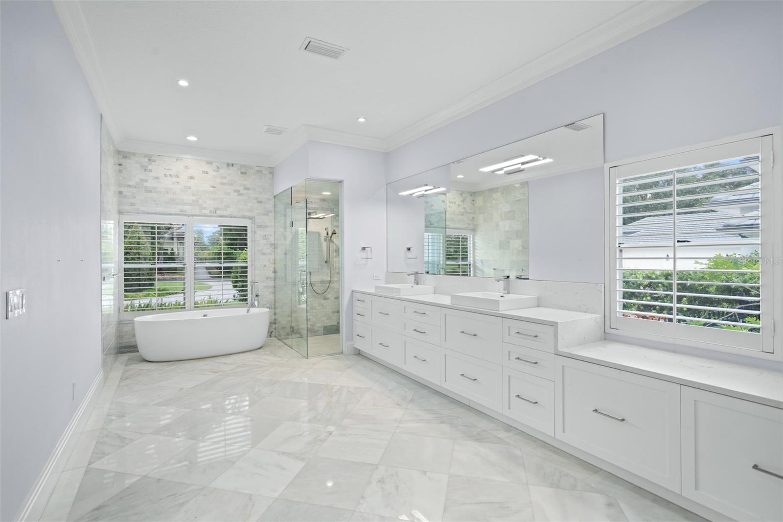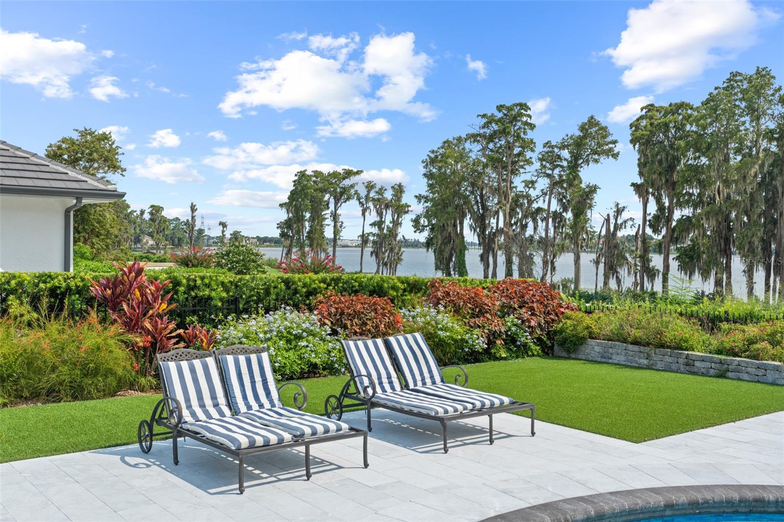 Stunning golf and lake views and beautifully updated grounds are hallmarks of this elegant Isleworth estate. Nestled along the front nine overlooking Isleworth’s 2nd fairway and beautiful Lake Chase, this two-story home spans more than 4,800 square feet and features modern finishes throughout. Beautiful porcelain tile travels throughout the main level from the spacious living room with an oversized modern built-in featuring slate stonework and lit shelves. The spacious master suite features a large sitting area and an en-suite bathroom with dual vanities, a walk-in closet, modern soaking tub and separate walk-in shower. Completing the main level are the home office, formal dining room, elegant powder bath and center-island kitchen with casual dining area. Two additional bedrooms with balcony access are on the upper level. Step outside and discover a newly reimagined outdoor living experience. The expansive pool deck has been fully updated with sleek new pavers, while fresh turf and lush landscaping create a vibrant backdrop for relaxation and entertaining. A striking glass wall encases the pool area, maximizing panoramic views of both the golf course and the lake. The outdoor kitchen has been thoughtfully upgraded with new granite, a built-in grill, pizza oven, sink, and designer lighting—seamlessly blending function with style. Enjoy evenings around the modern fire pit, take a dip in the resurfaced pool with its brand-new heater, or unwind in the extended backyard, which offers an additional 15 feet added to one side of the property. Every detail of this outdoor transformation has been designed to enhance both beauty and livability, making this property the perfect retreat for year-round enjoyment.
