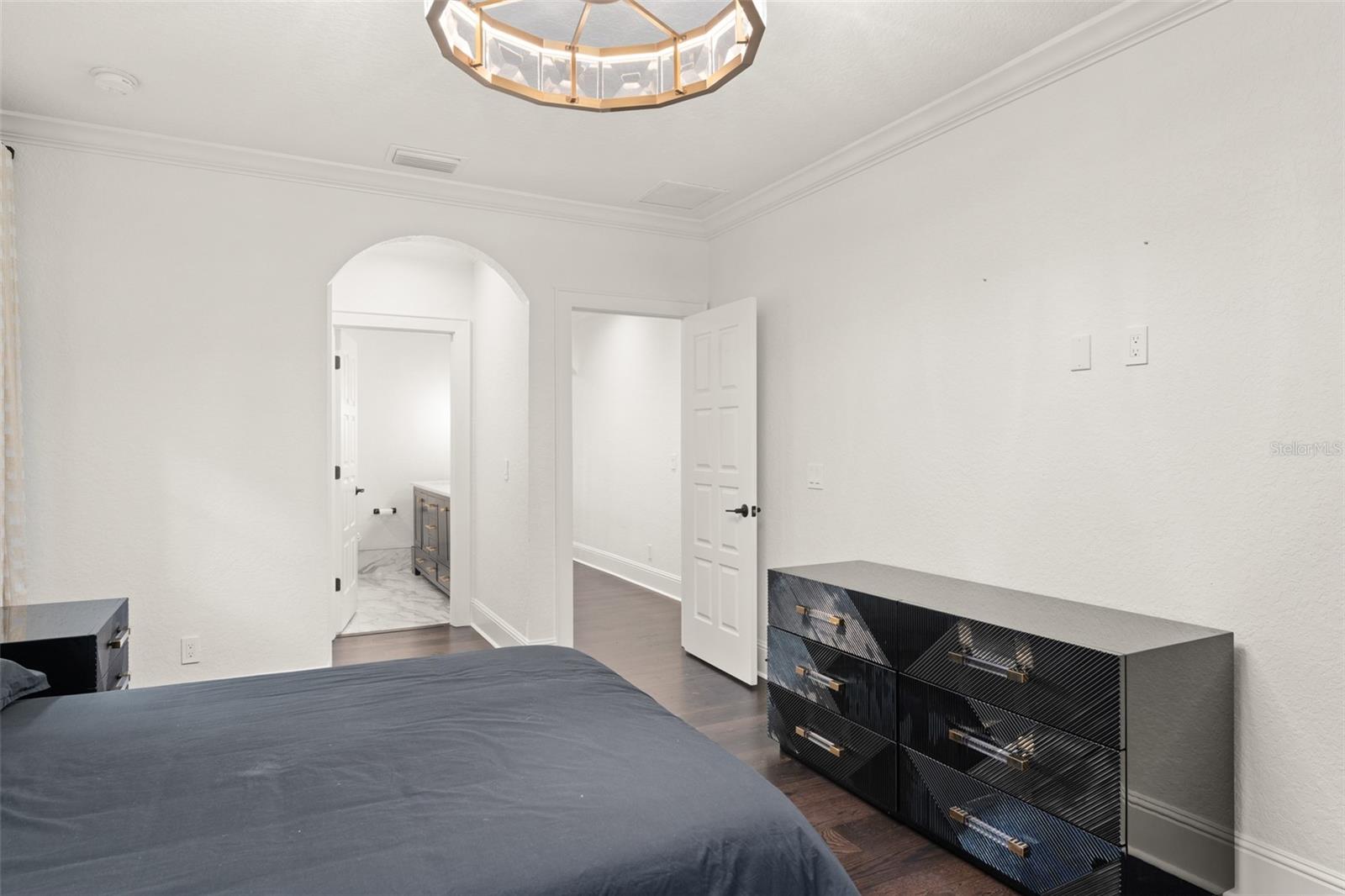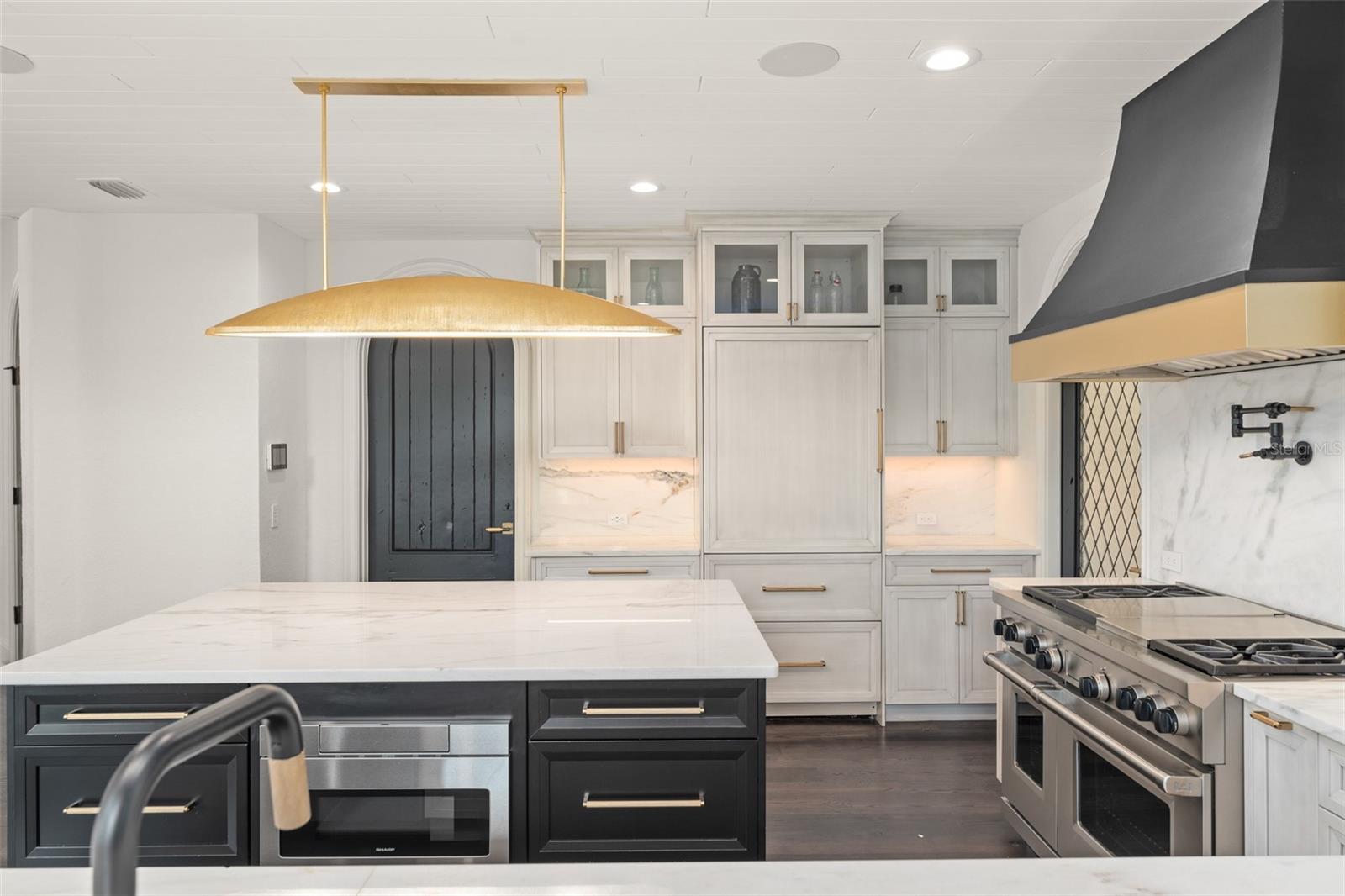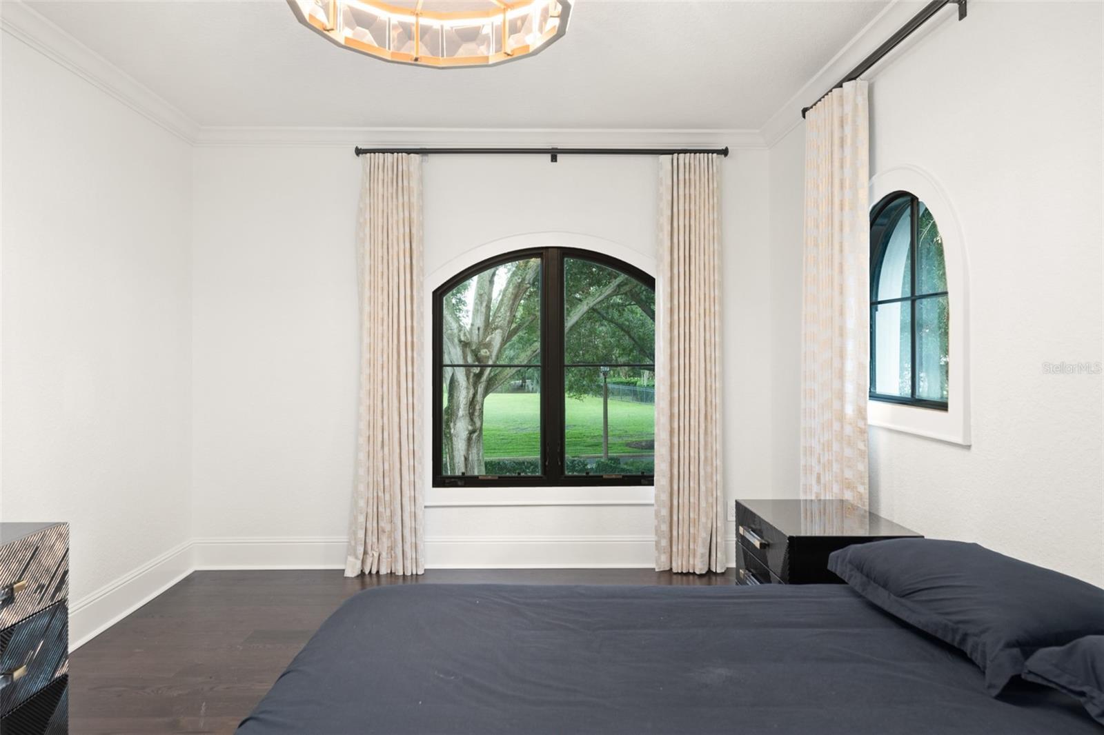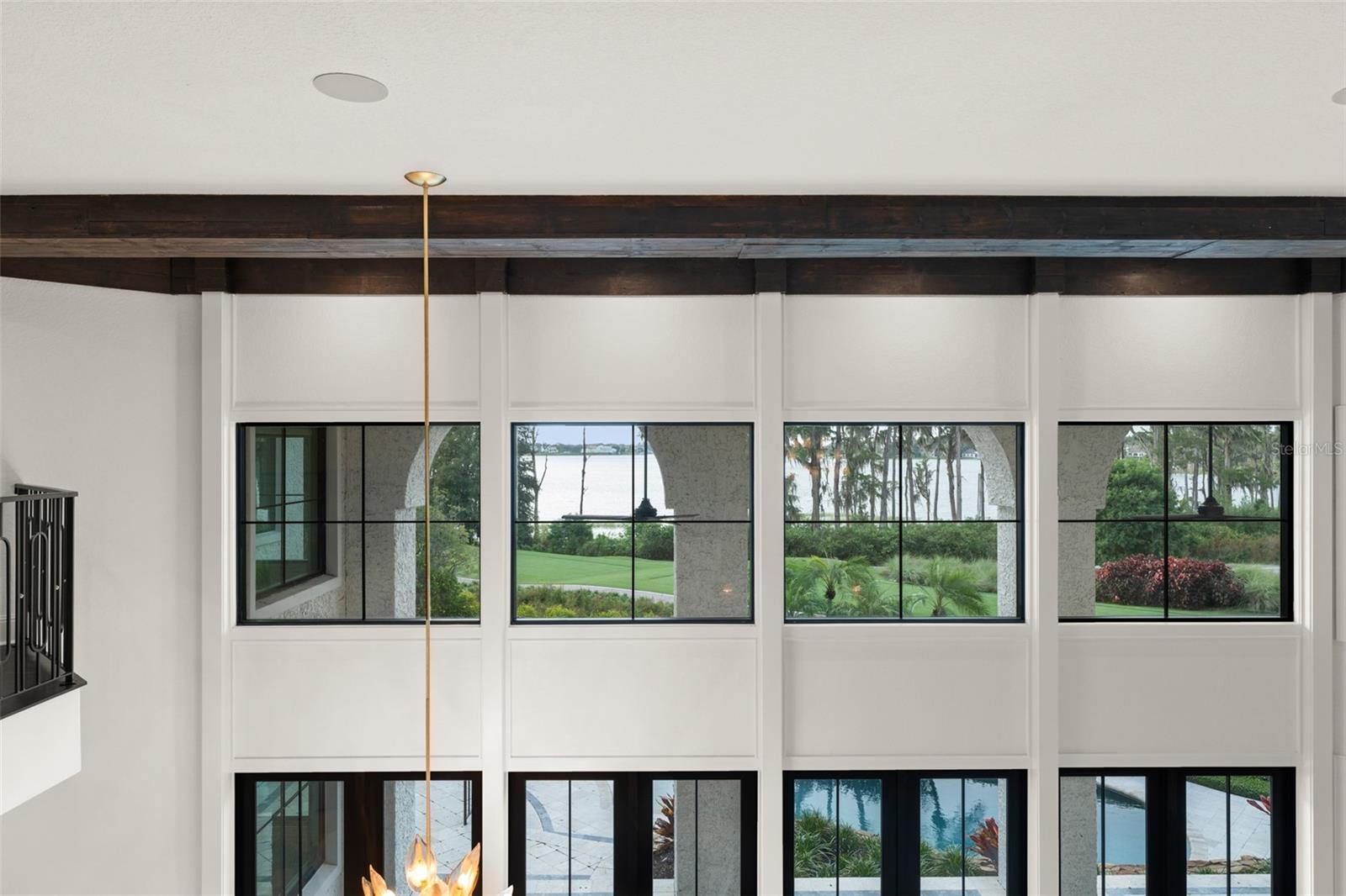 Presenting a magnificent Isleworth golf front estate with sweeping lake views, perched above holes #2 and #9 and Lake Chase, combining a completely reimagined interior with designer elegance and modern grand style. With no neighbors on three sides, this stunning home offers a unique combination of privacy mixed with rare golf and water vistas. Home recently underwent a major “spare no expense” remodel by McNally Construction and design by Debby Dearth of McNally Design using the highest quality materials combining the latest designs with timeless Mediterranean architecture. Enter to an impressive foyer and Great Room with soaring 20-foot ceilings above and basket weaved marble and wood flooring below, complemented by wood beams, stone gas fireplace with marble mantle, and shimmering chandeliers. An adjacent cocktail bar next to the dining room is fitted with Cristallo quartzite counters and a temperature-controlled wine cellar that can easily accommodate 700+ bottles of wine. The well-appointed chef’s kitchen is fully equipped with a large center island, custom wood cabinetry, Italian dolomite counter tops, Sub Zero refrigerator, and a Wolf gas range with griddle. Family room and breakfast nook are perfectly sized for everyday entertaining with vaulted ceilings, reclaimed wood floors, and access to the pool patio and summer kitchen cabana. The dramatic first floor primary retreat features picturesque windows and a luxurious spa-like bath complete with chandelier, breakfast bar with Sub Zero fridge, dual vanities, garden tub, glass shower, and French doors to a walled outdoor space. The master closet provides access to a discrete room at the top of a spiral staircase that can be a gym, second study, or hidden Pilates room. Up the main staircase are three additional bedroom suites and a movie theater. An executive office is located on the first floor. Exterior living spaces feature a large covered lanai, heated saltwater pool, full pool bath, summer kitchen with stainless steel grill, sink, beverage refrigerator, custom-built stacked stone outdoor fireplace, and nearly 300 feet of golf frontage. Notable upgrades done in 2023 include a brand new tile roof, replacement of all custom doors and windows, remodeled kitchen, bathrooms with Kohler fixtures, door hardware, cocktail bar, flooring, Control 4 smart house features for lighting, electric shades, cameras, HVAC, pool equipment, garage doors, locks, built-in sound system, pool resurface, new pool heater, landscaping, complete interior and exterior paint, and exterior gray pavers. Home is built with concrete construction on both first and second floors. The 600-acre Isleworth community, surrounding the Butler Chain of Lakes, is a residential enclave that sets the standard of excellence for Central Florida living. Isleworth Golf & Country Club, which is located within the community, is recognized as one of the Top 100 Platinum Clubs of the World offering separate membership opportunities that provide access to golf, tennis, fitness, Clubhouse dining and social events, swimming in the resort-style pool and sundeck, dock, and an abundance of activities. Enjoy a lifestyle defined by casual elegance in a setting that sets the standard for luxury living.