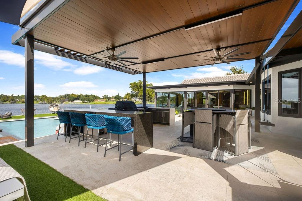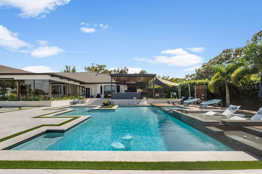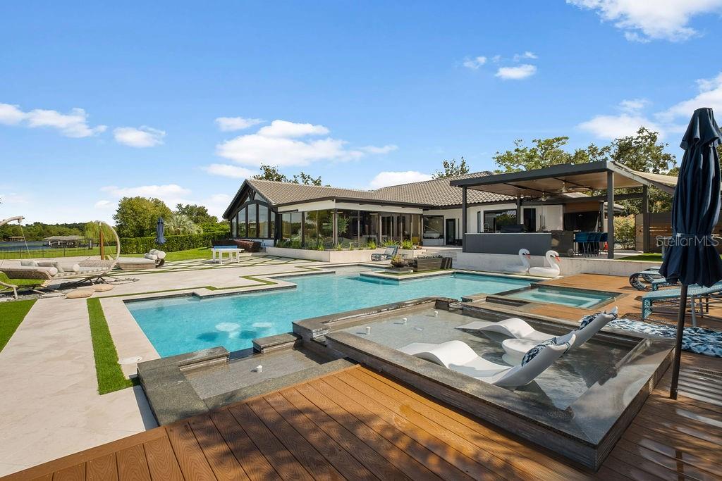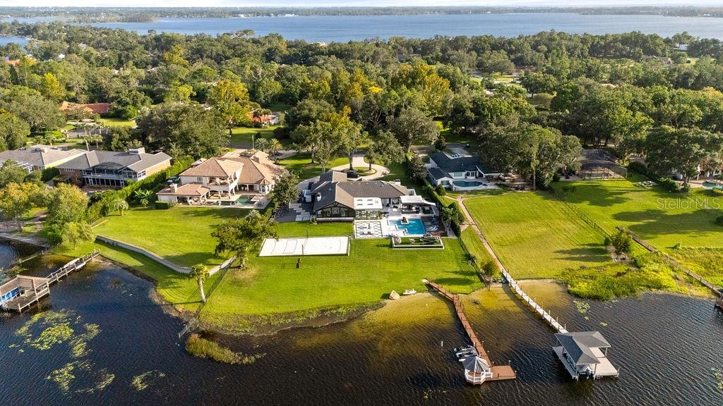 Welcome to your private sanctuary, where every sunrise and sunset dances over the shimmering waters of Lake Crescent. Nestled within the exclusive gated community of Lake Crescent Reserve, this lakefront masterpiece offers just under 6,000 square feet of newly remodeled, reimagined luxury living. Positioned on a pristine oversized lot surrounded by lush landscaping and majestic oak trees, the home enjoys unobstructed 270-degree lake views with no visible neighbors—a rare combination of privacy, serenity, and natural beauty. Completely transformed inside and out, the home showcases a 2023 roof, stunning exterior renovation, and an open-concept floor plan that enhances both light and flow. The dining area was thoughtfully opened up to create a larger, more connected entertaining space, beautifully complemented by modern light fixtures and exquisite custom finishes throughout. Your resort-style backyard oasis includes a beach tennis court, sparkling pool with waterfalls, relaxing spa, and a fully equipped summer kitchen beneath a wood-look aluminum pergola—perfect for hosting unforgettable gatherings. Step through custom metal doors with glass inlays into a grand entry crowned with a wood-barrel ceiling. The formal living room frames breathtaking views of the pool and lake, while high-end craftsmanship shines throughout—from the stone-arch kitchen with a 15-foot island and glass wine wall to the great room’s 33-foot glass wall, soaring 17-foot wood-beamed ceilings, and elegant gas fireplace. The luxurious primary suite is a true retreat, featuring a two-sided coral stone fireplace, window bench overlooking the lake, and a spa-inspired bath with courtyard views, soaking tub, glass shower, and custom walk-in closet. Step outdoors to an expansive covered lanai ideal for "al fresco" dining and lounging. Whether you’re gathered around the firepit, enjoying sunset cocktails by the infinity-edge pool, or watching native wildlife from your private dock, every corner of this property radiates tranquility and sophistication. Thoughtfully updated with major system enhancements—including two newer A/C units, a new septic tank (2025), new irrigation and lake pump (2022), new hybrid water heater, updated pool motor (2022), salt system, and lighting (2025)—this home delivers the ultimate blend of luxury and comfort. Located just minutes from the Town of Windermere, Downtown Winter Garden, and Winter Garden Village, with easy access to major highways and world-class attractions—this lakefront estate defines Florida luxury living at its finest.