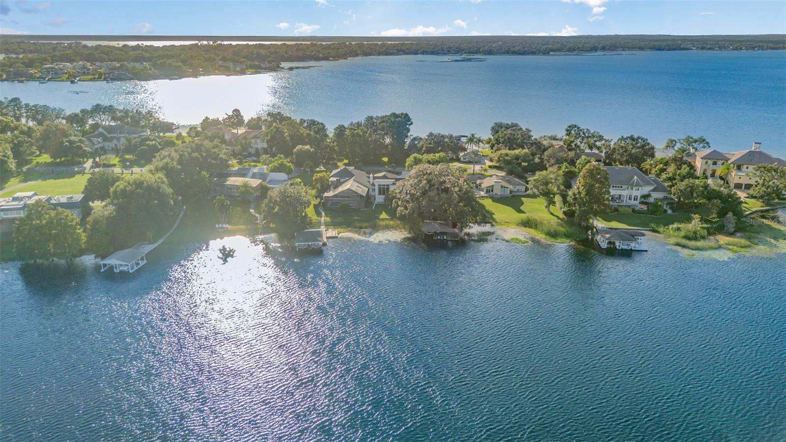 One or more photo(s) has been virtually staged. EXPERIENCE LUXURY LAKEFRONT LIVING in this rare Mediterranean-style estate on 3.5 private acres in Windermere—HOA FREE! This stunning 5-bedroom, 4-bath home features a custom heated pool, three-level design (and a Florida value with a “basement-like” floor), and parking for 6+ vehicles plus a 2-car carport. From the moment you arrive, the home’s fairytale architecture, vaulted ceilings, and lush gardens set the tone for elegance. The gourmet kitchen impresses with granite counters, stainless appliances, double ovens, gas cooktop, a large island, and unforgettable lake views. Enjoy true indoor–outdoor living with retractable glass doors opening to the patio and pool. A private home theater with wet bar and sky-view window makes the perfect retreat, while the luxurious primary suite offers a fireplace, balcony office, oversized closet, and spa-style bath. The lower-level doubles as a full living space with a second kitchen, ideal for entertaining or creating a private in-law suite with separate entrances. Step outside to your screened heated pool, flower-filled courtyard, and private boat dock equipped with two boat lifts, jet ski lifts, and pontoon space—a true lakefront dream. Recent updates include a newer roof, exterior paint, newer HVAC units, and a 2024 water heater. Located minutes from downtown Windermere, Dr. Phillips, golf, dining, theme parks, and shopping. Luxury, privacy, and lakefront living come together beautifully in this one-of-a-kind Windermere estate—your dream lifestyle awaits. One or more photos have been virtually staged.