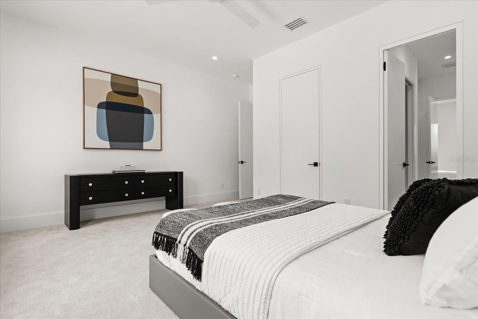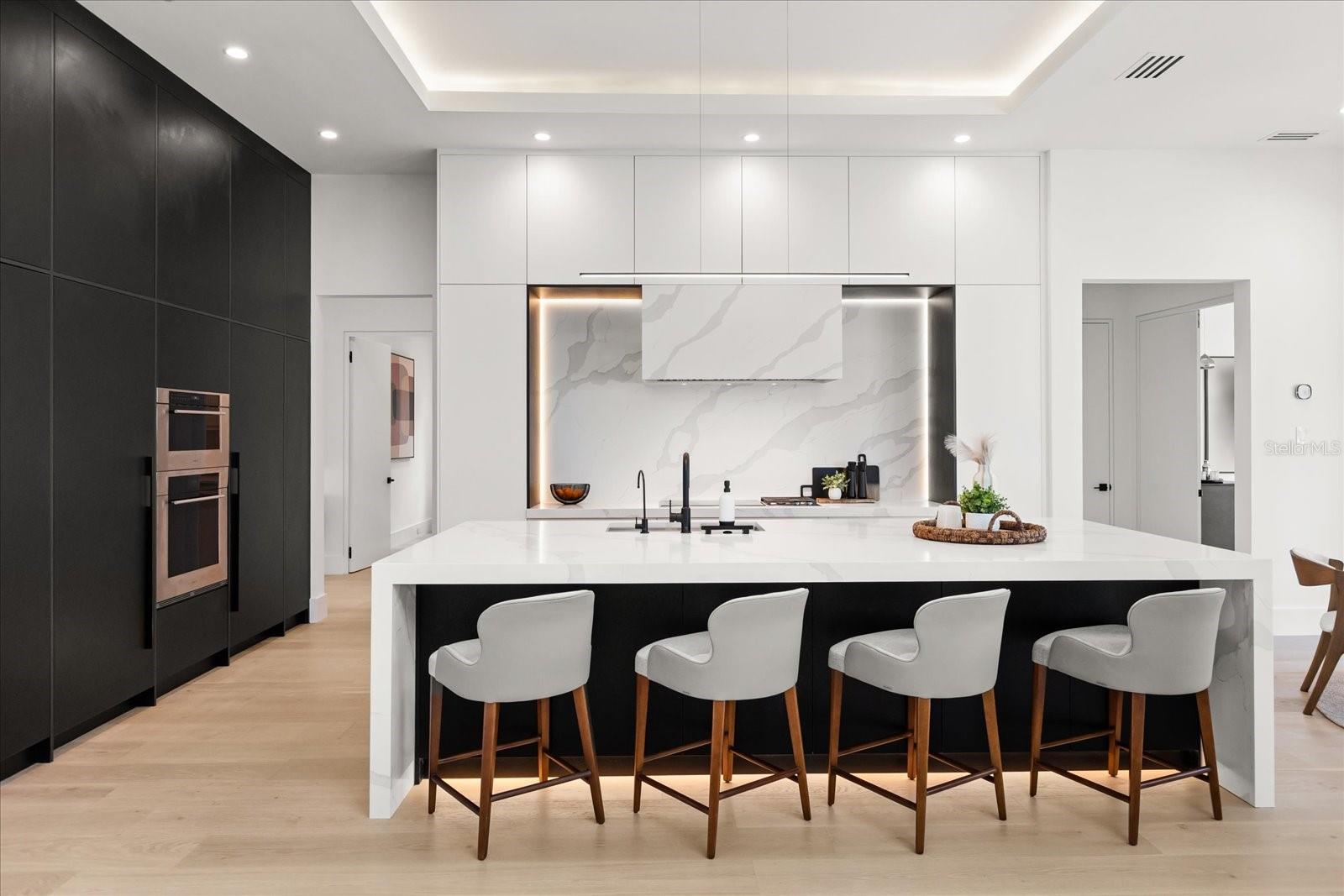 Welcome to a rare modern estate in an intimate gated enclave. Imagine 6,816 square feet of fully furnished luxury with six bedrooms, six full baths and two half baths. Every detail of this custom-built masterpiece was designed for those who value privacy, prestige and perfection. Go inside to discover European white oak flooring, soaring ceilings and designer-curated finishes that define understated elegance. The chef’s kitchen features Wolf appliances, an oversized island, and custom cabinetry that flows seamlessly into open-concept living and dining spaces, ideal for entertaining or effortless daily living. The first-floor primary suite is a sanctuary of its own, with a two-story boutique-style dressing room and a spa-inspired bath showcasing dual vanities, a freestanding soaking tub and a double rainfall shower beneath a skylight. Upstairs, each bedroom offers its private en suite, including a flexible Jack and Jill layout. Additional highlights include a private theater, executive office, and a detached casita ideal for guests or multigenerational living. Outdoors, experience your resort retreat, a negative-edge pool with cascading waterfalls, spa jacuzzi, covered lanai, and fully equipped outdoor kitchen built for year-round entertaining. Even the garage is a masterpiece, designed to house six cars and a boat, or up to fifteen vehicles with lifts. In a small, exclusive gated community, this property delivers a balance of modern sophistication and timeless comfort. Homes of this caliber rarely become available. Schedule your private showing today and experience why this estate stands in a class of its own.