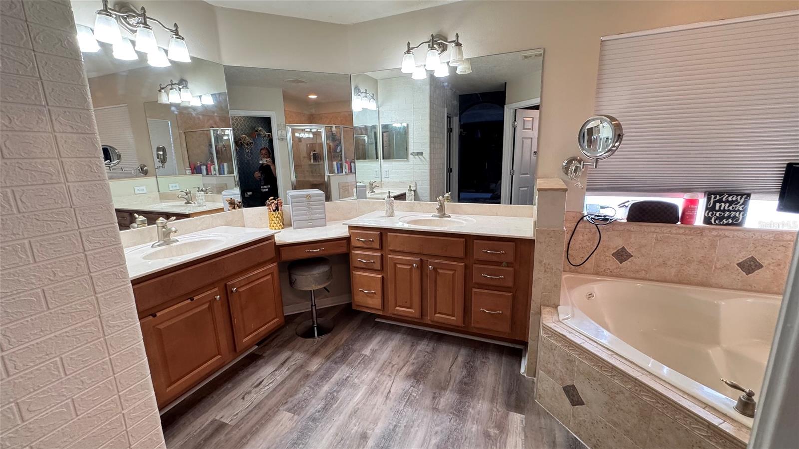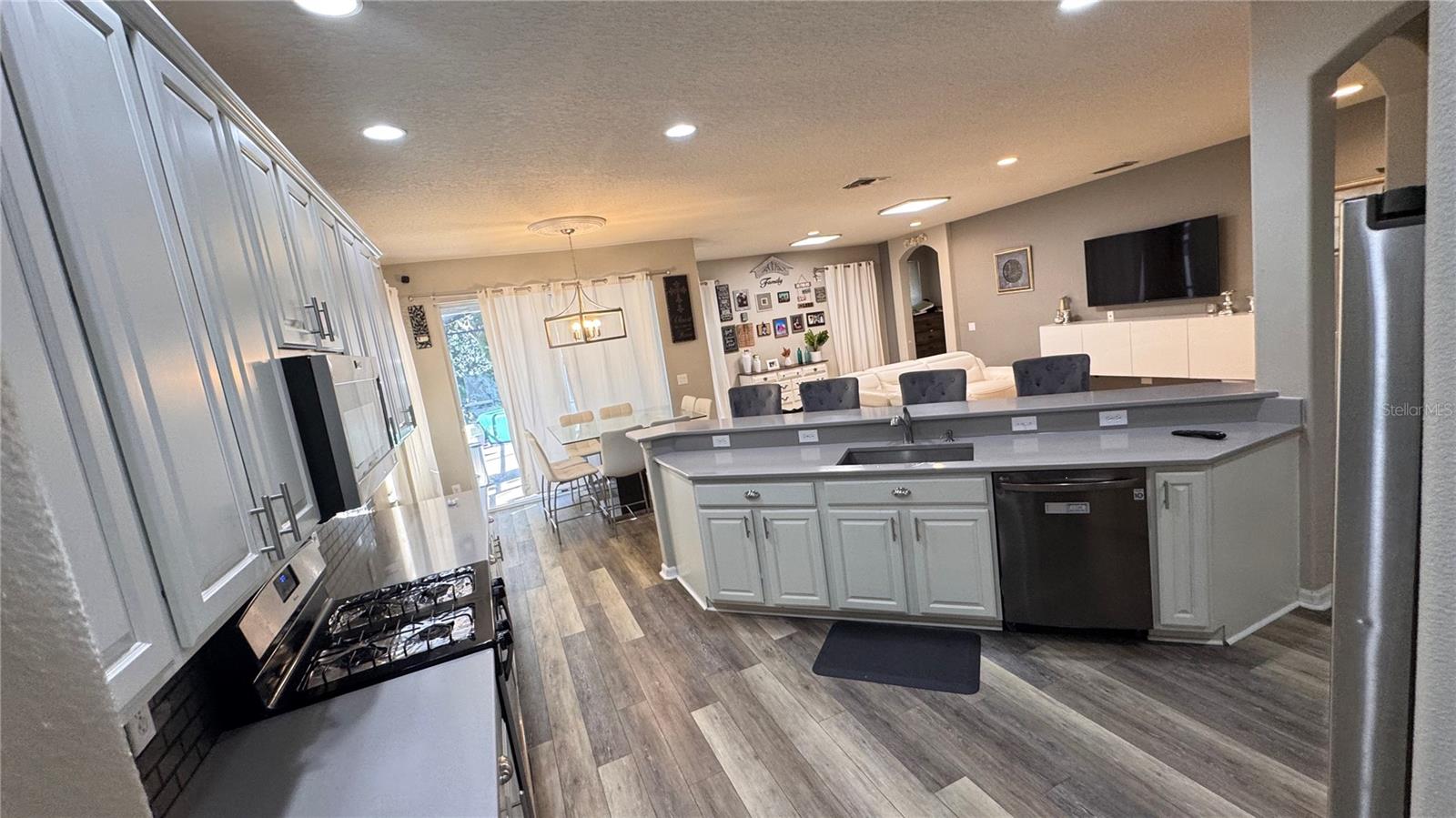 This beautiful MOVE-IN-READY two-story home is located in the highly desired community of Summerport in Windermere! The Wow factor begins the moment the front door opens to a towering cathedral ceiling making for a dramatic and elegant entry into the main living area. The open floor plan creates a seamless flow throughout the home, whereby the family room opens to the kitchen and dinette space, with brand New beautiful Gray Travertine throughout all countertops, that provides the perfect entertaining opportunity! A freshly painted neutral color palette, additional recessed lighting added downstairs, and luxury vinyl flooring in all the entertaining areas are just some of the exceptional design elements. Natural gas range and stainless-steel appliances, coffee/wine station, and a huge center island with breakfast bar creates a gourmet kitchen. Large windows and sliding glass doors allow for an abundance of natural lighting and beautiful views overlooking a screen enclosed Lanai with a gazebo to enjoy relaxing evenings. Upstairs are four of the five bedrooms and two full baths, completely Renovated with Galaxy stones From. floor to ceiling, and other bathroom renovated also with High technology toilet flushing by itself ; the fifth guest bedroom is located on the first floor with direct access to the third full bathroom. All Flooring New and recently changed upstairs. The Primary Suite boasts an enormous walk-in closet, and en-suite with double bowl vanity, private water closet, a large soaking tub and separate shower stall. The upstairs Theater with 4 cinema chairs is a great place for movies and popcorn with an oversized 9' projection screen! 2 New Air Conditioners-1 replaced in 2021, 2nd unit replaced in June 2022. Brand New Roof Sept /2023 (Lifetime warranty) Summerport residents enjoy the beautiful community Clubhouse with an oversized swimming pool, tennis/pickleball and basketball courts, workout room, and walking/jogging paths. Located in TOP RATED school zones, this fabulous home is close to all major shopping and boutiques, fine dining as well as Disney attractions with easy access to Downtown Orlando and the Orlando International airport.