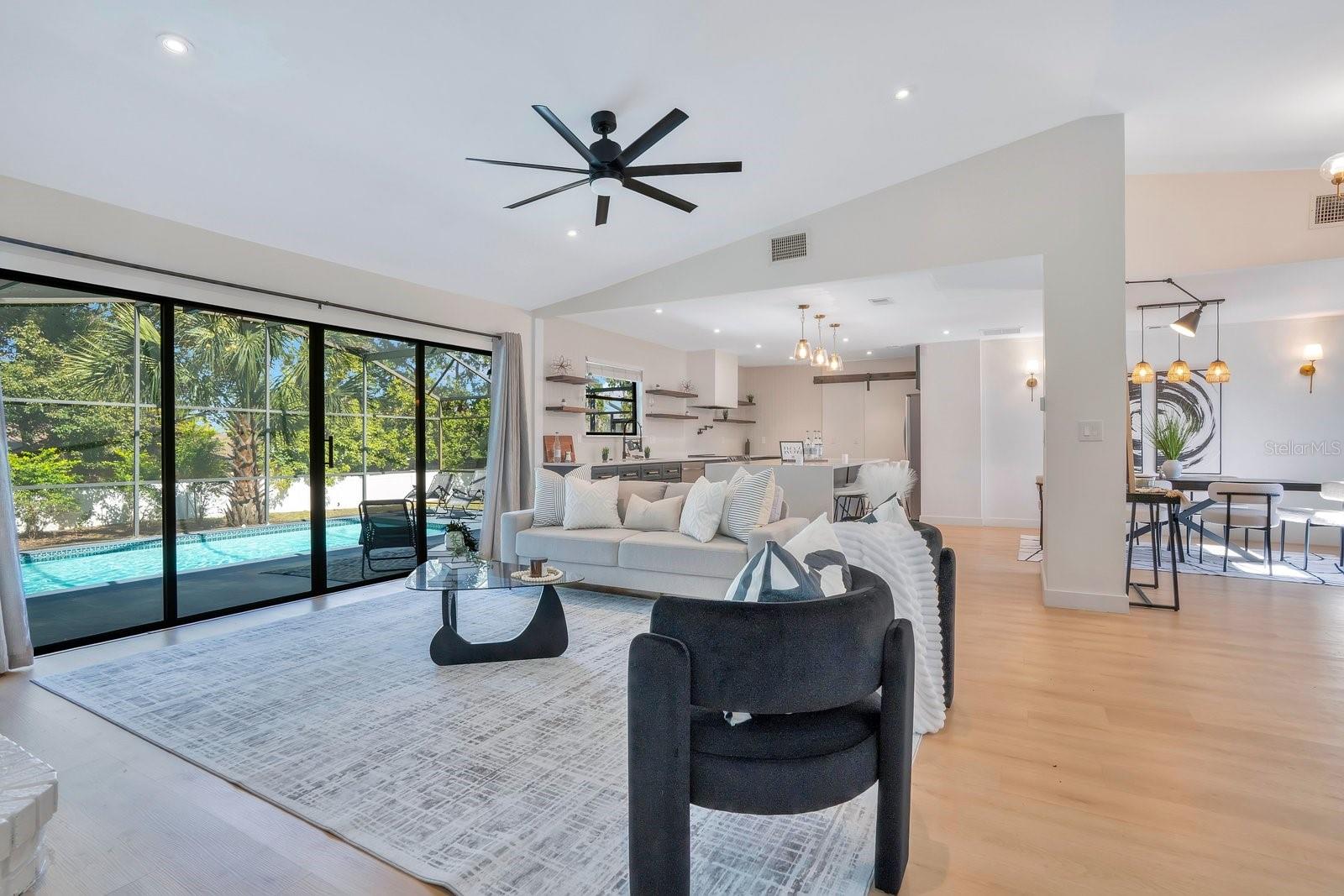 Here is an opportunity to truly make this exceptional 3-bedroom, 2-bath pool home your own in the heart of Windermere. Offering 1,784 sq ft of fully renovated living space, this residence features a refined open-concept layout with high-end vinyl flooring throughout, a statement kitchen with an oversized waterfall-edge island, and a private attached office framed by custom barn doors. Set on a spacious lot, the outdoor living experience feels like a private resort with a saltwater pool, fully enclosed screened area, and an outdoor hot shower, ideal for entertaining or everyday enjoyment. Thoughtful upgrades include a brand-new roof (2025), HVAC replacement, and updated plumbing completed during renovation. The property also offers space to accommodate a boat or small RV along the side of the home with access to the Butler Chain of Lakes, and is ideally located minutes from shopping, dining, everyday conveniences, and zoned for highly rated schools within a highly desirable community.