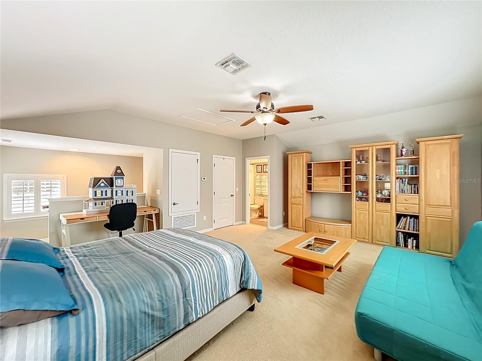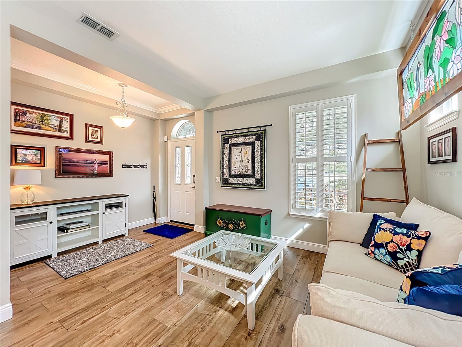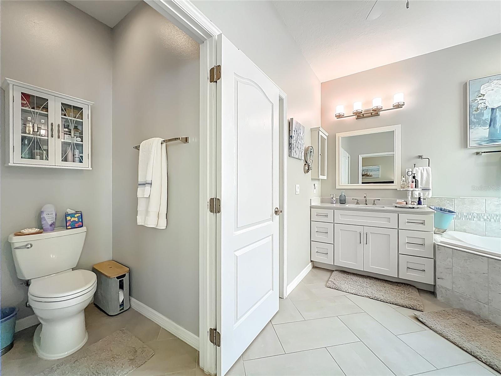 Beautiful Kensington model by Ashton Woods in desirable Lakes of Windermere with a view of scenic POND from your front porch ! This home features 4 bedrooms, 3.5 bathrooms plus an upstairs multi purpose bonus room with full bathroom (currently used as a 5th bedroom), screened back porch overlooking fenced in brick paver patio with grass area for dogs, aluminum fencing and privacy hedge. Rear alley access to two car garage with expanded driveway. You enter the combo living room/dining room which leads to a huge kitchen with island, breakfast bar plus butler's pantry which can be used for beverage center perfect for entertaining ! The utility room adjacent to the kitchen has cabinets for storage, rod to hang clothes, and barn door. ALL APPLIANCES STAY ! There is room for a big dining table and chairs in the dinette between the open kitchen and family room and 1/2 bathroom off family room for guests. The spacious master bedroom suite has double door entry, walk in closet, and the remodeled & upgraded master bathroom has dual sinks plus separate tub & custom shower. 3 guest bedrooms with bathroom are in a separate wing from the master bedroom. This move in condition home has been lovingly maintained, updated and upgraded with amazing features like a SOLAR POWER SYSTEM (installed 2023 & you only pay $33/month TOTAL to connect to grid), PROGRAMMABLE ROOF LIGHTING (2023), NEW ROOF & GUTTERS (2022), REPLACED ALL WINDOWS ON 1st FLOOR (2022) with Renewal by Anderson windows, custom pantry in kitchen and entertainment center with lighting in the family room, wood look tile throughout home (except in bedrooms & bonus room) for easy care, ETC. List of improvements with dates & costs available. Lakes of Windermere is a charming & family friendly neighborhood with mature trees, community pool, tennis courts, playground, basketball court, volley ball, soccer field, community dock, and nearby dog park, shopping, and restaurants. Walk out front and you can see the nightly Disney fireworks !