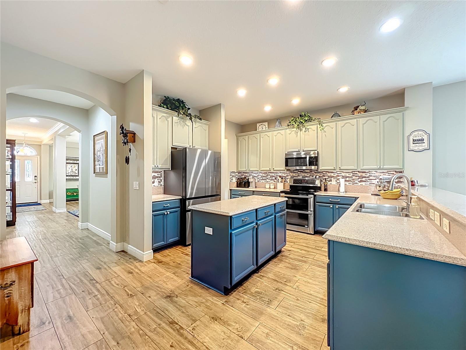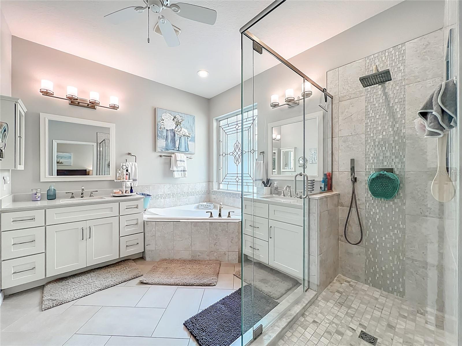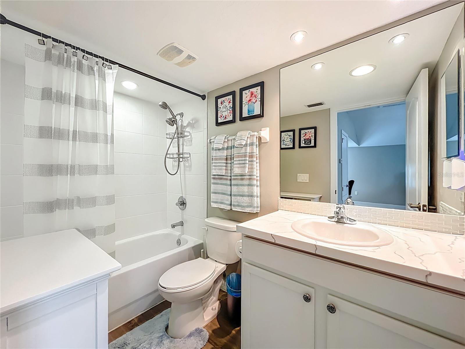 Beautiful Kensington model by Ashton Woods in desirable Lakes of Windermere with a view of scenic POND from your front porch ! This home features 4 bedrooms, 3.5 bathrooms plus an upstairs multi purpose bonus room with full bathroom (currently used as a 5th bedroom), screened back porch overlooking fenced in brick paver patio with grass area for dogs, aluminum fencing and privacy hedge. Rear alley access to two car garage with expanded driveway. You enter the combo living room/dining room which leads to a huge kitchen with island, breakfast bar plus butler's pantry which can be used for beverage center perfect for entertaining ! The utility room adjacent to the kitchen has cabinets for storage, rod to hang clothes, and barn door. ALL APPLIANCES STAY ! There is room for a big dining table and chairs in the dinette between the open kitchen and family room and 1/2 bathroom off family room for guests. The spacious master bedroom suite has double door entry, walk in closet, and the remodeled & upgraded master bathroom has dual sinks plus separate tub & custom shower. 3 guest bedrooms with bathroom are in a separate wing from the master bedroom. This move in condition home has been lovingly maintained, updated and upgraded with amazing features like a SOLAR POWER SYSTEM (installed 2023 & you only pay $33/month TOTAL to connect to grid), PROGRAMMABLE ROOF LIGHTING (2023), NEW ROOF & GUTTERS (2022), REPLACED ALL WINDOWS ON 1st FLOOR (2022) with Renewal by Anderson windows, custom pantry in kitchen and entertainment center with lighting in the family room, wood look tile throughout home (except in bedrooms & bonus room) for easy care, ETC. List of improvements with dates & costs available. Lakes of Windermere is a charming & family friendly neighborhood with mature trees, community pool, tennis courts, playground, basketball court, volley ball, soccer field, community dock, and nearby dog park, shopping, and restaurants. Walk out front and you can see the nightly Disney fireworks !