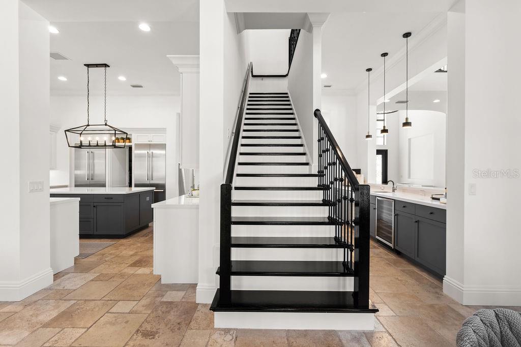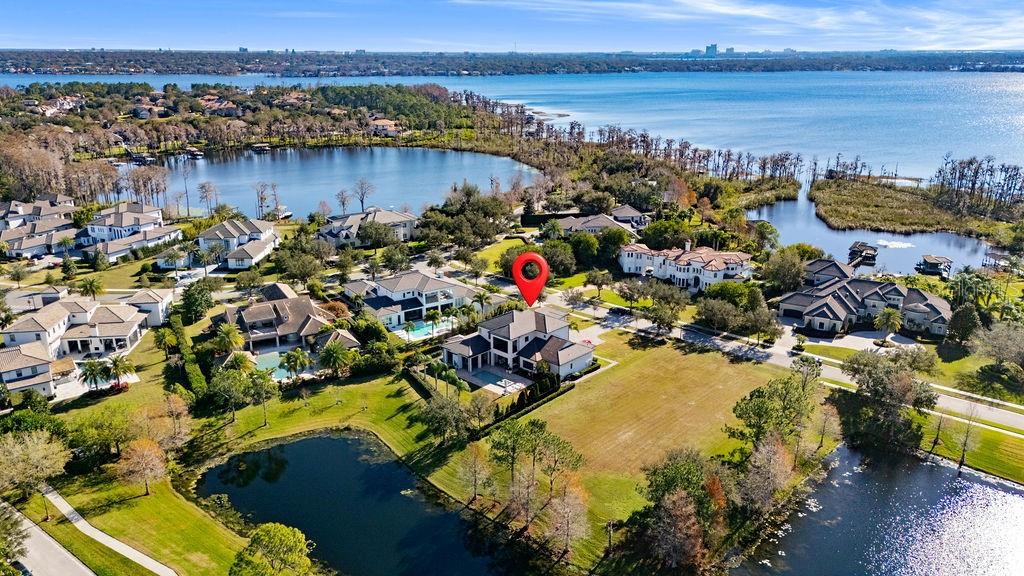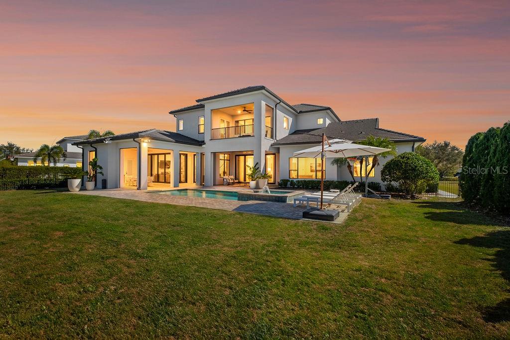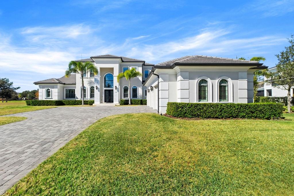 Welcome to an extraordinary custom residence located within the prestigious guard-gated golf community of Keene’s Pointe, one of Windermere’s most sought-after luxury enclaves. Built in 2014 and set on an expansive 0.51-acre, this estate offers over 5,000 square feet of refined living space, thoughtfully designed to balance elegance, comfort, and modern functionality. The property enjoys a rare premium setting with serene pond views wrapping both the rear and side of the home, creating a private, picturesque backdrop rarely found within the community. The residence features 5 bedroom suites, including a luxurious primary suite on the main level along with an additional first-floor guest suite, ideal for multigenerational living or extended visitors. Three spacious ensuite bedrooms are located upstairs, each offering comfort and privacy. At the heart of the home, the chef’s kitchen is a true showpiece, appointed with top-of-the-line appliances, custom cabinetry, an oversized island, and seamless flow into the main living and entertaining areas. Expansive windows and sliding glass doors flood the interiors with natural light while framing tranquil water views. Outdoor living is equally impressive, highlighted by a beautiful pool and spa, an extended brick-paver lanai, and a fully equipped summer kitchen, all designed for year-round Florida entertaining. The oversized yard, enhanced by the half-acre lot and pond frontage, provides both privacy and space rarely available in Keene’s Pointe. Additional highlights include: • 3-car garage • High ceilings & architectural detailing • Hidden pantry • Office on the 1st floor • Gas fireplace in the family room and outdoors • Modern transitional finishes throughout Residents enjoy 24-hour guard-gated security, lush landscaping, private roads, and optional membership to the Golden Bear Club, featuring golf, dining, fitness, tennis, and social amenities. Ideally located near top-rated Windermere schools, fine dining, shopping, and major roadways, this exceptional estate represents the pinnacle of luxury living in one of Central Florida’s premier golf communities.