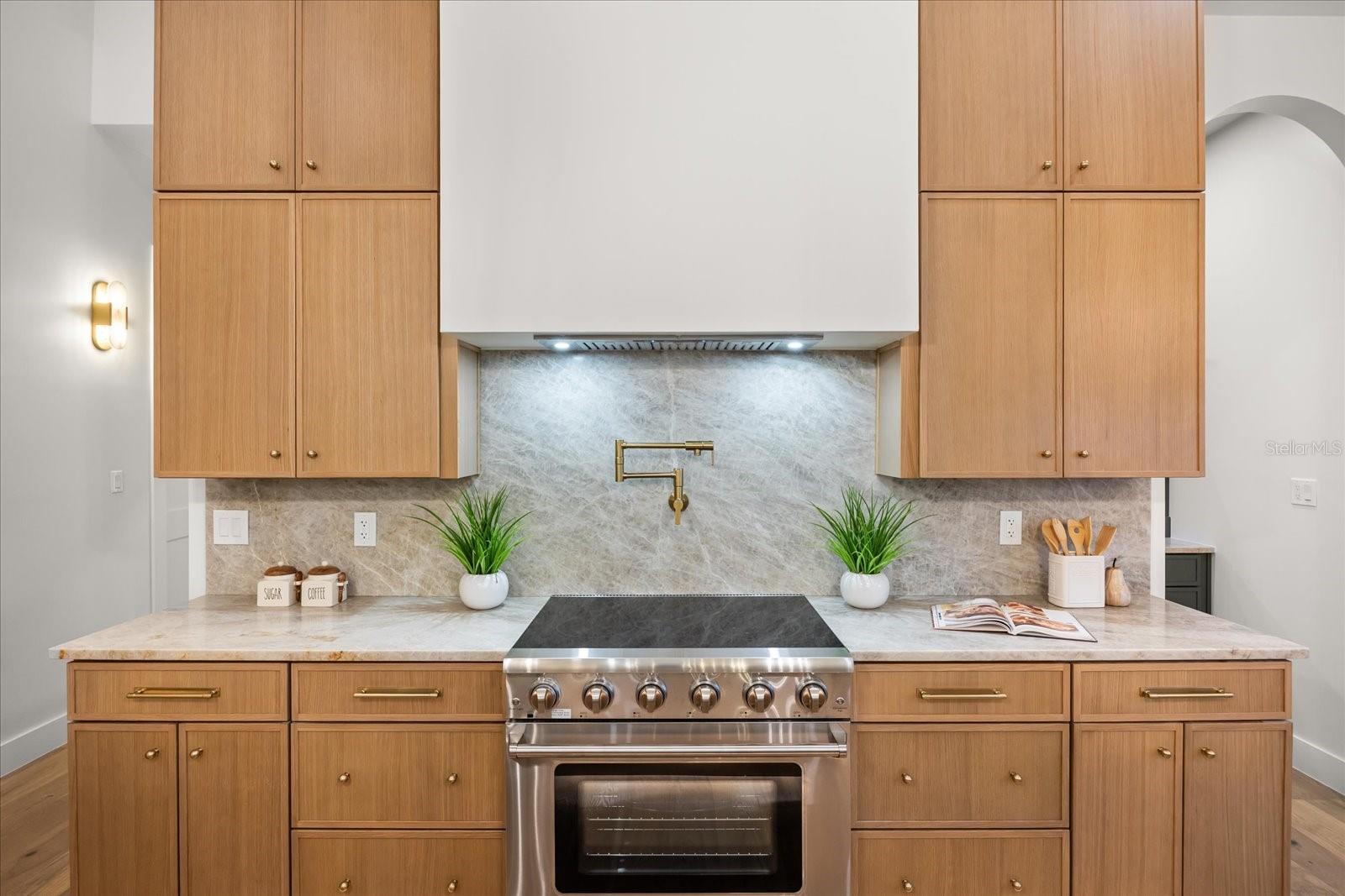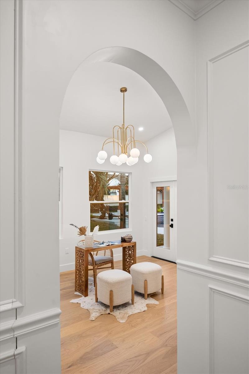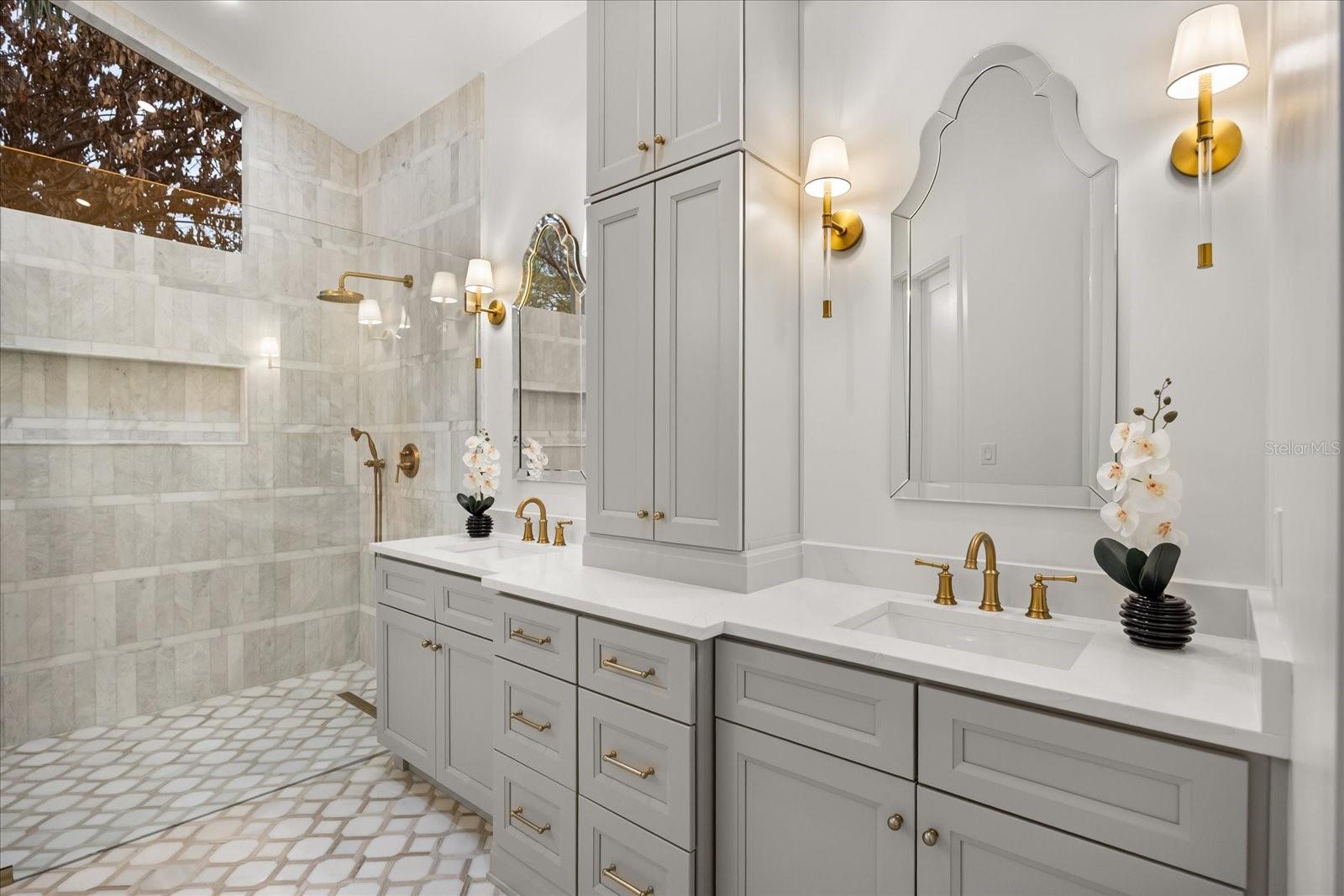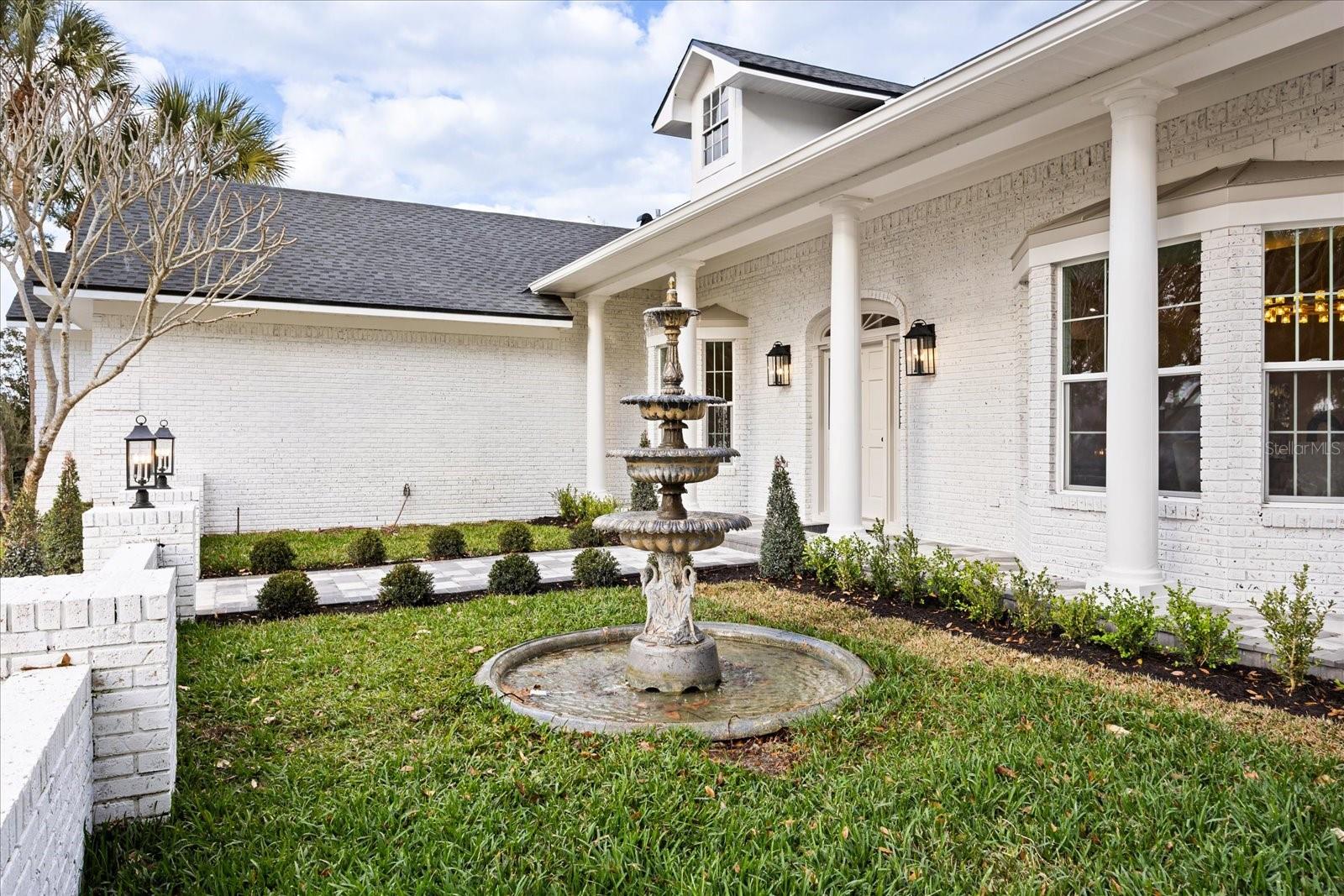 Villa Casablanca | Luxury Windermere Estate on 1-Acre: Some homes are built. Villa Casablanca was transformed. Set on a rare private acre within one of Windermere’s most privately held enclaves — an address defined by distinguished residents and legacy properties — this white-painted brick estate makes an immediate architectural statement. A circular motor court, tiered fountain, and mature canopy trees establish presence before you ever step inside. What unfolds within is architectural theater. Vaulted ceilings rise to a dramatic 14-foot peak as skylights and expansive double-pane windows flood the interiors with natural light. A sculptural brushed brass chandelier crowns the volume, while a full-height stone fireplace ascends as the focal point. French glass doors frame panoramic views of the private rear oasis — pool, pergola, and mature canopy beyond — creating a seamless connection between interior grandeur and outdoor serenity. Bay windows overlook the fountain and motor court, creating a balanced dialogue between arrival and retreat. The formal dining room emerges as its own architectural vignette — a brass chandelier echoes the geometry of the great room. The chef’s kitchen commands attention. A grand Taj Mahal quartzite island defines the center. White oak cabinetry spans floor to ceiling. The Thor range and sculpted hood rise against a full-height quartzite backdrop, pot filler aligned with precision, Viking refrigeration integrated opposite. Glass pendants hover overhead. Every finish carries presence. The scullery unfolds as a hidden design moment — unexpected, elevated, and unforgettable. Deep olive custom cabinetry, textured tile, LED-lit shelving, beverage refrigeration, and layered storage make it as functional as it is striking. A split plan introduces the primary suite — vaulted, private, composed. A sculptural chandelier anchors the ceiling while tailored wall moldings define the room. Dual concealed walk-in closets preserve symmetry. The primary bath is a statement of design: matte stone soaking tub beneath clerestory light, full-height stone extending into a curbless marble shower, dual tailored vanities with brushed brass accents, and a custom patterned marble floor grounding the space in immersive opulence. An adjoining vaulted extension captures pool views and opens to the lanai. The powder room shifts tone — charcoal paneled walls, sculptural marble sink, polished brass fittings, arched mirror, and bold tile creating a rich, moody presence. A formal office behind glass French doors offers focused productivity and polished presentation. An arched corridor leads to the secondary wing where three additional bedrooms offer privacy and versatility. One suite provides direct exterior access, functioning as a cabana retreat with its own en suite bath — ideal for guests or seamless indoor-outdoor living. Outdoors, the property transforms into a private compound. A covered veranda spans the rear with classical columns and herringbone flooring. The fully equipped summer kitchen, custom wood pergola lounge, expansive lawn, fresh sod, rear gate access, and lush landscaping offer scale impossible to replicate in today’s market. Villa Casablanca is not comparable to new construction. It is rarer. Extensively renewed inside and out. Schedule your showing today.