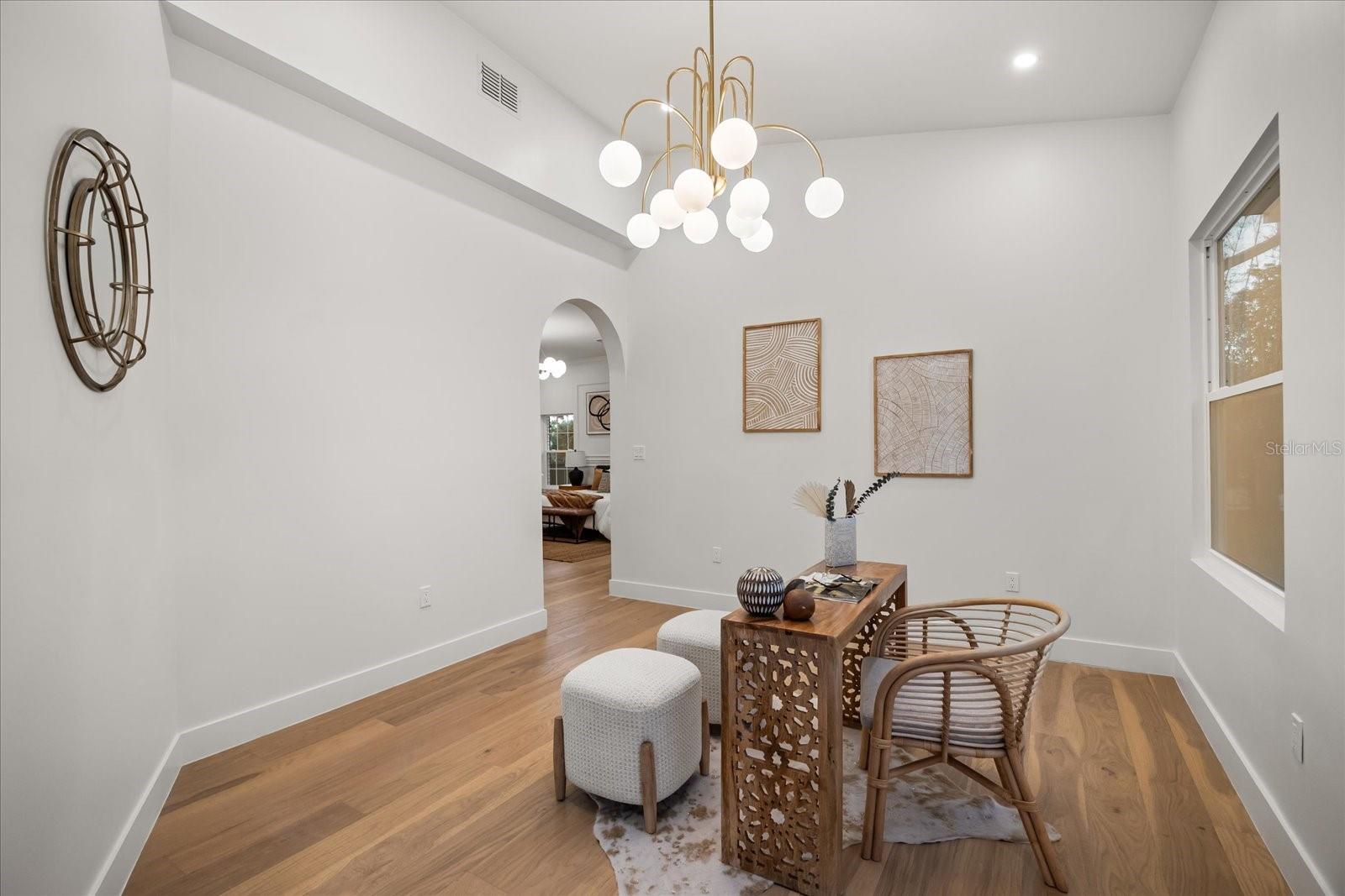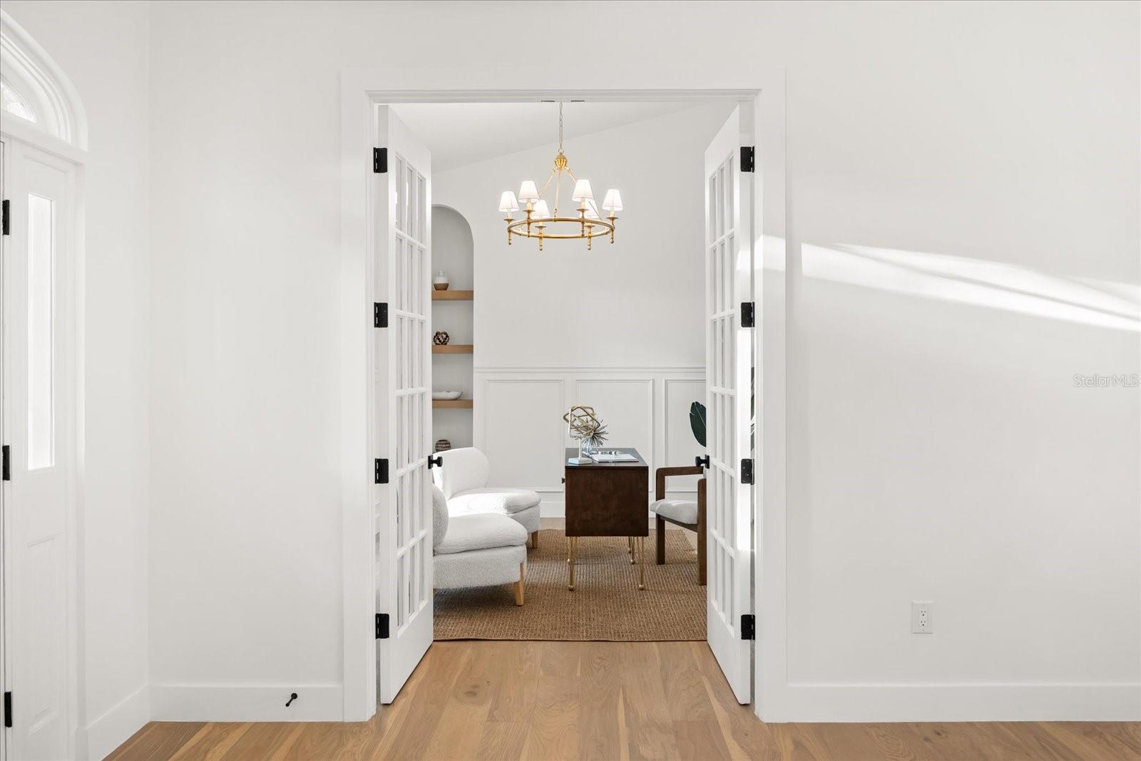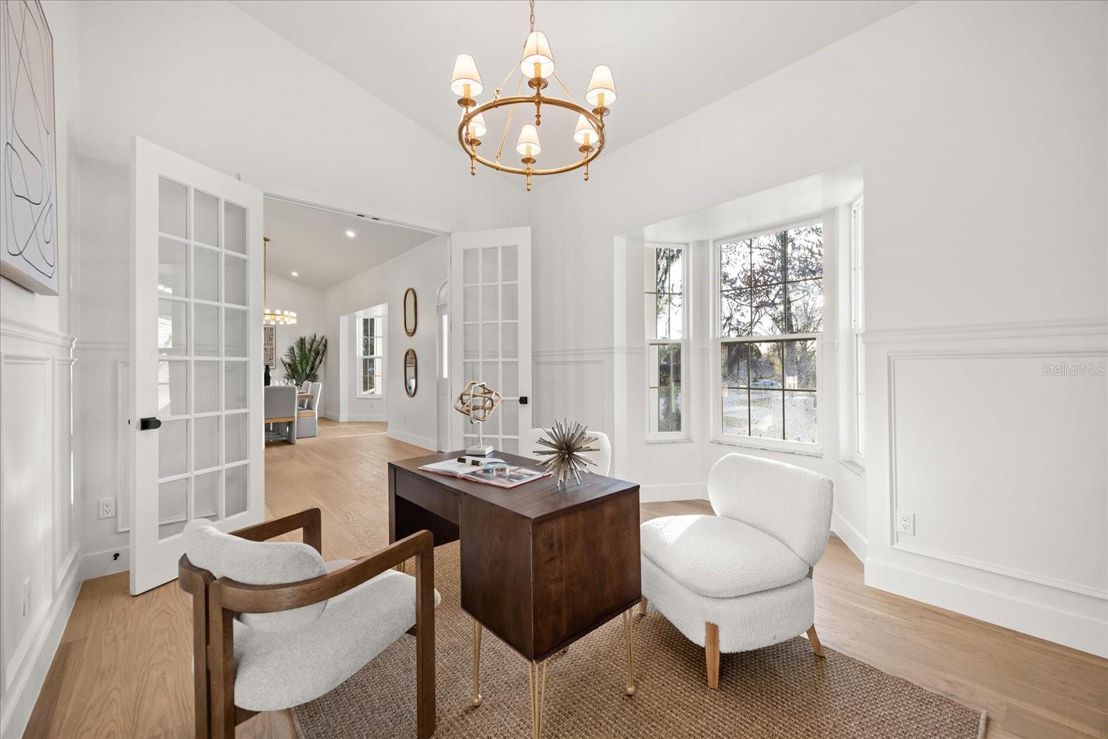 Villa Casablanca | Luxury Windermere Estate on 1-Acre: Some homes are built. Villa Casablanca was transformed. Set on a rare private acre within one of Windermere’s most privately held enclaves — an address defined by distinguished residents and legacy properties — this white-painted brick estate makes an immediate architectural statement. A circular motor court, tiered fountain, and mature canopy trees establish presence before you ever step inside. What unfolds within is architectural theater. Vaulted ceilings rise to a dramatic 14-foot peak as skylights and expansive double-pane windows flood the interiors with natural light. A sculptural brushed brass chandelier crowns the volume, while a full-height stone fireplace ascends as the focal point. French glass doors frame panoramic views of the private rear oasis — pool, pergola, and mature canopy beyond — creating a seamless connection between interior grandeur and outdoor serenity. Bay windows overlook the fountain and motor court, creating a balanced dialogue between arrival and retreat. The formal dining room emerges as its own architectural vignette — a brass chandelier echoes the geometry of the great room. The chef’s kitchen commands attention. A grand Taj Mahal quartzite island defines the center. White oak cabinetry spans floor to ceiling. The Thor range and sculpted hood rise against a full-height quartzite backdrop, pot filler aligned with precision, Viking refrigeration integrated opposite. Glass pendants hover overhead. Every finish carries presence. The scullery unfolds as a hidden design moment — unexpected, elevated, and unforgettable. Deep olive custom cabinetry, textured tile, LED-lit shelving, beverage refrigeration, and layered storage make it as functional as it is striking. A split plan introduces the primary suite — vaulted, private, composed. A sculptural chandelier anchors the ceiling while tailored wall moldings define the room. Dual concealed walk-in closets preserve symmetry. The primary bath is a statement of design: matte stone soaking tub beneath clerestory light, full-height stone extending into a curbless marble shower, dual tailored vanities with brushed brass accents, and a custom patterned marble floor grounding the space in immersive opulence. An adjoining vaulted extension captures pool views and opens to the lanai. The powder room shifts tone — charcoal paneled walls, sculptural marble sink, polished brass fittings, arched mirror, and bold tile creating a rich, moody presence. A formal office behind glass French doors offers focused productivity and polished presentation. An arched corridor leads to the secondary wing where three additional bedrooms offer privacy and versatility. One suite provides direct exterior access, functioning as a cabana retreat with its own en suite bath — ideal for guests or seamless indoor-outdoor living. Outdoors, the property transforms into a private compound. A covered veranda spans the rear with classical columns and herringbone flooring. The fully equipped summer kitchen, custom wood pergola lounge, expansive lawn, fresh sod, rear gate access, and lush landscaping offer scale impossible to replicate in today’s market. Villa Casablanca is not comparable to new construction. It is rarer. Extensively renewed inside and out. Schedule your showing today.