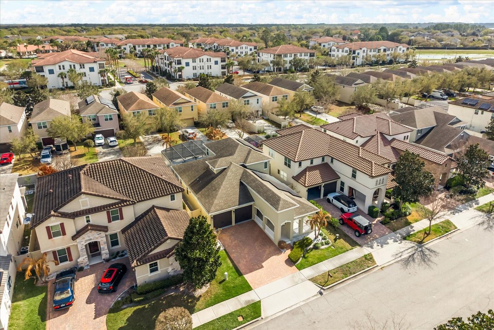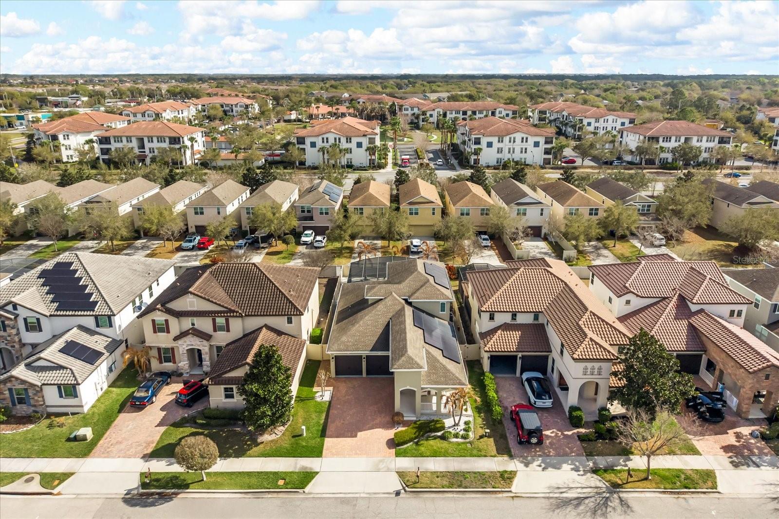 Under contract-accepting backup offers. Located in the desirable Windermere Trails community, this beautifully updated and exceptionally well-maintained home offers outstanding curb appeal and a welcoming feel from the moment you arrive. A standout feature of the property is the fantastic backyard retreat highlighted by a heated saltwater pool built in 2022 with a travertine paver deck, screened enclosure with privacy screens, and a vinyl privacy fence for added seclusion. The home also features a fully paid off whole house solar system, providing impressive energy efficiency and long-term savings. Inside, the open floor plan seamlessly connects the living room, kitchen, and dining area, creating a bright and inviting space ideal for both everyday living and entertaining. Elegant porcelain tile flooring spans the entire first floor, while bamboo flooring adds warmth and character upstairs. The primary suite is conveniently located on the first floor and features dual walk-in closets and a well-appointed bath. Upstairs you will find two additional bedrooms along with a versatile loft or bonus room that can serve as a second living area, office, or playroom. The kitchen flows easily to the interior laundry room, and a half bath is located downstairs near the mudroom and main living area for guests. Covered front and rear porches provide additional outdoor living space to relax or entertain. Ideally situated just minutes from top rated schools, shopping, restaurants, Publix, and the attractions of Walt Disney World, this Windermere Trails home offers both convenience and an exceptional lifestyle.