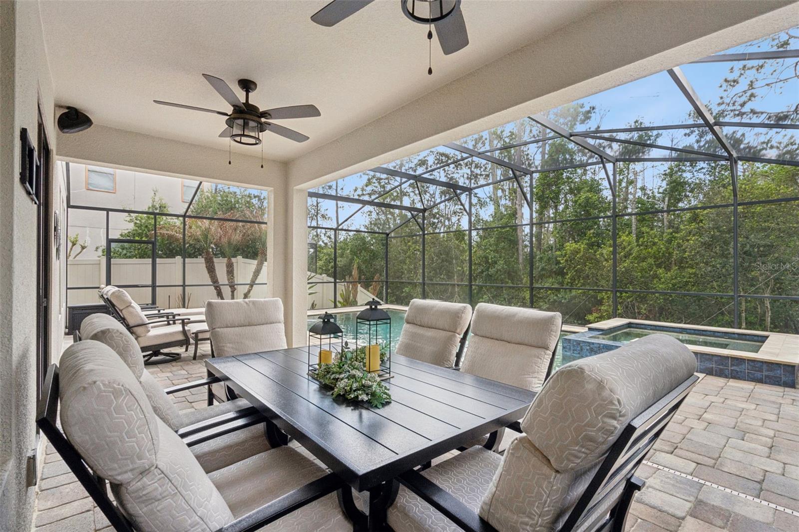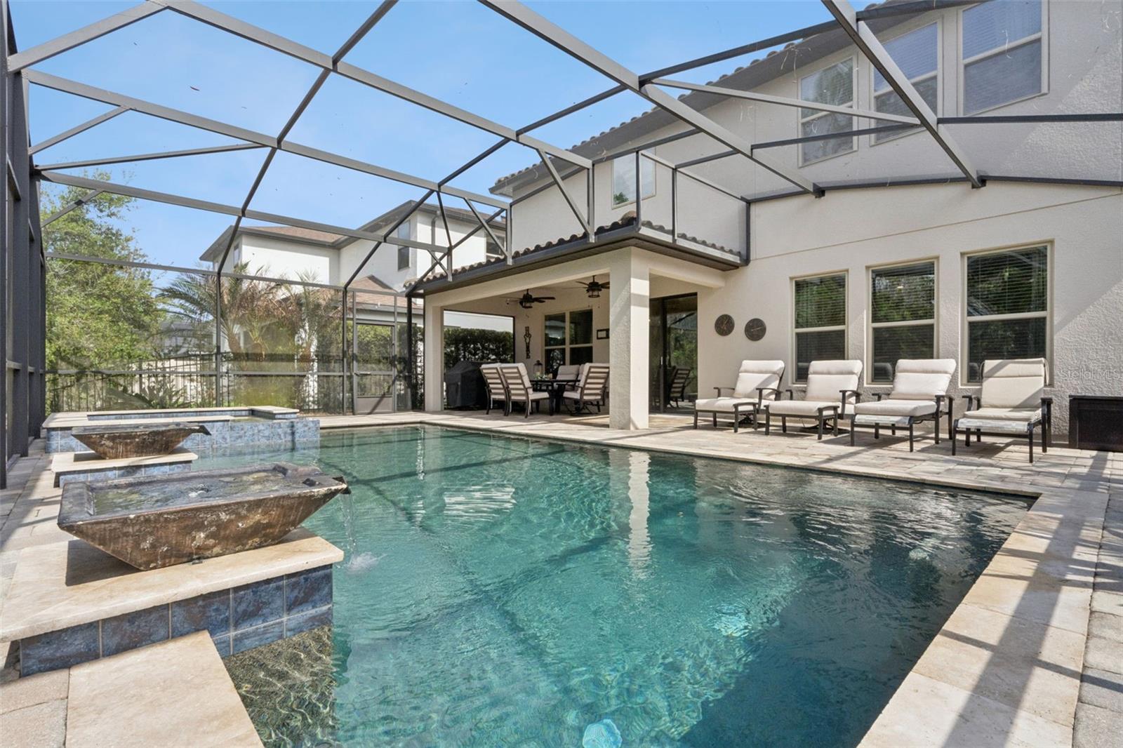 Under contract-accepting backup offers. Just seven minutes from Walt Disney World, this enchanting Tuscan-inspired home feels like stepping into your own fairytale. Lovingly maintained as the seller’s private vacation haven, it offers the perfect blend of magic and comfort. Ready for its next chapter to begin without lifting a finger. It is ideal as a private getaway or a full-time residence in one of Windermere’s beautiful communities. Thoughtfully designed with elevated finishes, the home features 9-foot ceilings on both levels, grand 8-foot doors, wood railings, upgraded cabinetry, quartz countertops, and designer tile, all beautifully tied together by the Tuscan elevation and its signature tile roof, creating a timeless, storybook exterior. From the charming front porch to the grand foyer with tray ceiling, every detail welcomes you in. The first floor flows effortlessly with warm wood-look porcelain tile, crown molding, and natural light dancing through the spacious family room. Sliding glass doors reveal your own private oasis where a sparkling pool and spa, lush landscaping, and serene conservation views create a peaceful escape that feels worlds away from the everyday. Also on the first floor, you’ll find a bedroom and full bath, perfect for guests, multigenerational living, or a private retreat. A versatile flex space with a coffered ceiling invites you to dine or dream, whether it becomes a home office, library, formal dining room, music room, or cozy reading nook—let your imagination go wild! The kitchen is the heart of the home, featuring upgraded cabinetry, quartz countertops, a gas cooktop, built-in microwave, and a spacious island with pendant lighting. An additional bank of cabinets offers the perfect spot for entertaining, prepping, or creating your own coffee or wine bar. Upstairs, the loft becomes your own “happily ever after” gathering space, perfect for movie nights, game days, or a cozy retreat to unwind after a day at the parks. The primary suite feels like a private sanctuary, complete with a tray ceiling and a spa-like bath featuring dual vanities, a freestanding soaking tub, and a beautifully tiled walk-in shower. Secondary bedrooms are bright, airy, and generously sized, with thoughtfully designed bathrooms and convenient upstairs laundry. Step outside and let the magic continue. Your fully screened pool and spa with soothing water features and an extended lanai provides both sun and shade, perfect for everything from quiet mornings to lively evenings under the stars. With no rear neighbors and tranquil conservation views, this backyard retreat is your own private escape. A place where every day begins and ends with a little magic, your storybook home awaits. Welcome Home!
