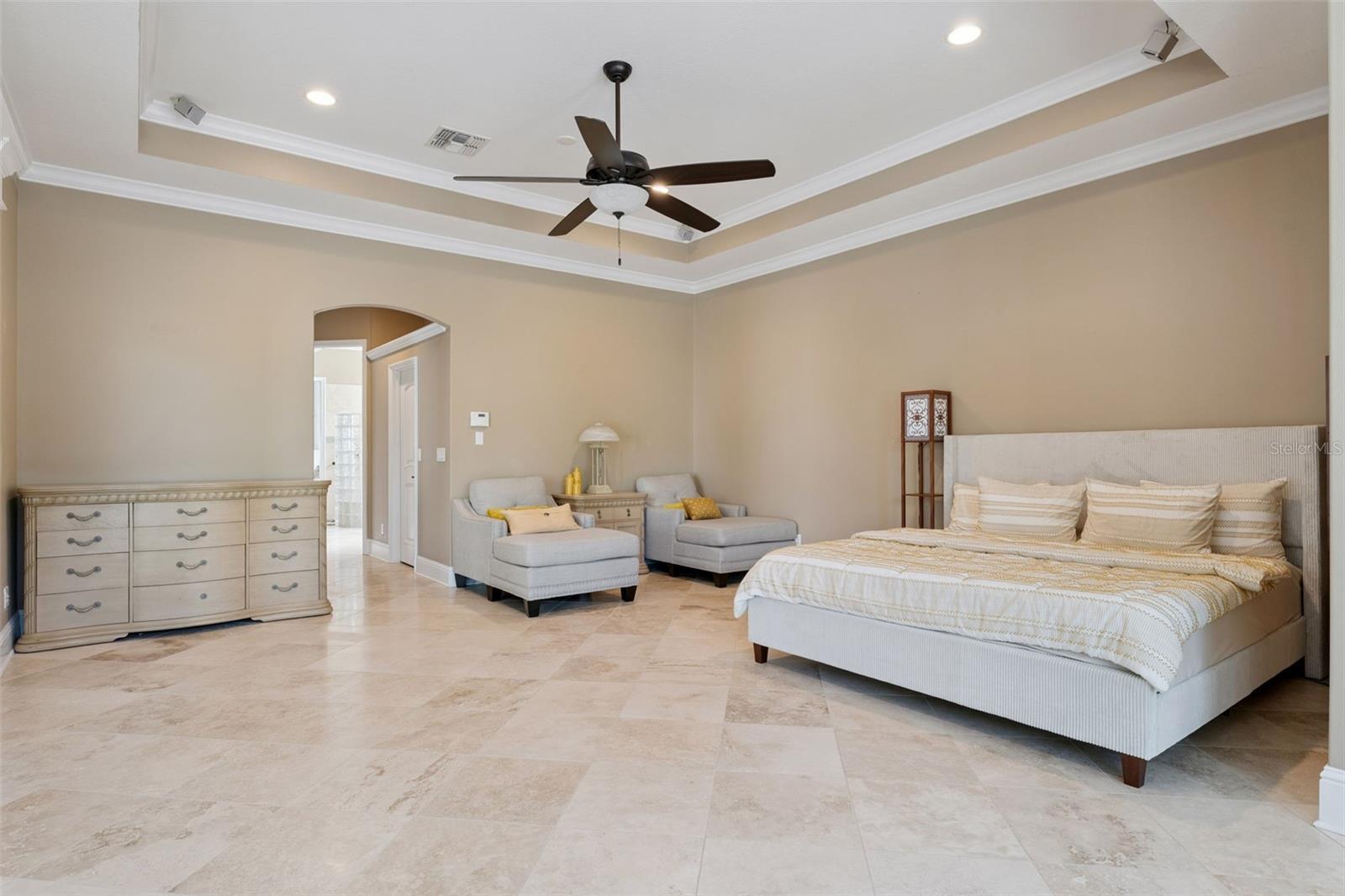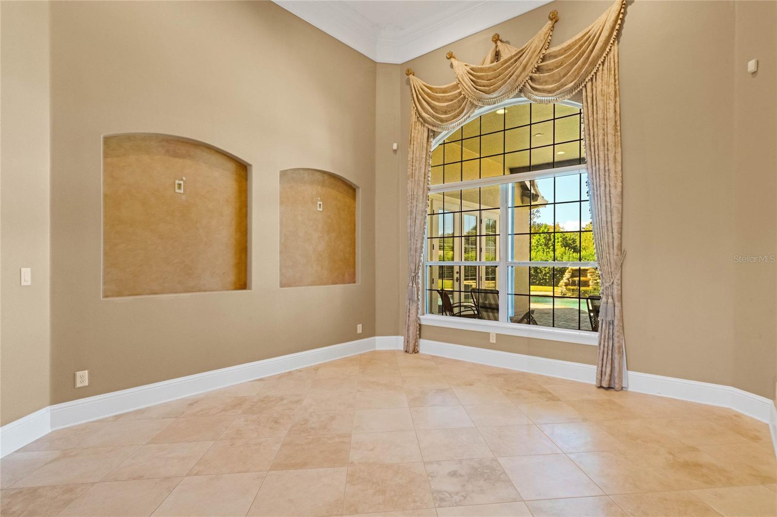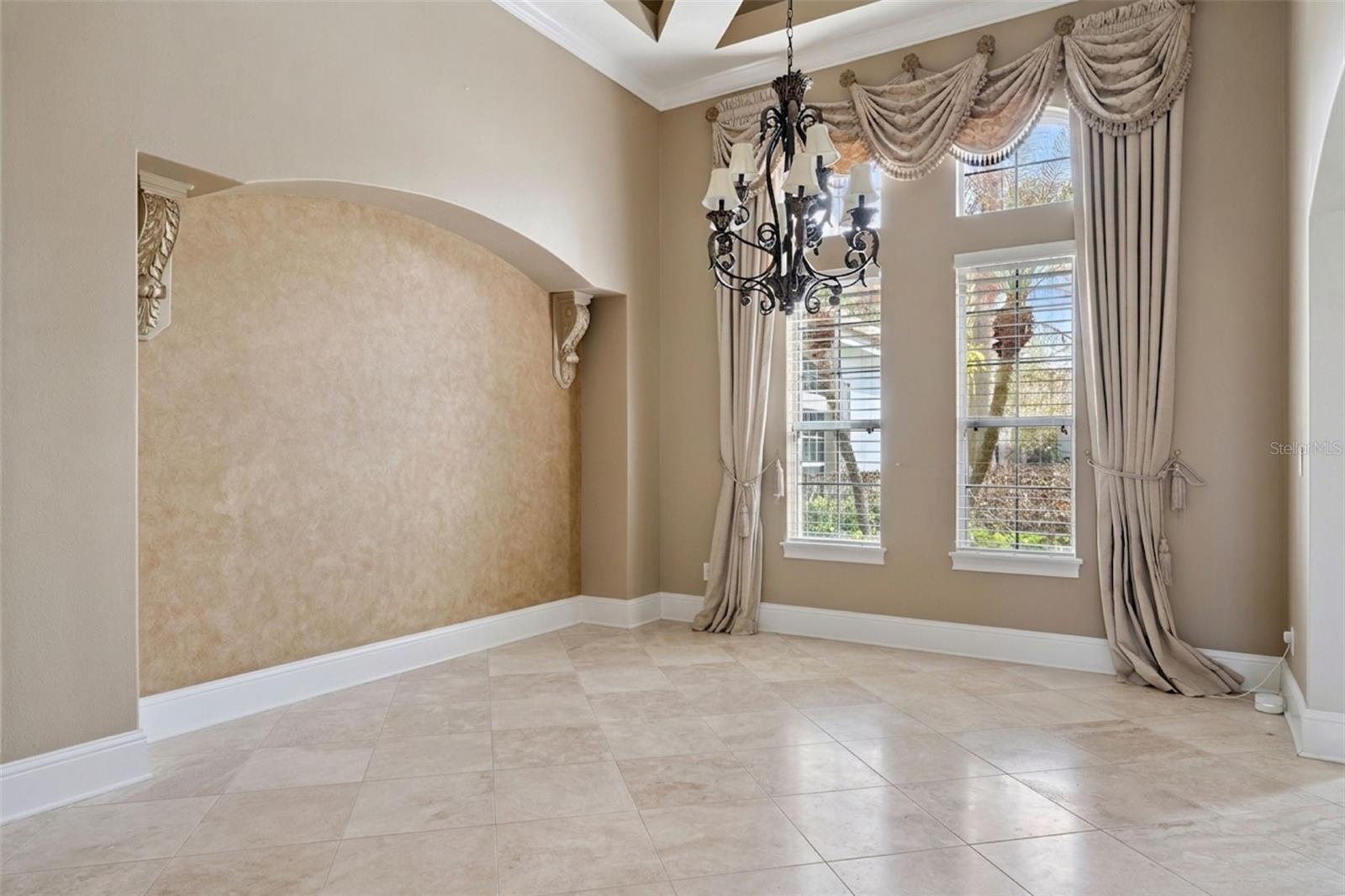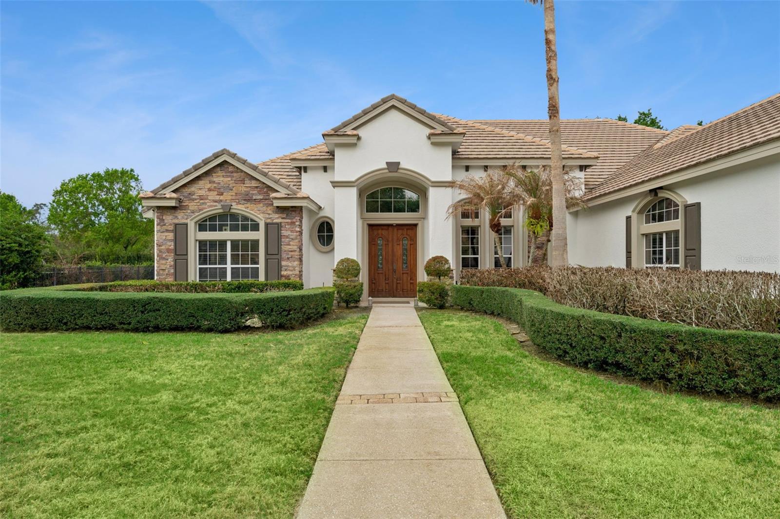 Gorgeous East facing custom estate on a .63-acre lot in the highly sought-after 24-hour guard-gated community of Tildens Grove in Windermere. This elegant home offers 6 bedrooms, 4.5 baths, and an open layout perfect for entertaining, all located near top-rated schools, the Butler Chain of Lakes, Winter Garden Village, major highways, and Walt Disney World. Kitchen has two-tone cabinetry, granite countertops, an oversized island, gas cooktop, double ovens, walk-in pantry, and brick wine cellar with cast iron doors. The kitchen opens to a spacious family room with custom built-ins, gas fireplace, and French doors leading to the lanai. Formal living and dining rooms showcase tray and coffered ceilings, with travertine flooring and crown molding throughout the main areas. Fenced yard. The primary suite features a sitting area, bay windows, French doors to the pool, dual walk-in closets, and a bath with soaking tub, dual vanities, and walk-in shower. A connected flex room can serve as an office, nursery, or additional bedroom. The split floor plan offers privacy, while upstairs includes a bonus room, bedroom, full bath. Additional highlights include a dedicated office, oversized 3-car garage, and numerous updates such as new A/C, water softener, gas stove, washer/dryer, electrical upgrades, and fresh exterior paint. Tildens Grove is an exclusive community of 140 homes offering tennis courts, playground, basketball court, and soccer field, with a neighborhood park just steps away.